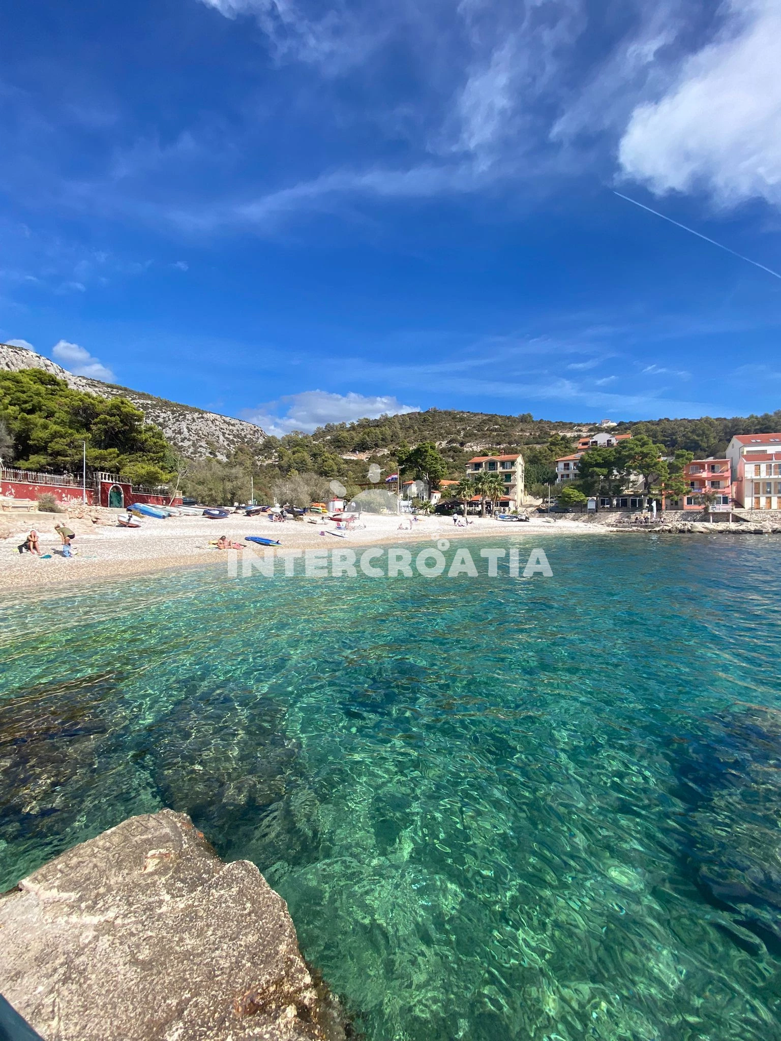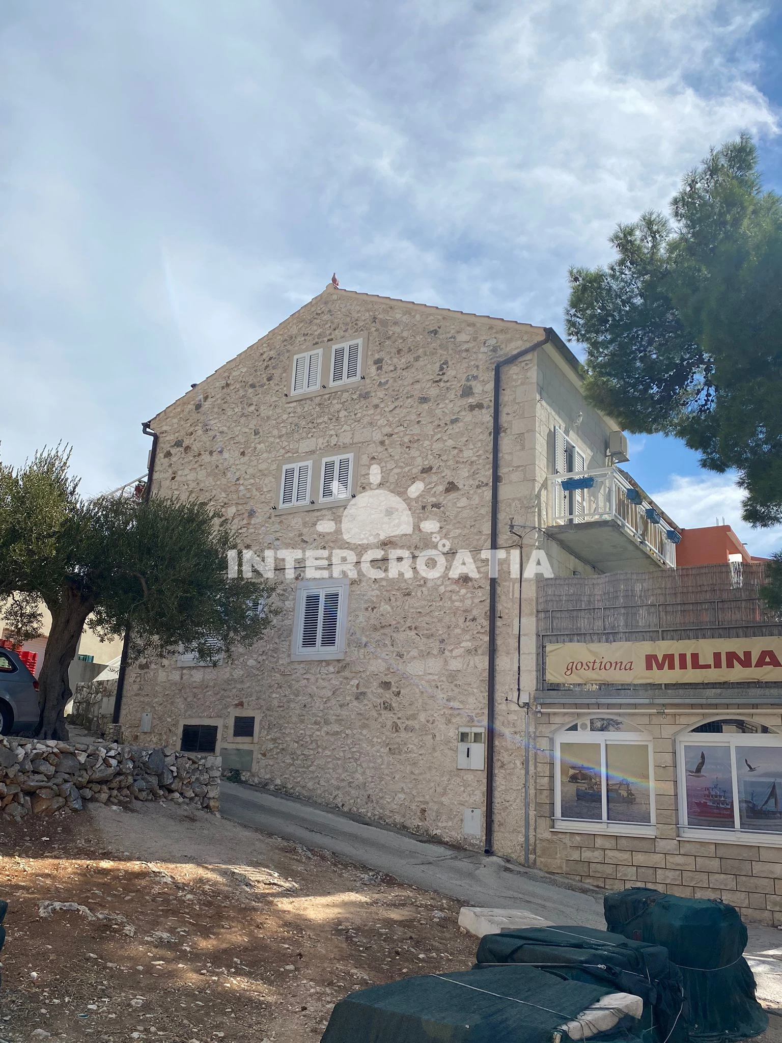 Vzdálenosti: Moře a oblázková pláž 20 m, restaurace 10 m, bar 20 m, obchod s potravinami a centrum 50 m, veřejná doprava 500 m, potápění, půjčovna motorových člunů, muzeum, diskotéka, půjčovna cyklistických kol, tenisové kurty, mini golf, banka, pošta, lékárna, ambulance, směnárna a čerpací stanice 5 km, trajekt (Stari Grad) 12 km.