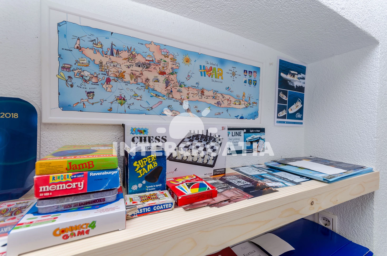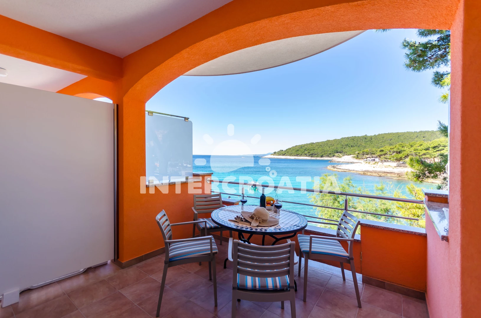 Vzdálenosti: Moře 15 m, pláž 50 m (skalnatá, oblázková, větší kamení a betonové desky), restaurace 50 m, bar 50 m, centrum 50 m, supermarket 100 m, směnárna 5 km, čerpací stanice 5 km, banka 5 km, pošta 5 km, ambulance 5 km, marina 5 km, lékárna 5 km, muzeum 5 km, diskotéka 5 km, půjčovna kol 5 km, potápění 5 km, tenisové kurty 6 km, trajekt (Stari Grad) 15 km,