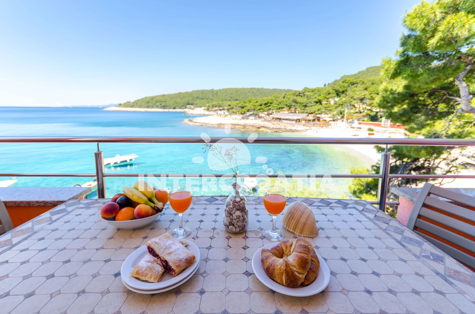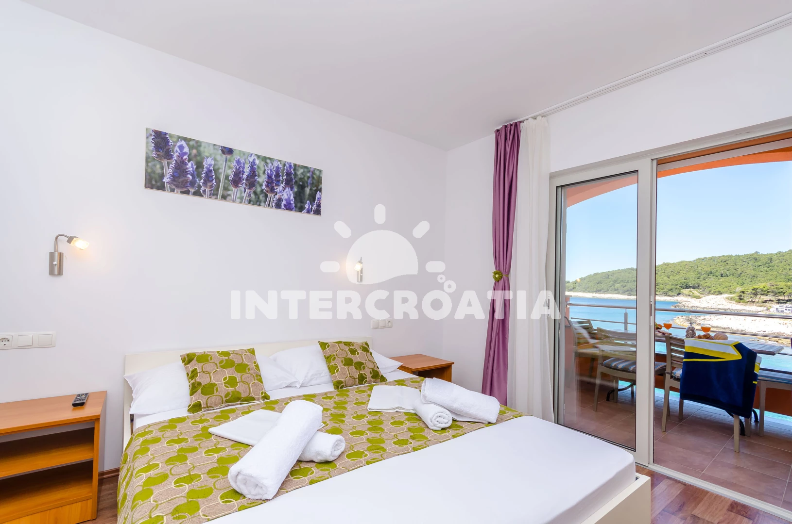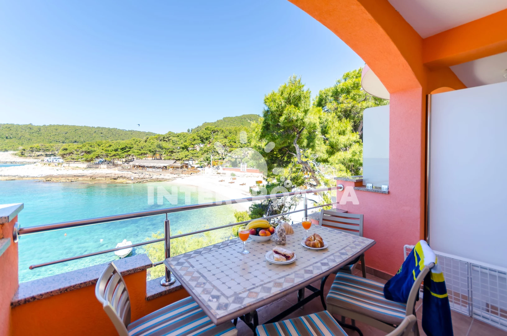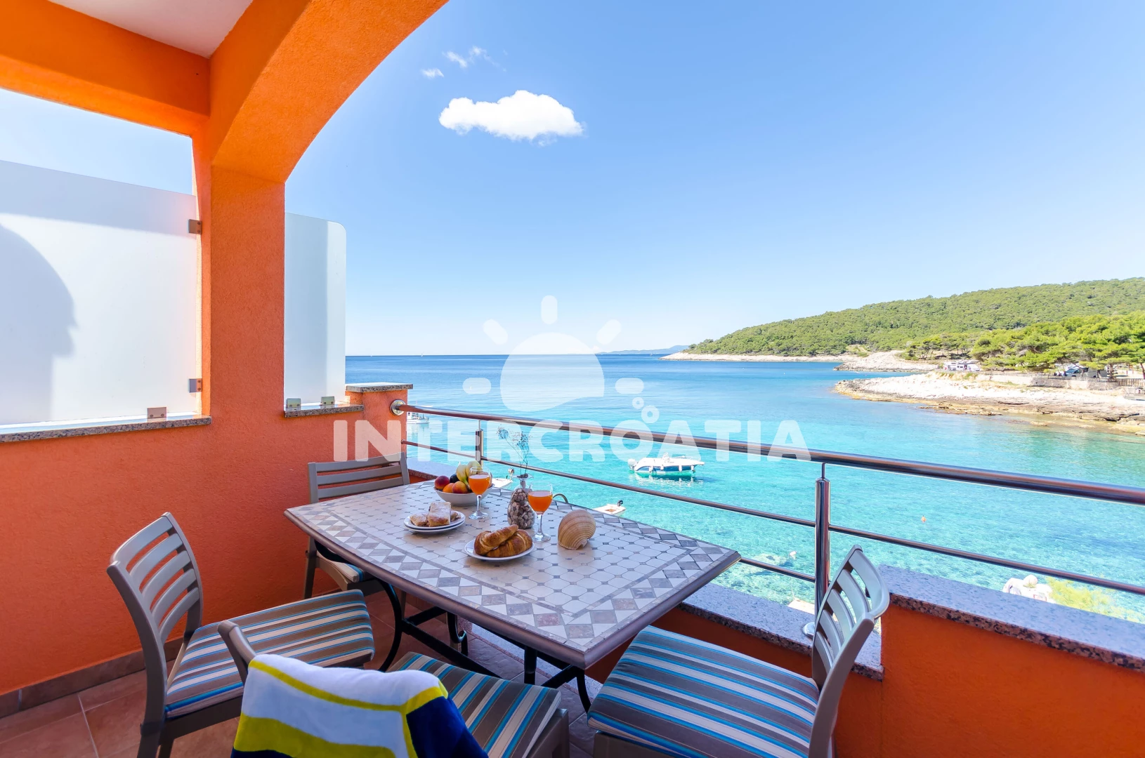 Vzdálenosti: Moře 15 m, pláž 50 m (skalnatá, oblázková, větší kamení a betonové desky), restaurace 50 m, bar 50 m, centrum 50 m, supermarket 100 m, směnárna 5 km, čerpací stanice 5 km, banka 5 km, pošta 5 km, ambulance 5 km, marina 5 km, lékárna 5 km, muzeum 5 km, diskotéka 5 km, půjčovna kol 5 km, potápění 5 km, tenisové kurty 6 km, trajekt (Stari Grad) 15 km,