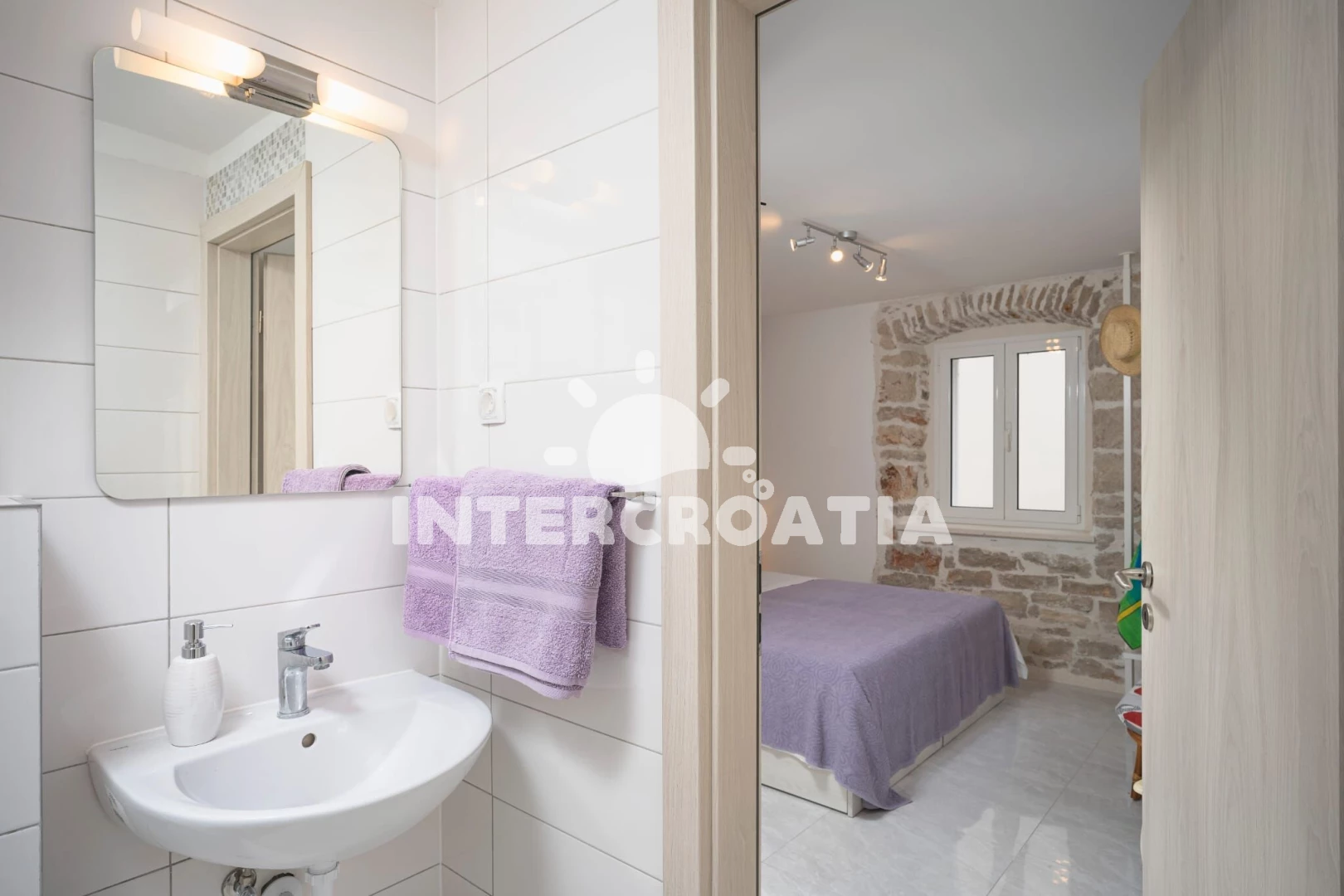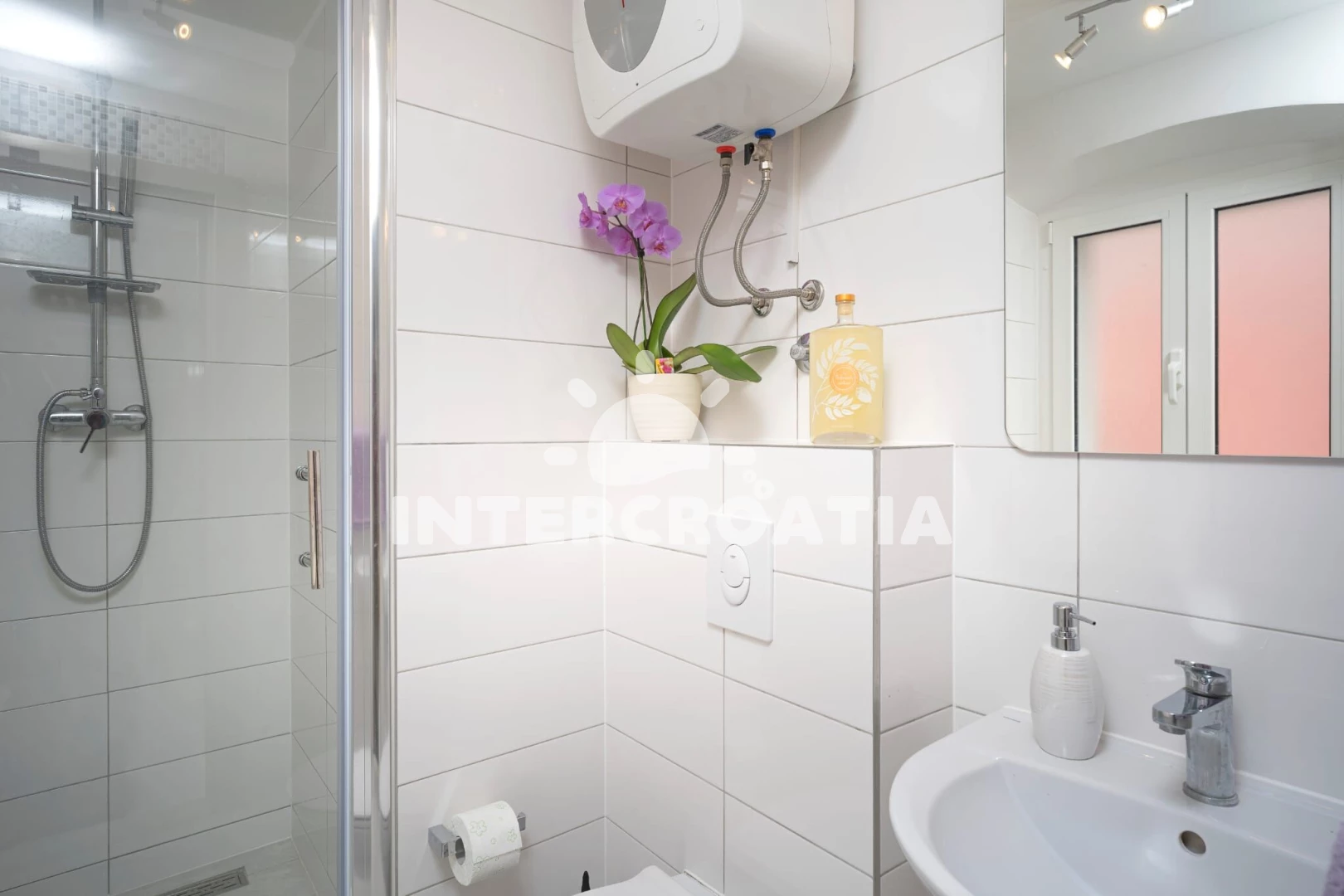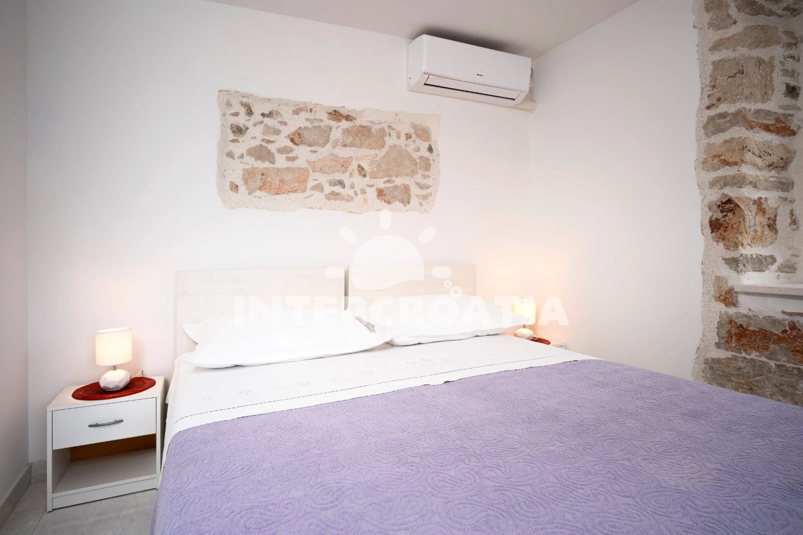 Apartmán se nachází 800 m od moře a pláže. Pláž je skalnatá, oblázková, větší kamení a betonové desky. Parkování je 150m - 300 m od domu.