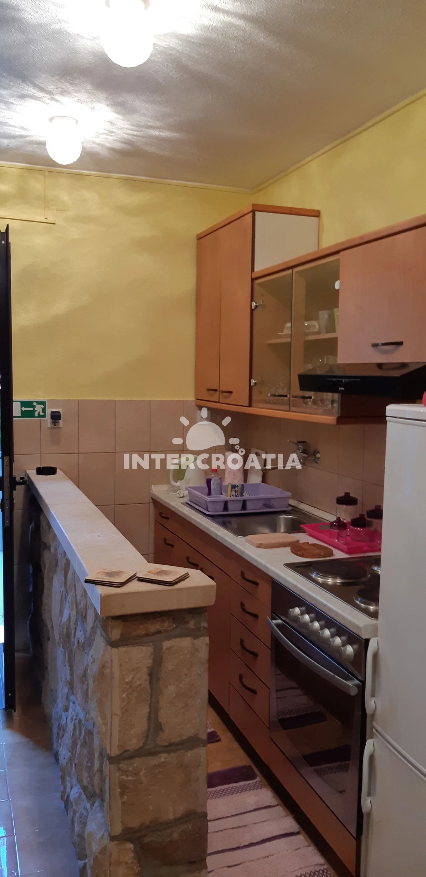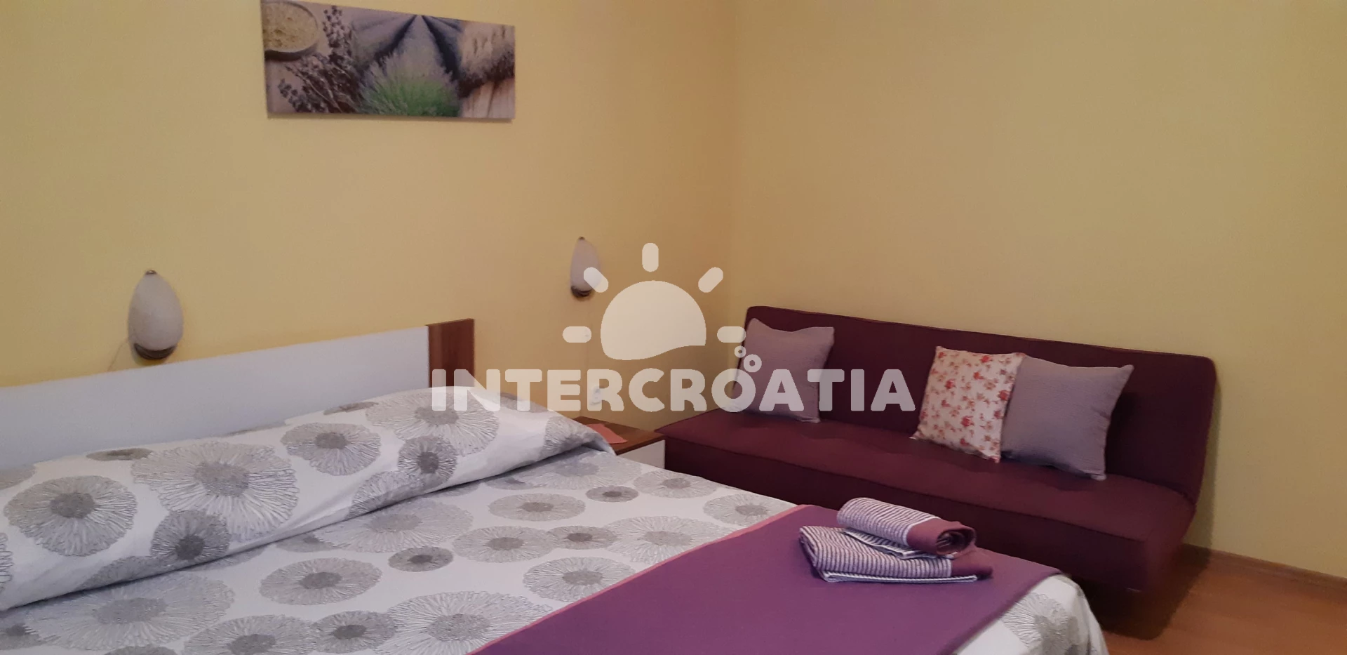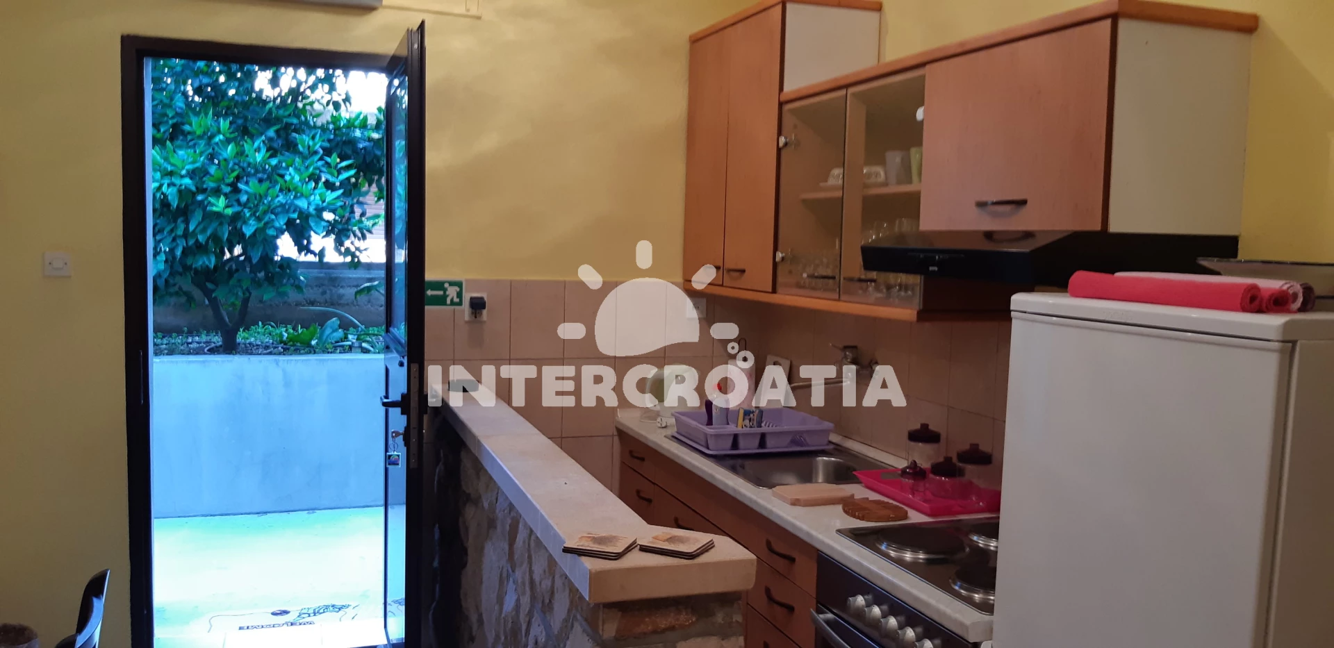 Apartmán se nachází 500 m od moře a pláže. Pláž je betonové desky, skalnatá a větší kamení. U objektu je k dispozici společná zahrada s posezením a grilem. Parkování je před domem.