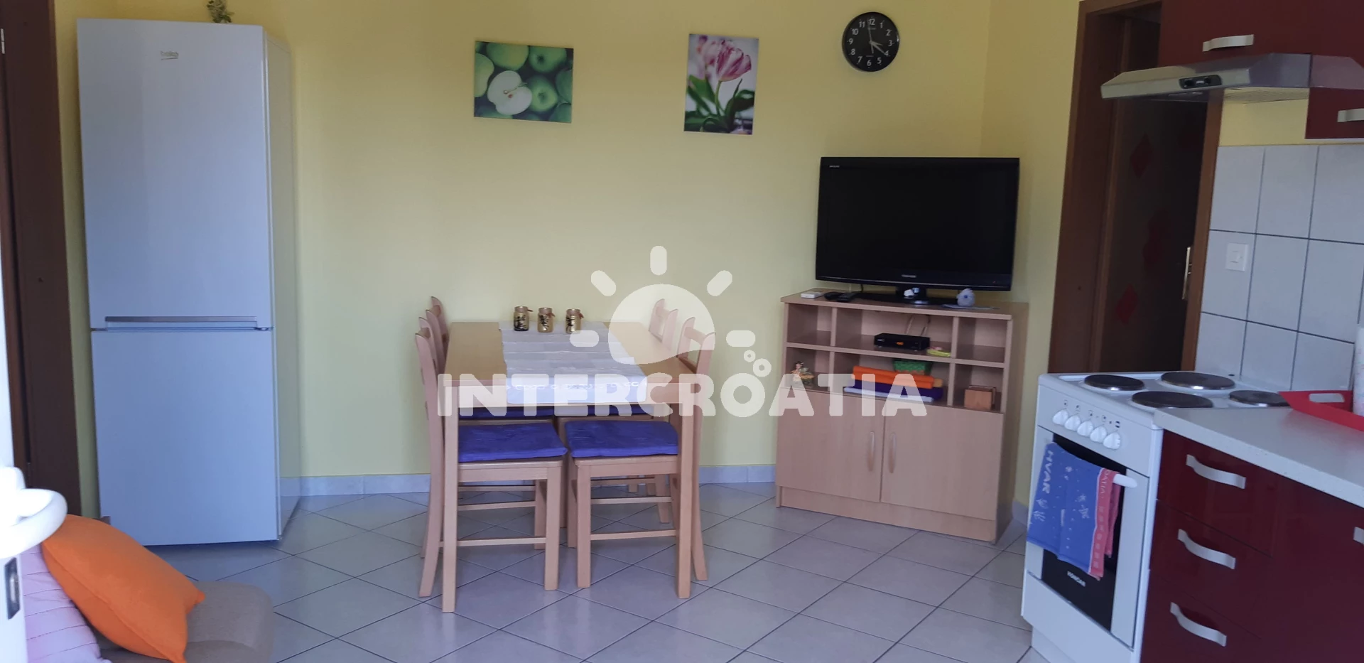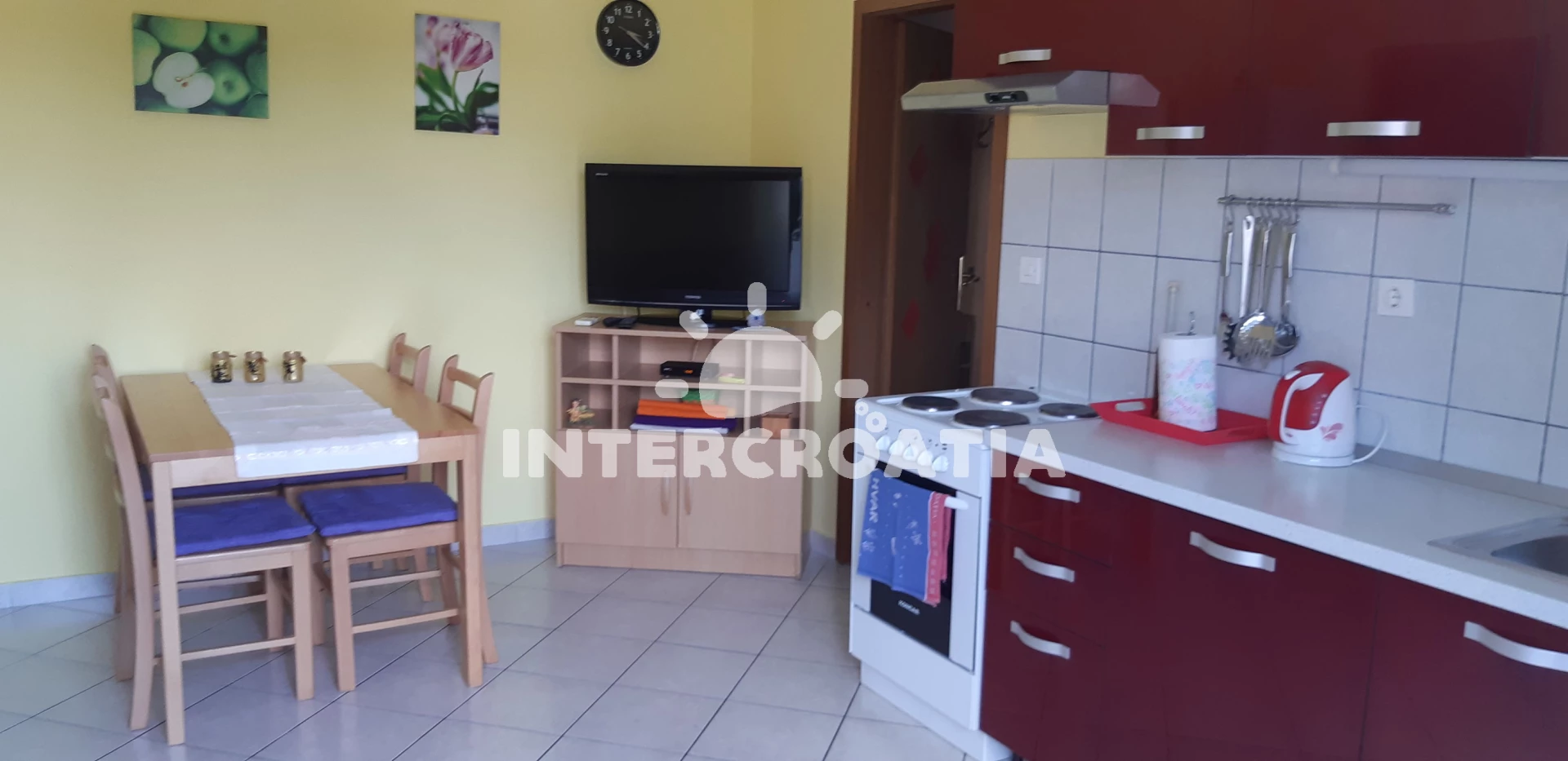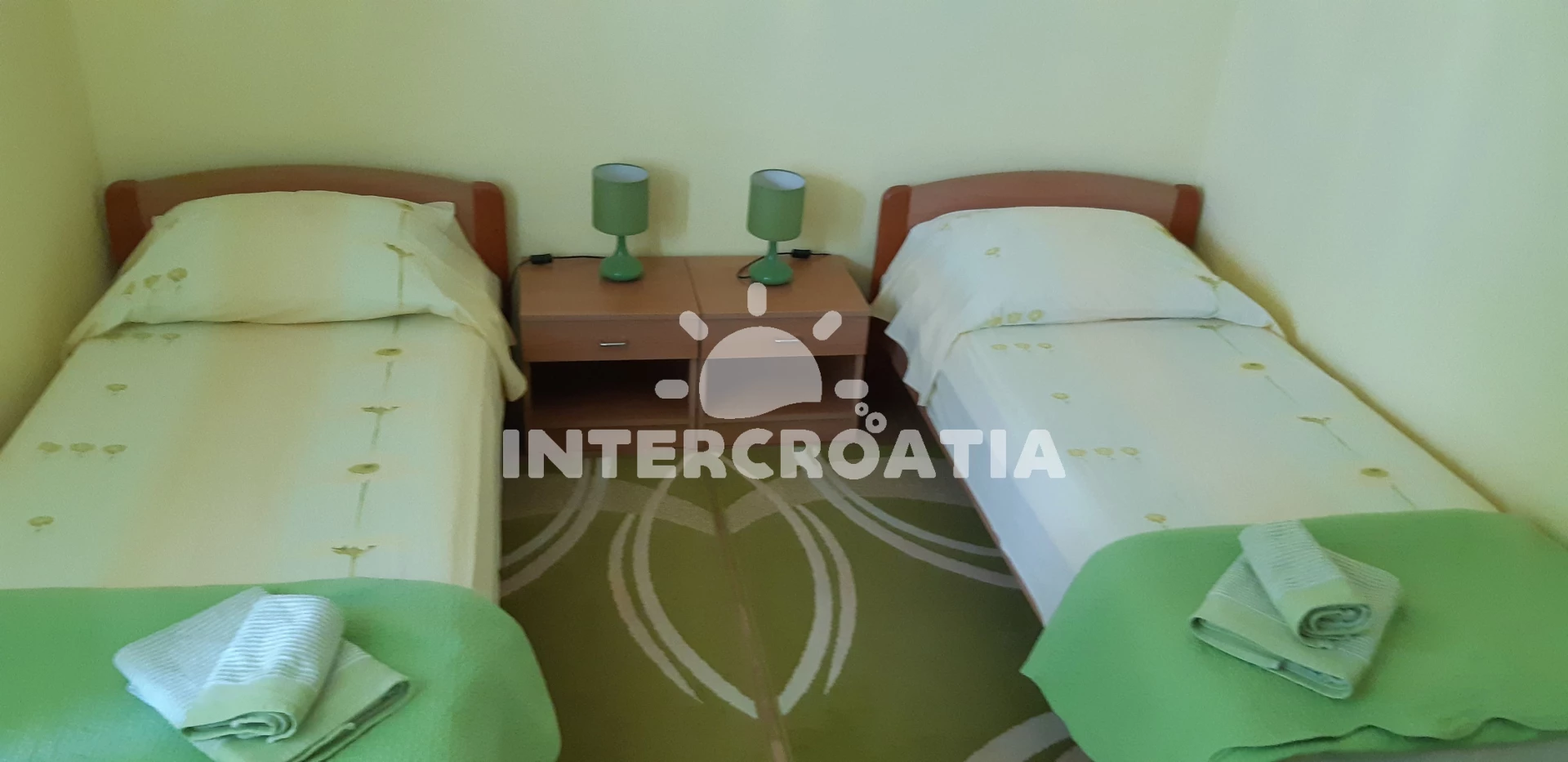 Apartmán se nachází 500 m od moře a pláže. Pláž je betonové desky, skalnatá a větší kamení. U objektu je k dispozici společná zahrada s posezením a grilem. Parkování je před domem.
