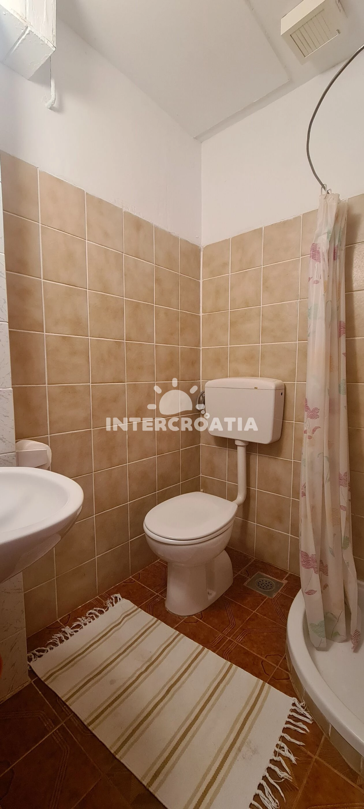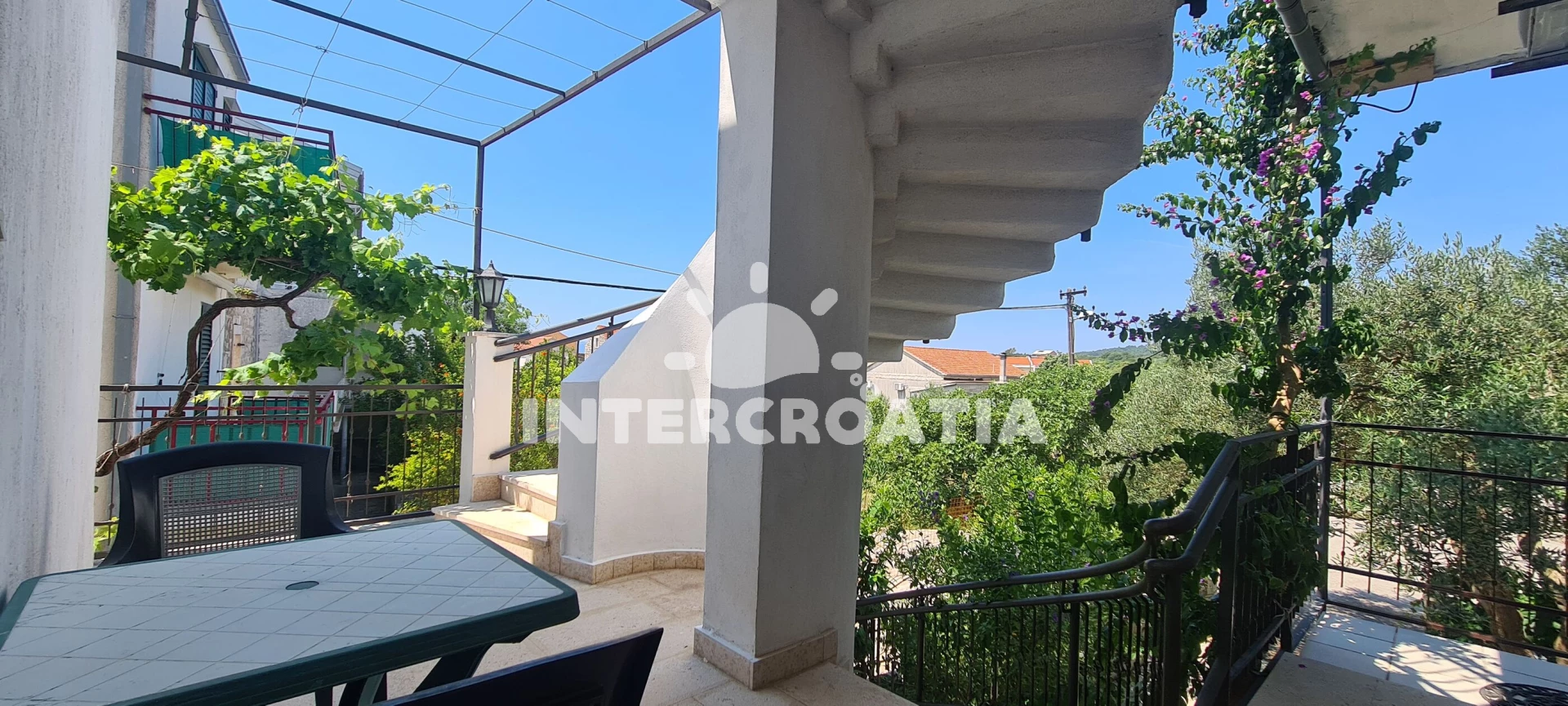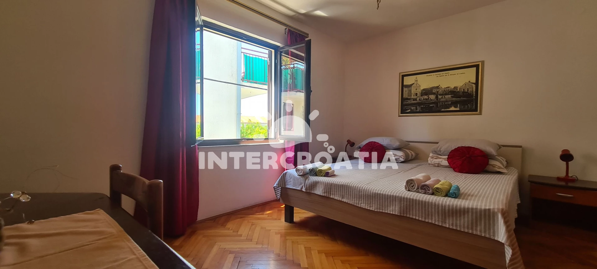 Apartmán se nachází 150 m od moře a pláže. Pláž je skalnatá, oblázková, větší kamení a betonové desky. U objektu je k dispozici společná zahrada s posezením a grilem. Parkování je před domem.