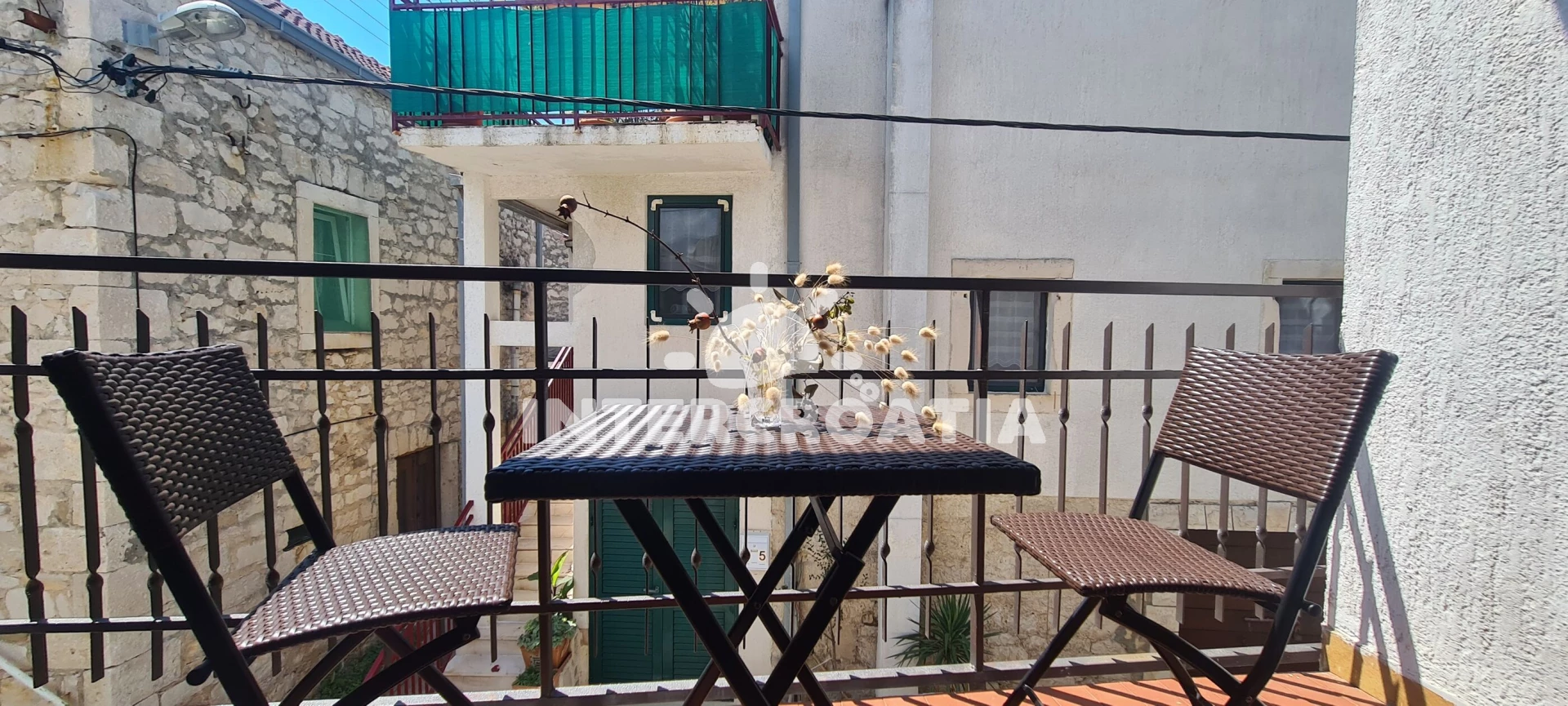 Vzdálenosti: Moře 150 m, pláž 150 m (skalnatá, oblázková, větší kamení a betonové desky), bar 150 m, restaurace 150 m, supermarket 150 m, centrum 150 m, veřejná doprava 200 m, pošta 200 m, trajekt (Sućuraj) 350 m, lékárna 50 km, banka 50 km, čerpací stanice 50 km, ambulance 50 km,