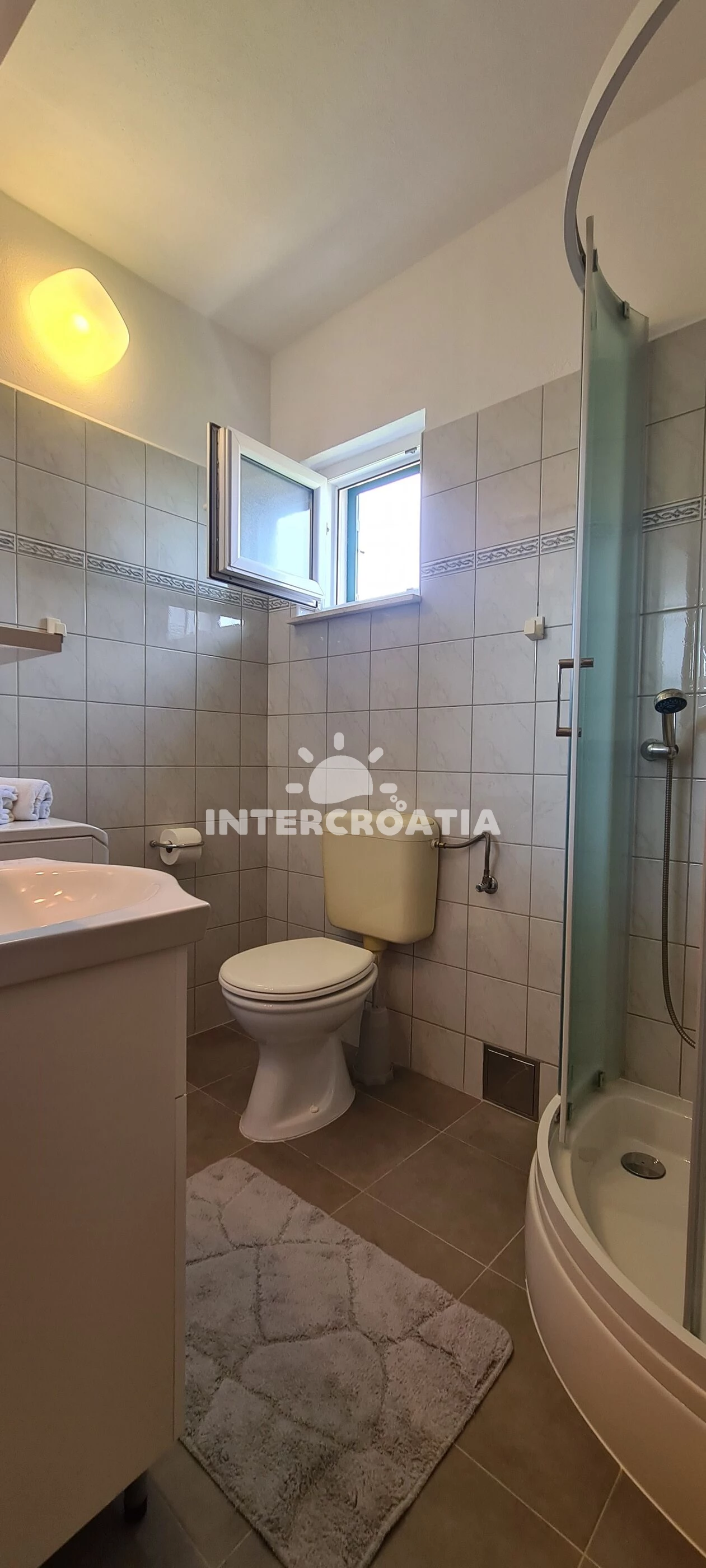 Apartmán se nachází 400 m od moře a pláže. Pláž je skalnatá, oblázková, větší kamení a betonové desky. U objektu je k dispozici společná zahrada s posezením a grilem. Parkování je 50m - 150 m od domu.
