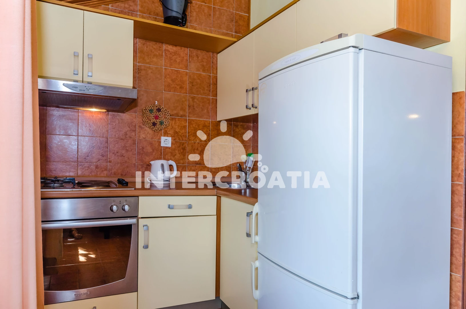 Apartmán (55 m2) s balkonem, a výhledem na moře. Nachází se v přízemí objektu. Apartmán má 2 ložnice a je vhodný pro až 4 osoby. Kuchyňská linka je vybavena varnou deskou, troubou, kávovarem,…