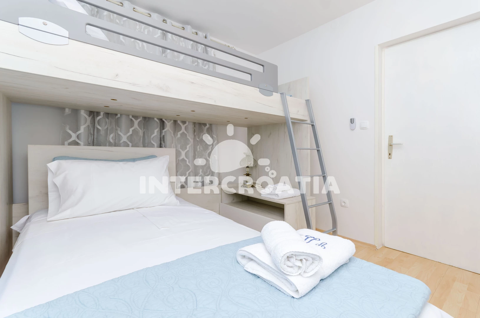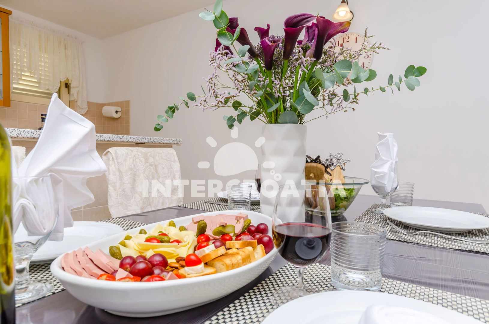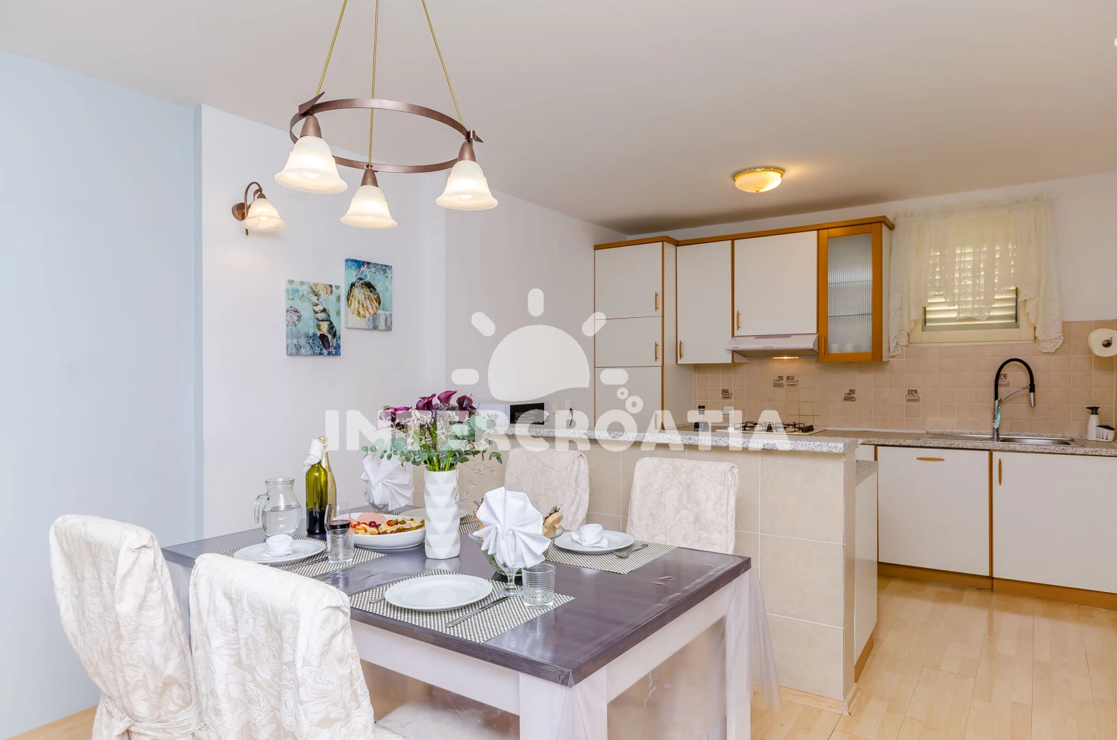 Apartmán se nachází 300 m od moře a pláže. Pláž je skalnatá, oblázková a větší kamení. U objektu je k dispozici společná zahrada s posezením a grilem. Parkování je před domem.