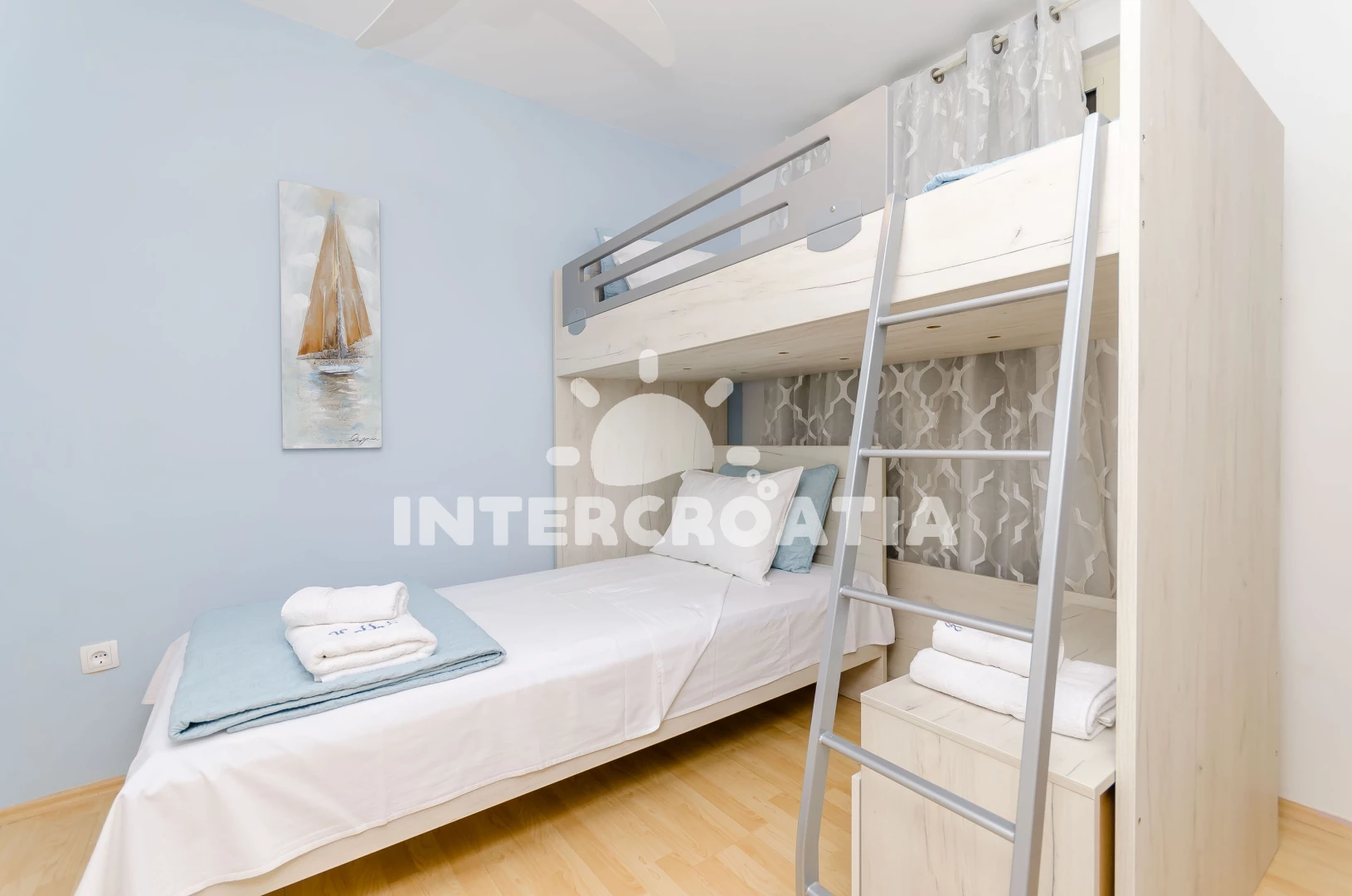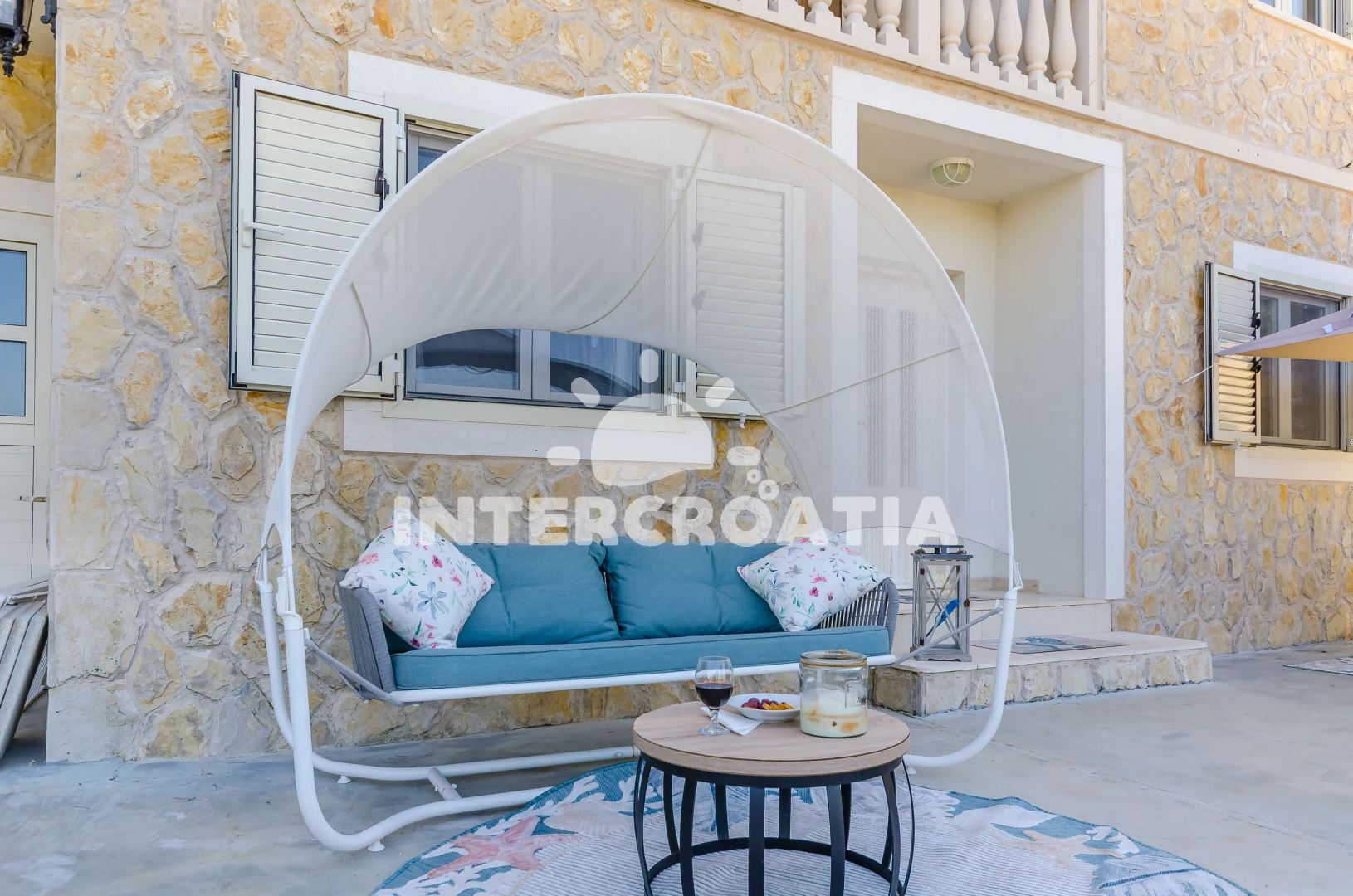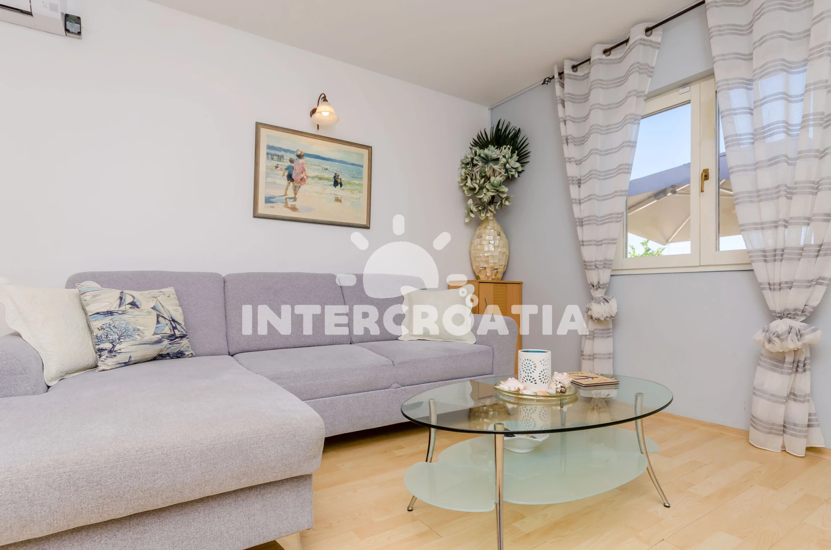 Apartmán se nachází 300 m od moře a pláže. Pláž je skalnatá, oblázková a větší kamení. U objektu je k dispozici společná zahrada s posezením a grilem. Parkování je před domem.
