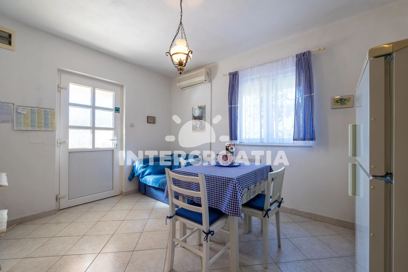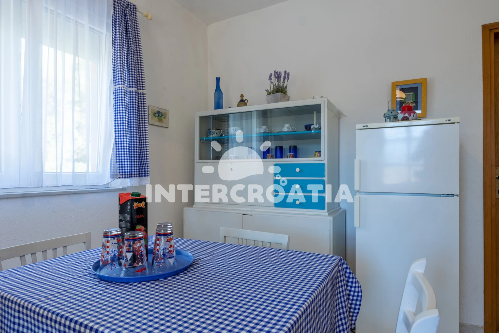 Apartmán se nachází 300 m od moře a pláže. Pláž je skalnatá, oblázková a betonové desky. U objektu je k dispozici společná zahrada s posezením a grilem. Parkování je před domem.