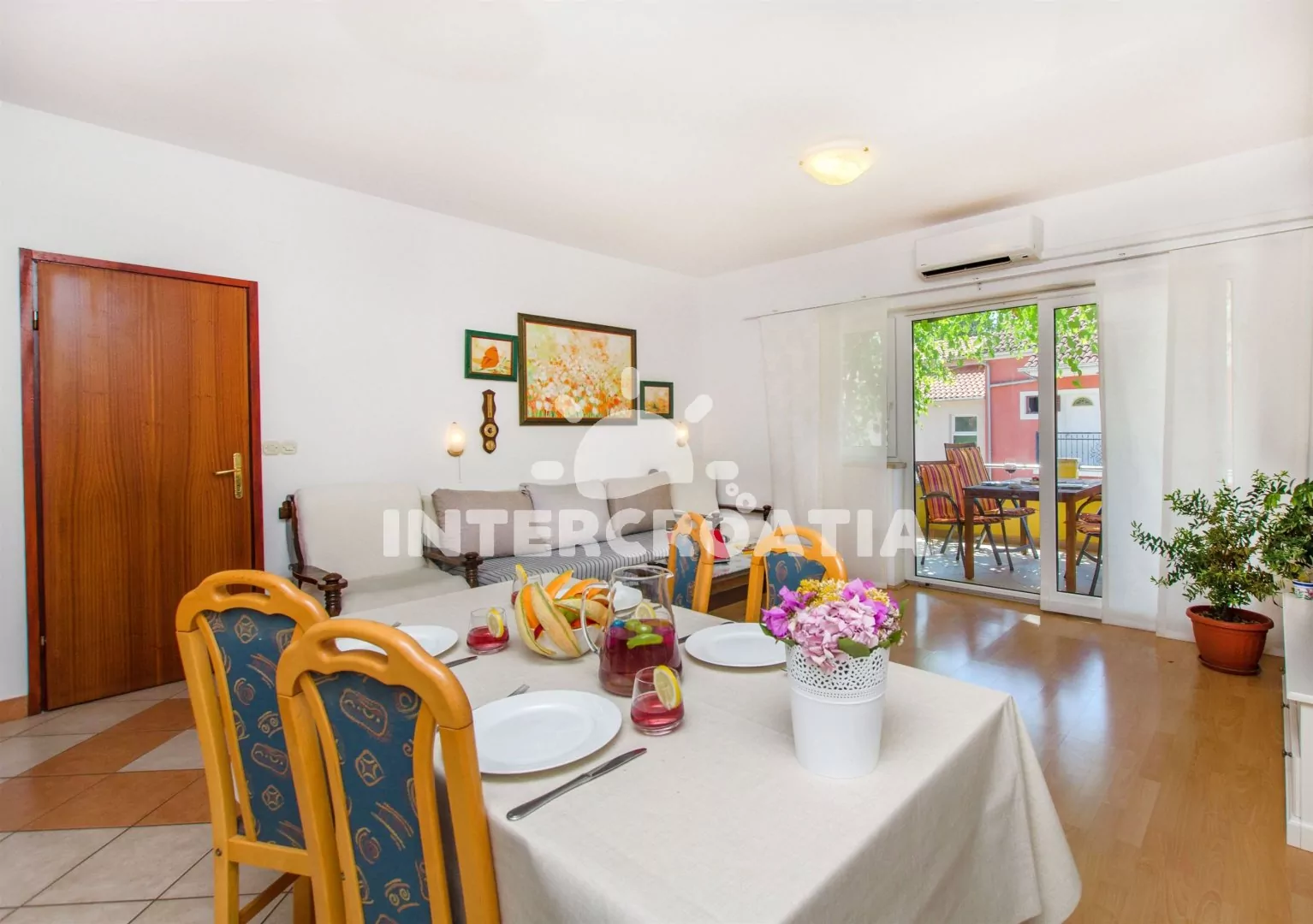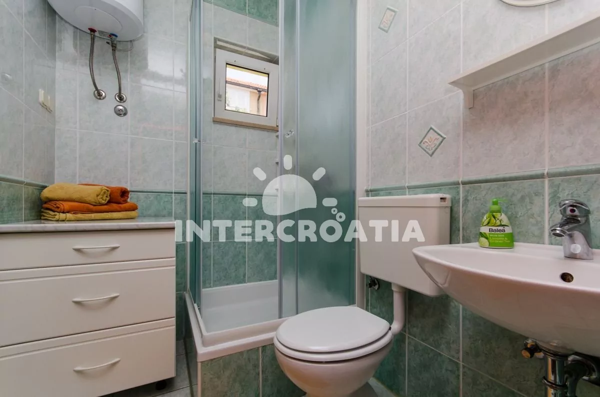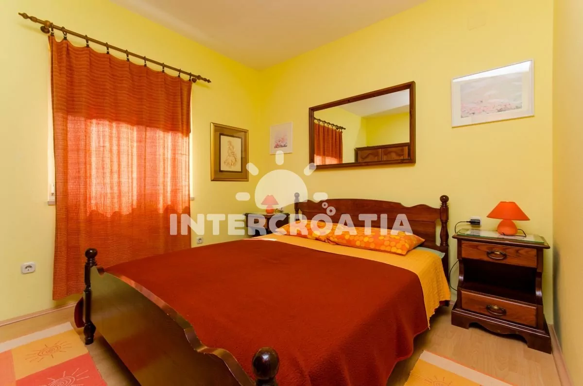 Apartmán až pro 5 osob s balkonem je umístěný v prvním patře vilky. Obývací pokoj spojený s kuchyní. Kuchyňská linka se sklokeramickou varnou deskou, digestoří, vestavěnou troubou, myčkou na nádobí, kávovarem, nádobím a lednicí s mrazákem. Obývací pokoj s jídelním stolem pro 4 osoby, rozložitelnou pohovkou (extra lůžko pro 3 osoby), televizí se satelitním programem, klimatizací a vstupem na balkon. Ložnice s jedním dvoulůžkem. Koupelna se sprchovým koutem, umyvadlem a wc. Hostům je k dispozici parkování u objektu zdarma.