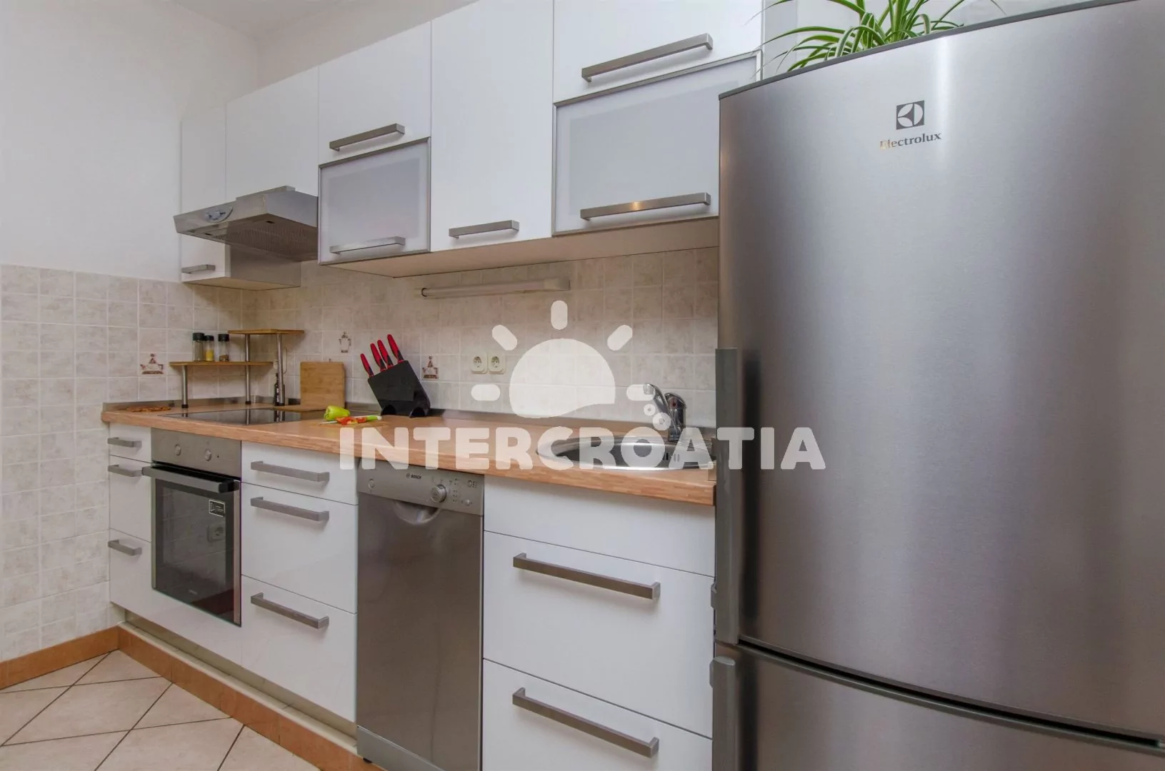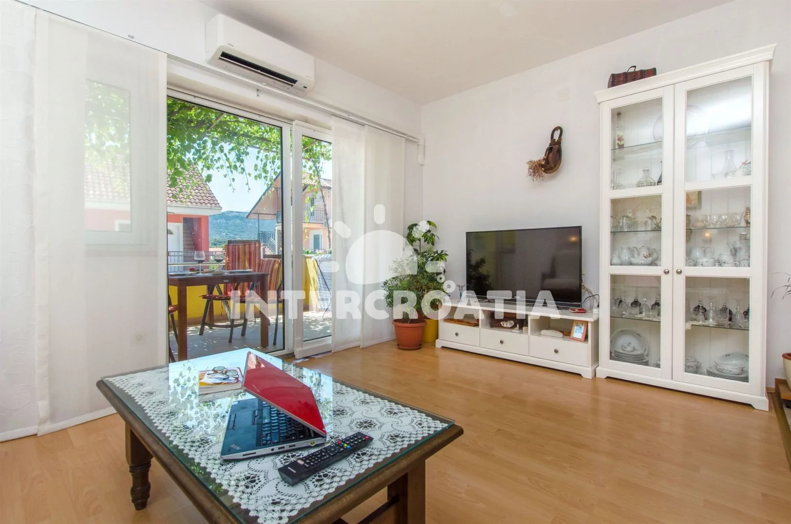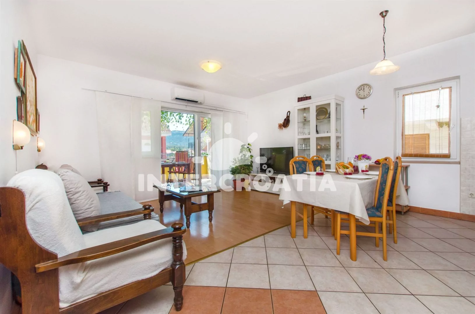 Apartmán až pro 5 osob s balkonem je umístěný v prvním patře vilky. Obývací pokoj spojený s kuchyní. Kuchyňská linka se sklokeramickou varnou deskou, digestoří, vestavěnou troubou, myčkou na nádobí, kávovarem, nádobím a lednicí s mrazákem. Obývací pokoj s jídelním stolem pro 4 osoby, rozložitelnou pohovkou (extra lůžko pro 3 osoby), televizí se satelitním programem, klimatizací a vstupem na balkon. Ložnice s jedním dvoulůžkem. Koupelna se sprchovým koutem, umyvadlem a wc. Hostům je k dispozici parkování u objektu zdarma.
