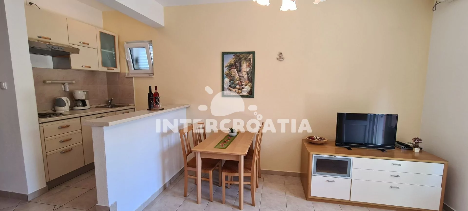 Vzdálenosti: Moře a oblázková pláž 900 m, veřejná doprava 200 m, centrum, supermarket, bar 250 m, směnárna, muzeum 300 m, půjčovna motorových člunů, pošta 350 m, přístav, diskotéka, přístav 1 km, minigolf, potápění, tenis 2 km, banka, lékárna, ambulance 4 km, trajekt 12 km.