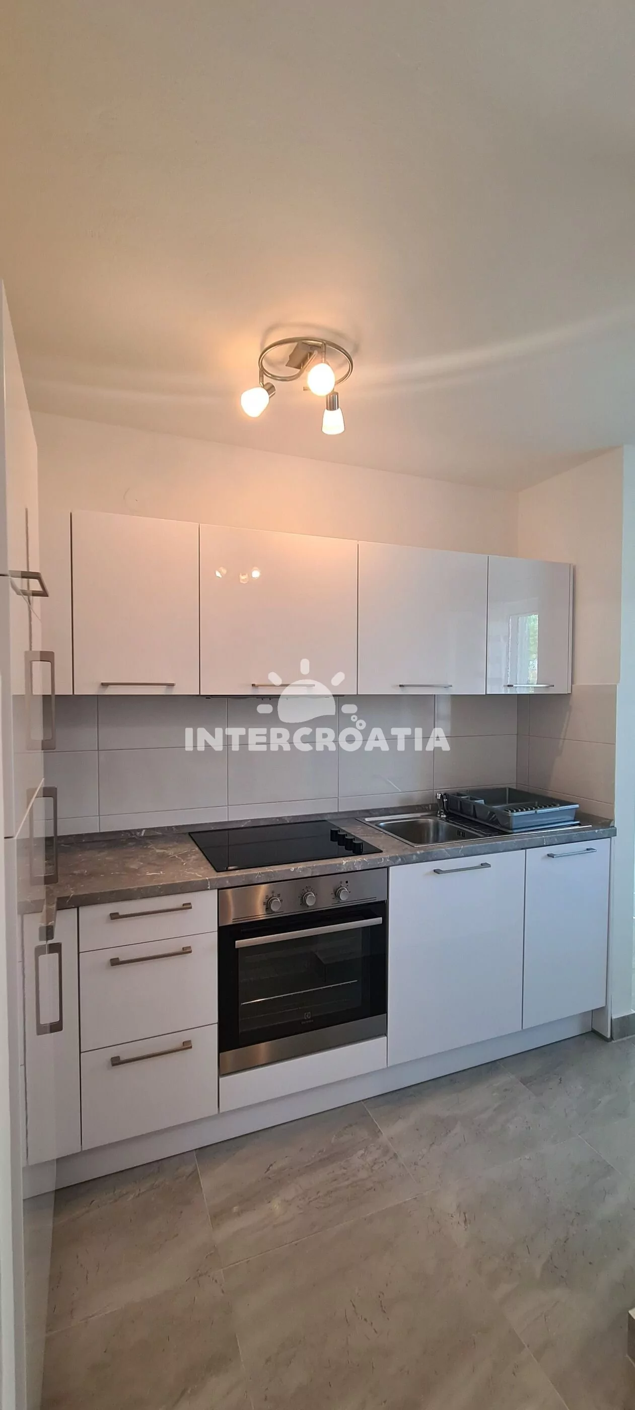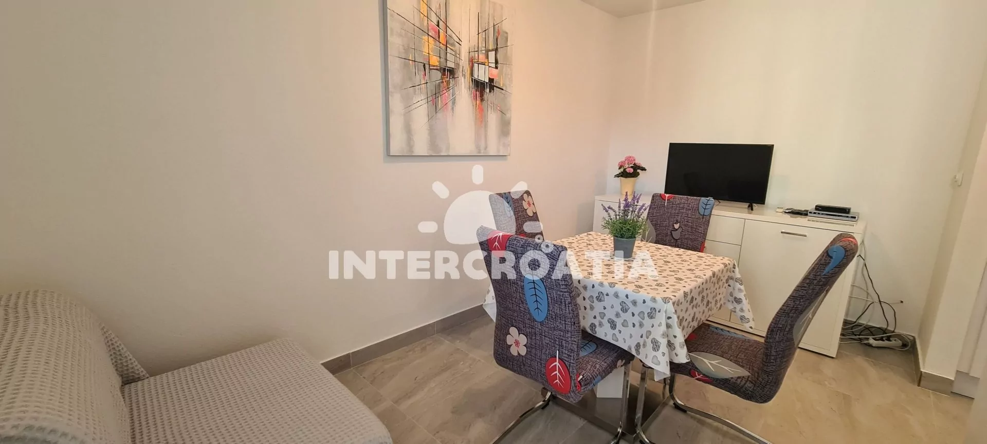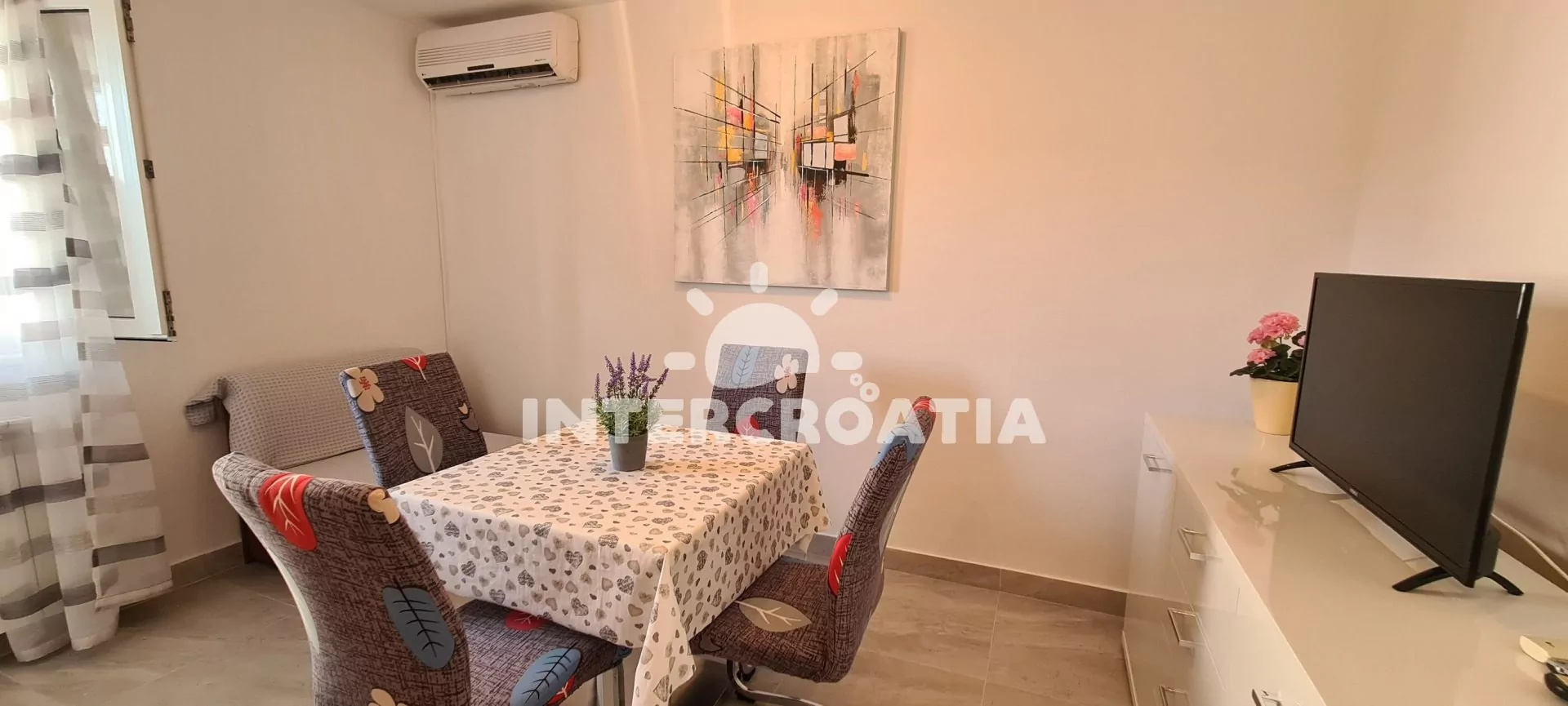 Apartmán (35 m2) s terasou, posezením a částečným výhledem na moře se nachází v přízemí domu. Apartmán má 1 ložnici a je vhodný pro 2 osoby. Obývací pokoj je spojený s kuchyní. Kuchyňská linka je vybavena sklokeramickou varnou deskou, vestavěnou troubou, rychlovarnou konvicí, kávovarem, toustovačem, nádobím a lednicí s mrazákem. Obývací pokoj s jídelním stolem pro 4 osoby, pohovkou, televizí a klimatizací. Ložnice s jedním dvoulůžkem. Koupelna se sprchovým koutem, umyvadlem, pračkou, fénem a wc. Hostům je k dispozici parkování u objektu zdarma.