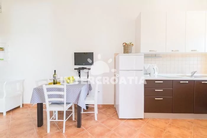 Apartmánový dům se nachází v klidné ulici a v docházkové vzdálenosti od moře a pláže. Dům nabízí ubytování v 5 klimatizovaných apartmánech s lodžiemi a venkovním posezením. K dispozici společná terasa se zděným grilem. Parkovací místa pro automobily na pozemku u domu.