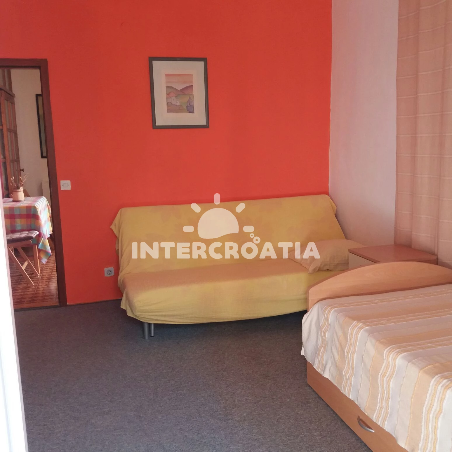 Apartmán se nachází 300 m od moře a pláže. Pláž je oblázková a větší kamení. Parkování je před domem.