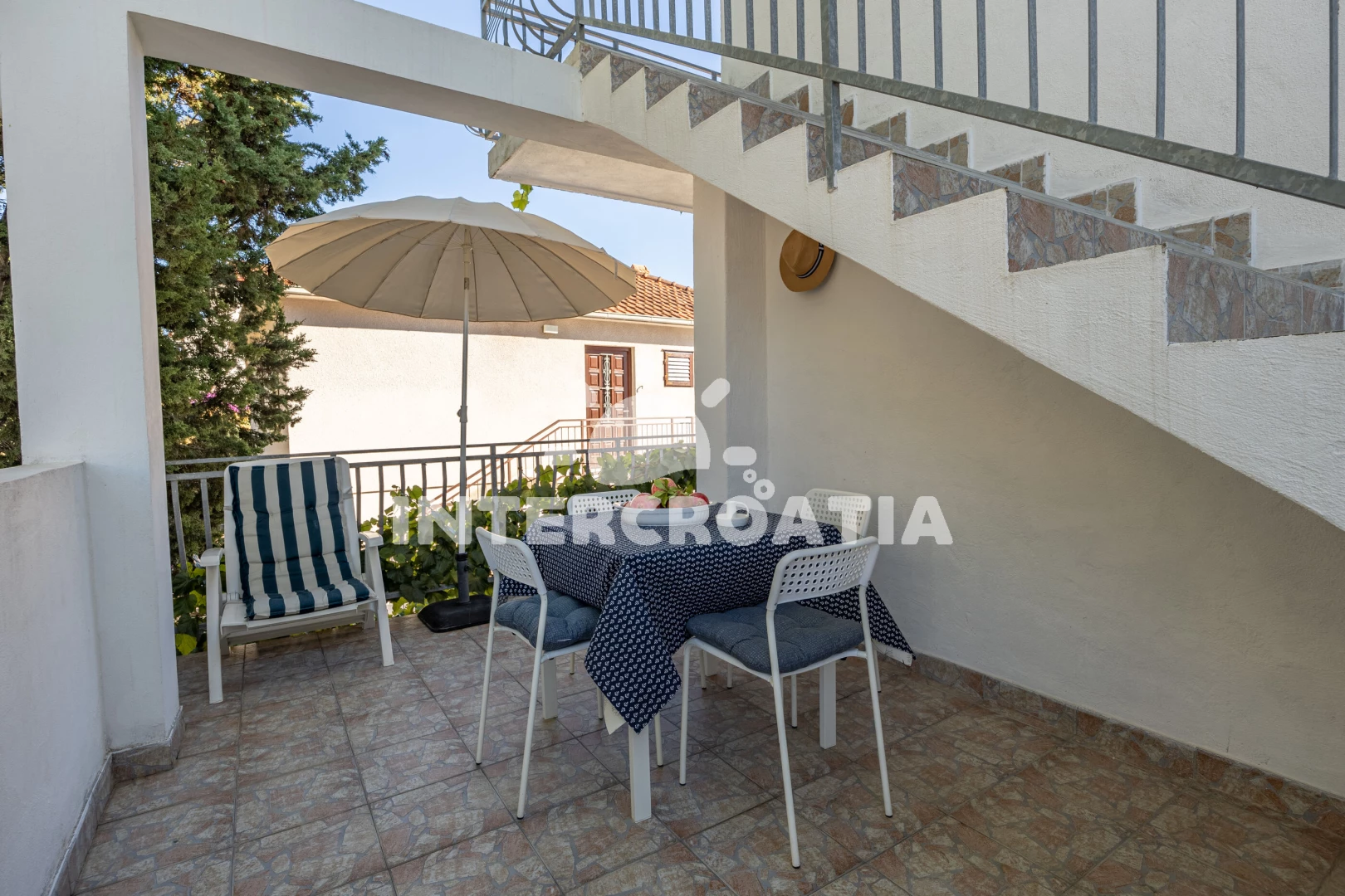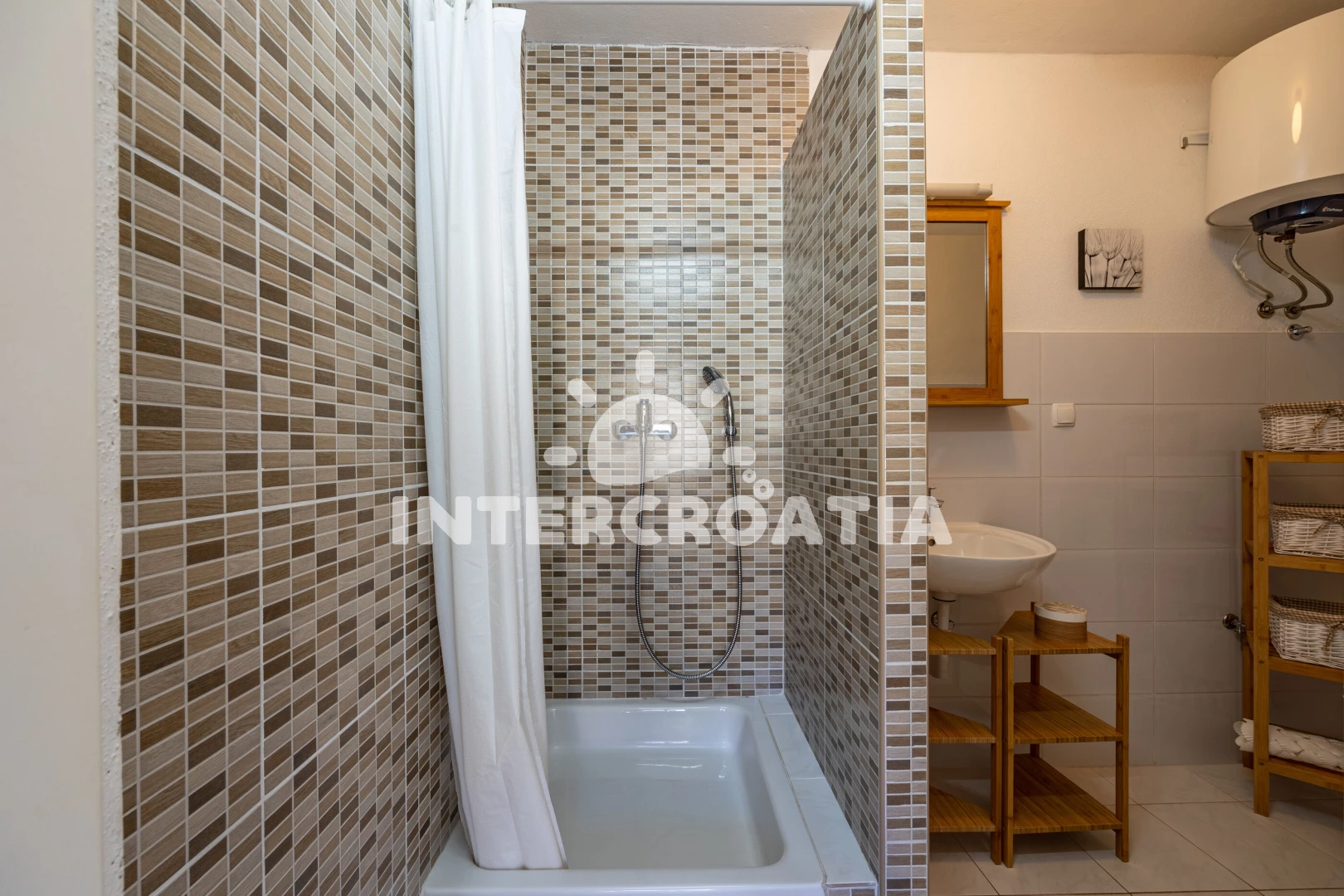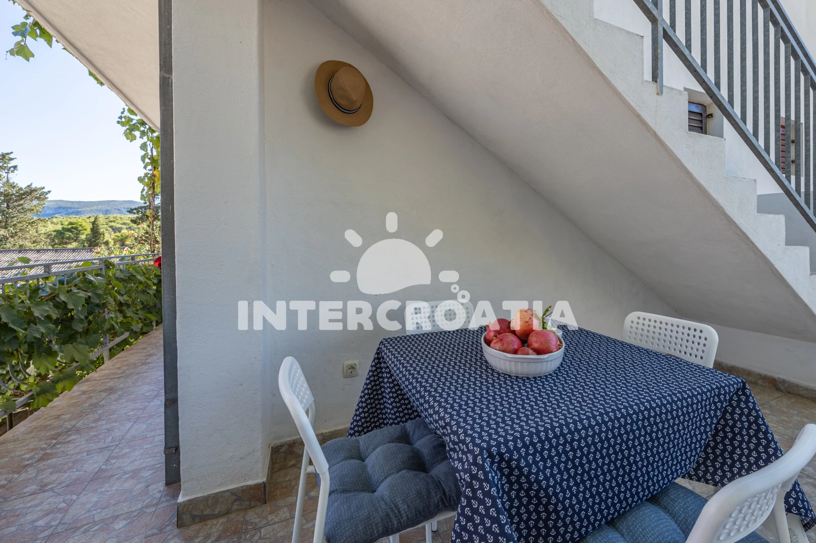 Apartmán se nachází 1000 m od moře a pláže. Pláž je skalnatá, oblázková a větší kamení. Parkování je před domem.