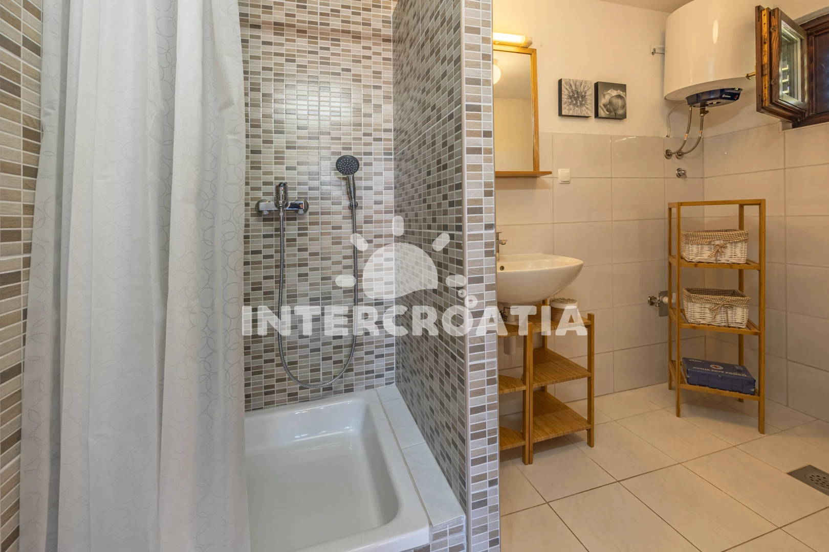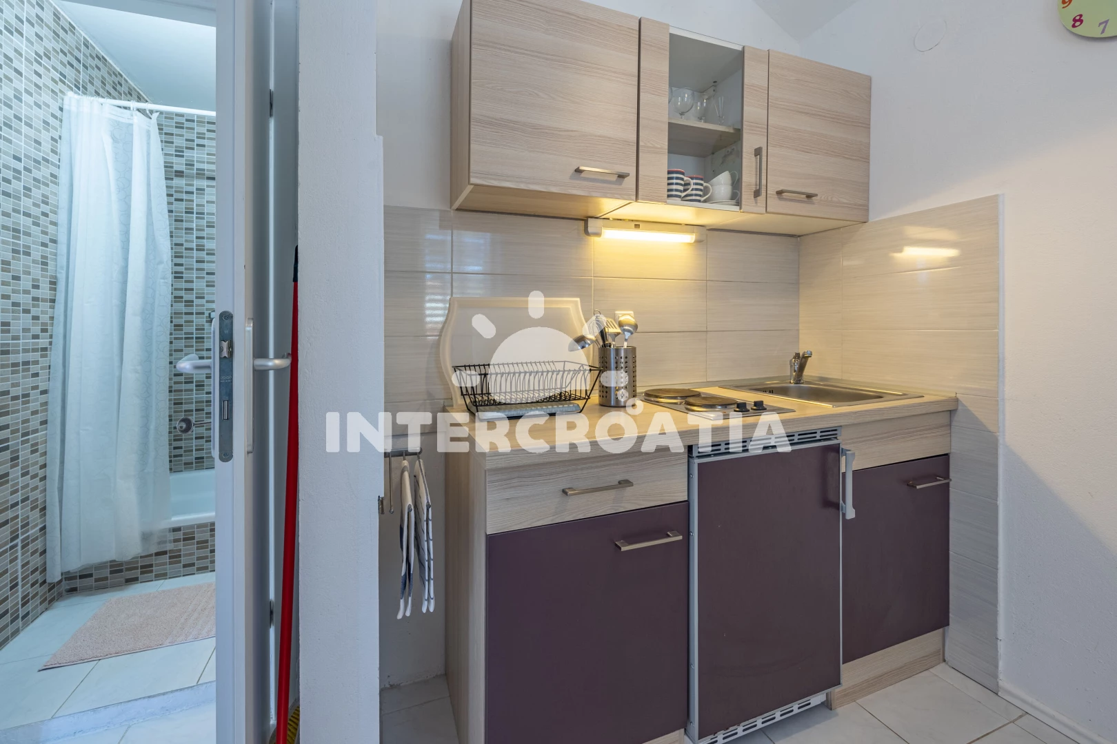Apartmán se nachází 1000 m od moře a pláže. Pláž je skalnatá, oblázková a větší kamení. Parkování je před domem.