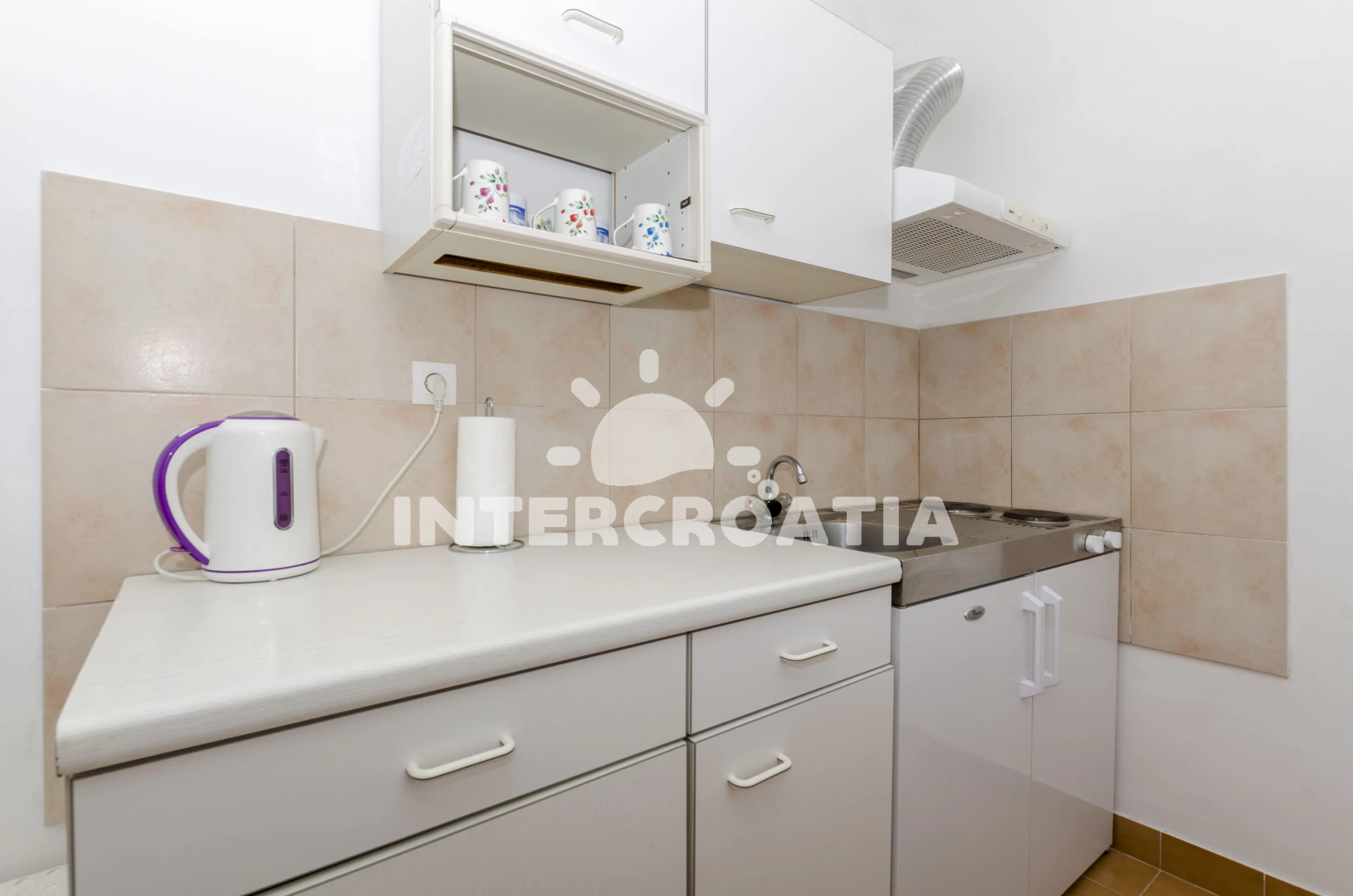 Apartmán se nachází 300 m od moře a pláže. Pláž je oblázková a betonové desky. Parkování je před domem.