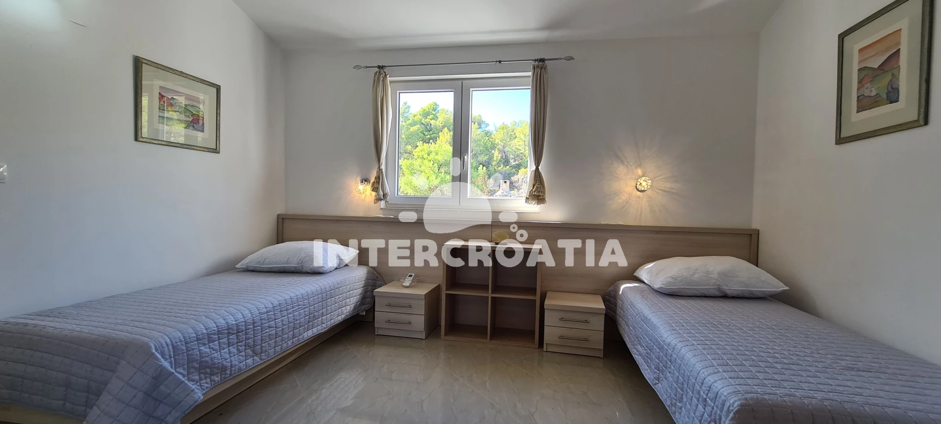 Vzdálenosti: Moře 50 m, pláž 50 m (písčitá, skalnatá, oblázková, větší kamení a betonové desky), kotviště pro čluny 600 m, marina 600 m, čerpací stanice 600 m, restaurace 1 km, půjčovna motorových člunů 1 km, směnárna 1 km, centrum 1 km, pošta 1 km, veřejná doprava 1 km, supermarket 1 km, bar 1 km, půjčovna kol 1 km, muzeum 1 km, diskotéka 1,3 km, lékárna 1,5 km, ambulance 1,5 km, banka 1,5 km, potápění 2,5 km, mini golf 2,5 km, tenisové kurty 2,5 km, trajekt (Stari Grad) 12 km,