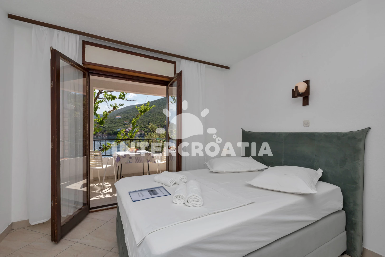 Apartmán (16 m2) typu studio s balkonem, a výhledem na moře. Nachází se v 1. patře objektu. Kuchyňská linka je vybavena varnou deskou, troubou, rychlovarnou konvicí, nádobím, lednicí, mrazákem. K…