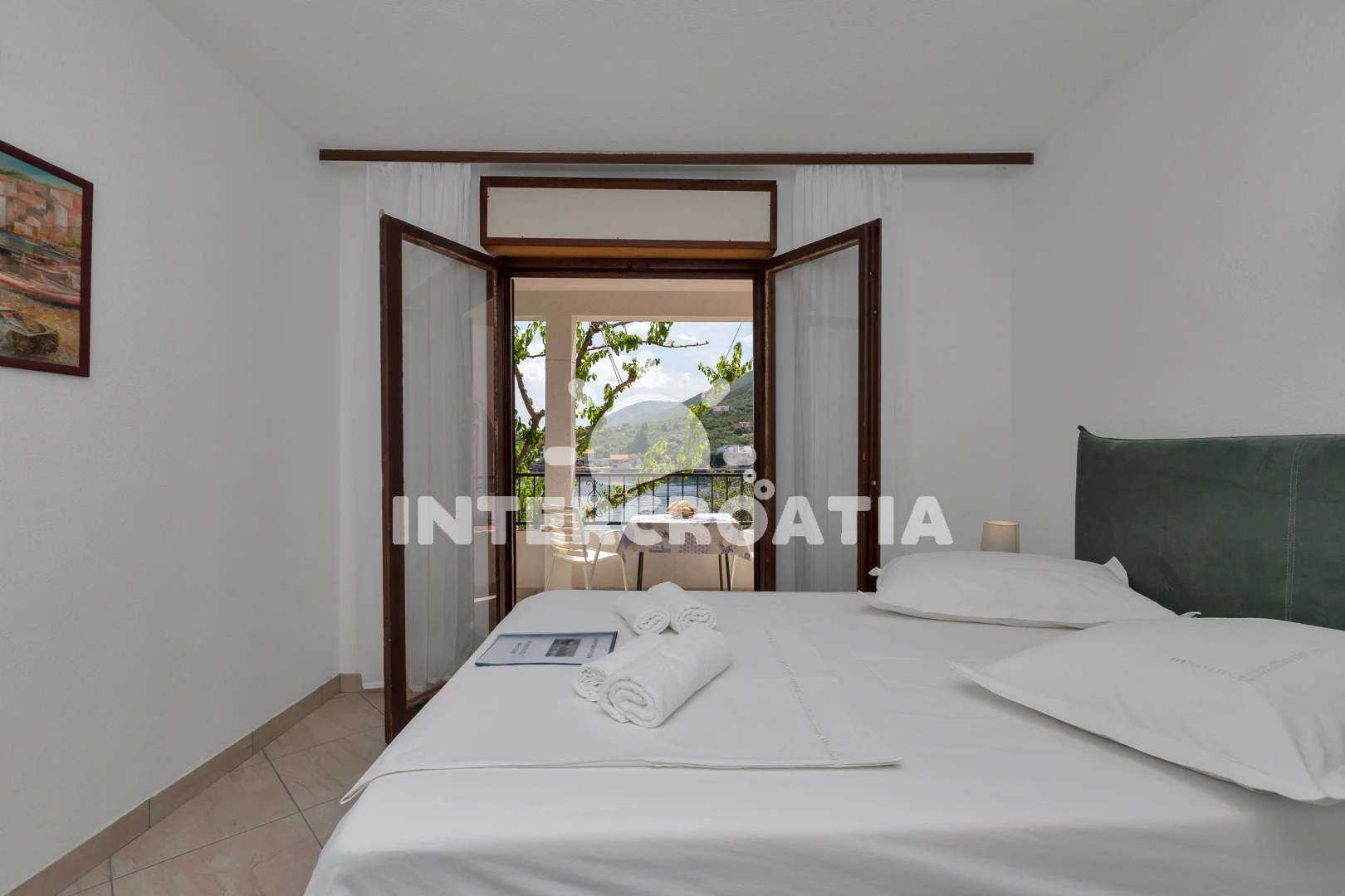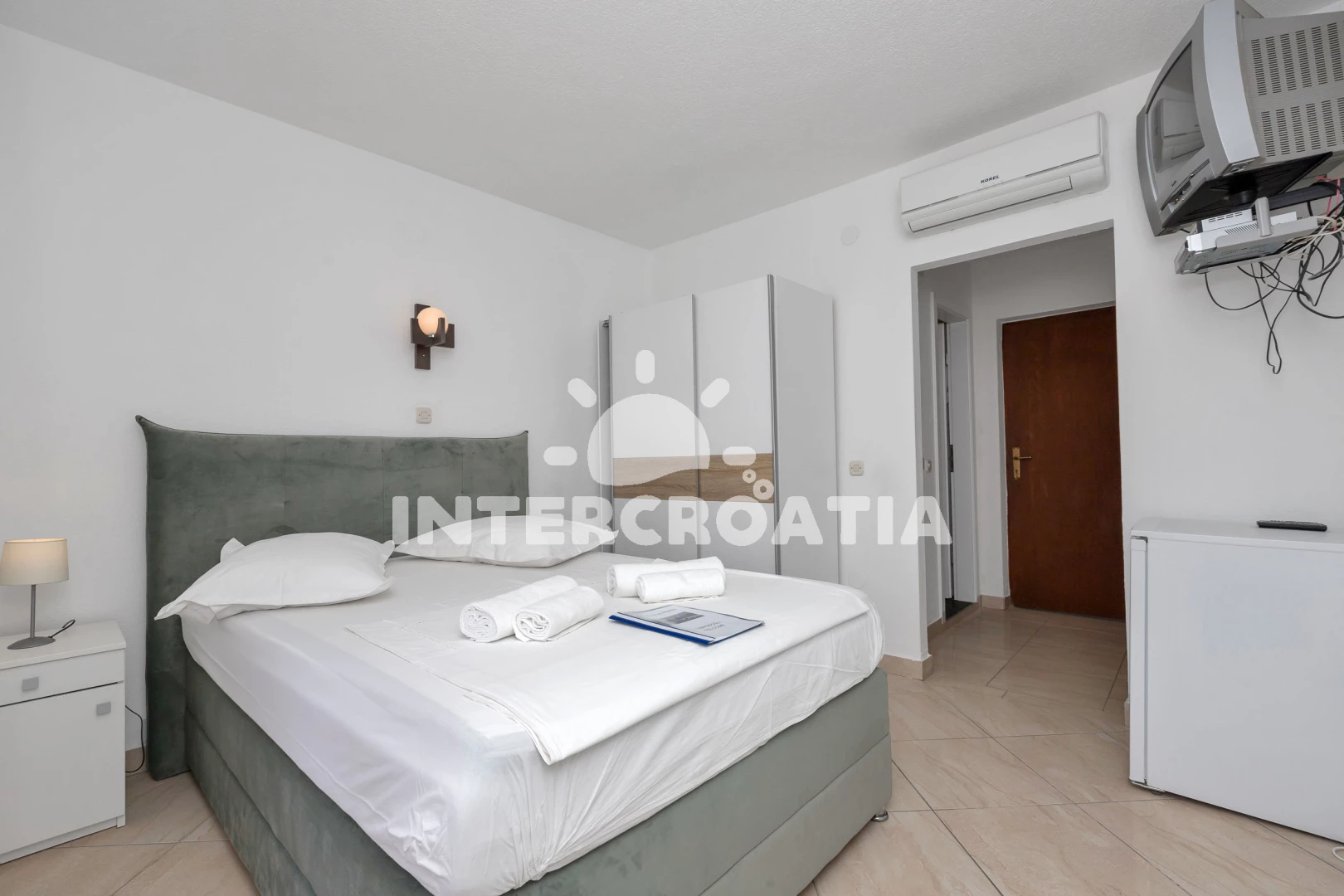Apartmán (16 m2) typu studio s balkonem, a výhledem na moře. Nachází se v 1. patře objektu. Kuchyňská linka je vybavena varnou deskou, troubou, rychlovarnou konvicí, nádobím, lednicí, mrazákem. K dispozici dvoulůžko, televize se satelitním programem. Koupelna se sprchovým koutem, umyvadlem, WC. Hostům je k dispozici parkování u objektu zdarma.