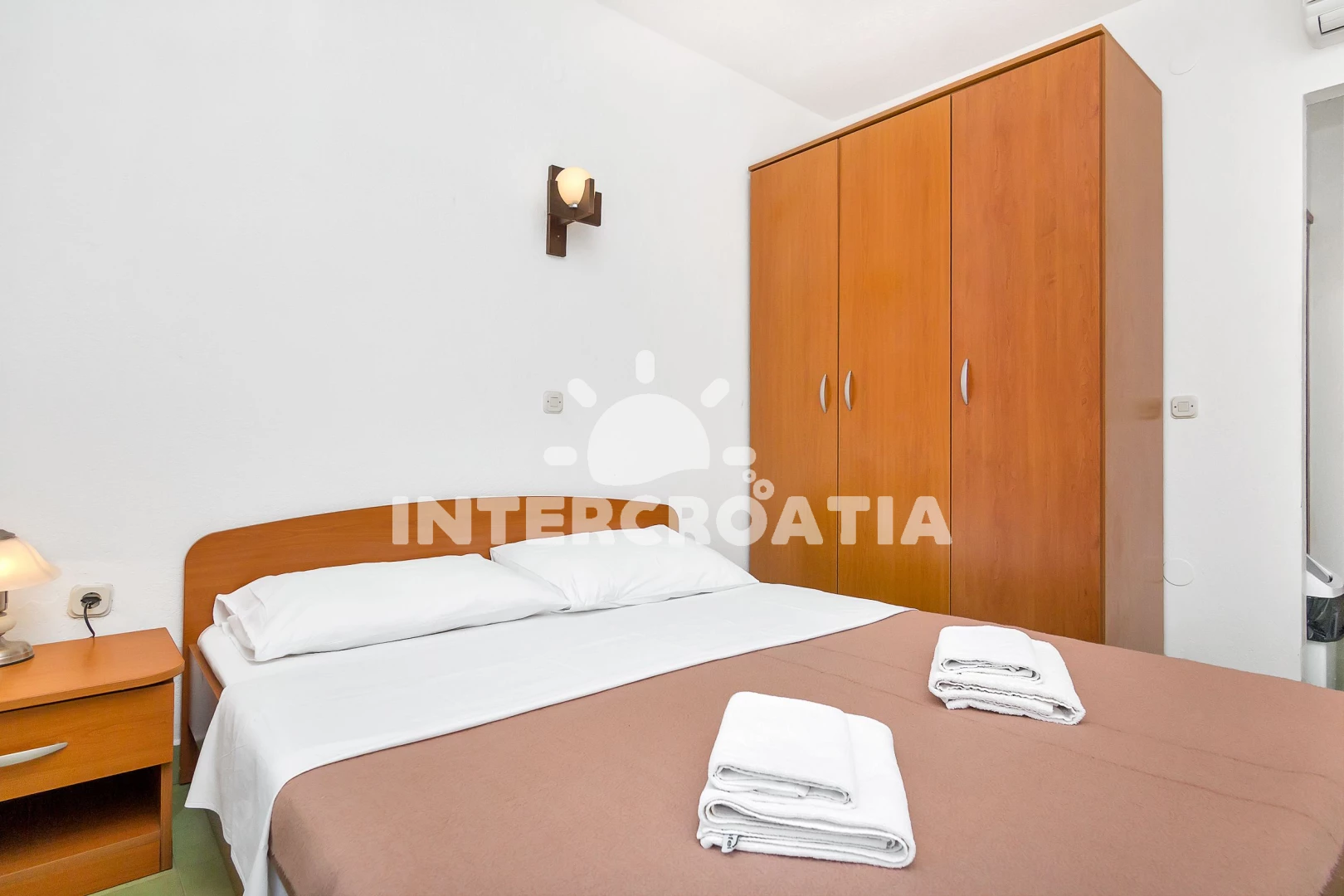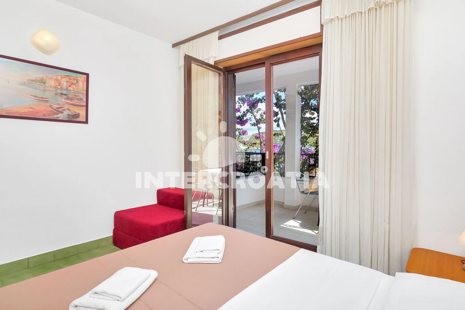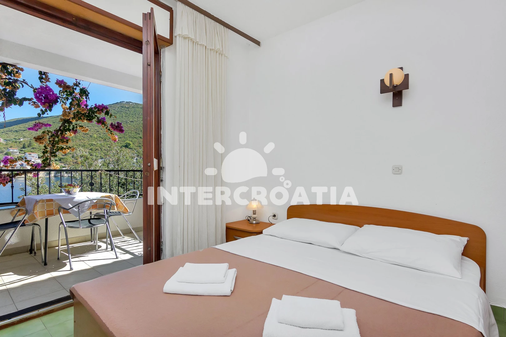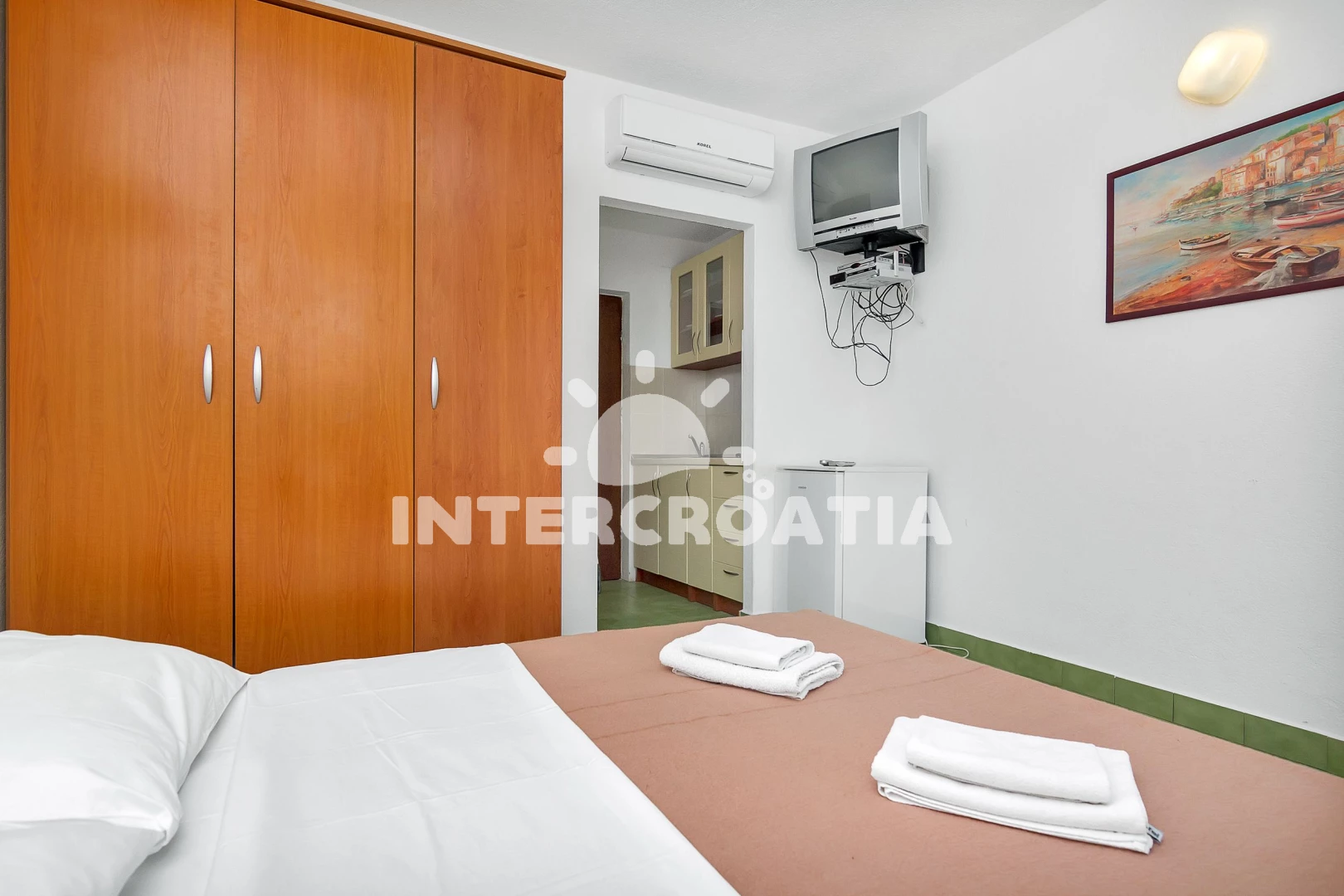 Apartmán typu studio (16 m2) s balkonem, a výhledem na moře. Nachází se ve 2. patře objektu. Kuchyňská linka je vybavena varnou deskou, nádobím, mini lednicí. K dispozici dvoulůžko, televize se satelitním programem. Koupelna se sprchovým koutem, umyvadlem, WC. Hostům je k dispozici parkování u objektu zdarma.