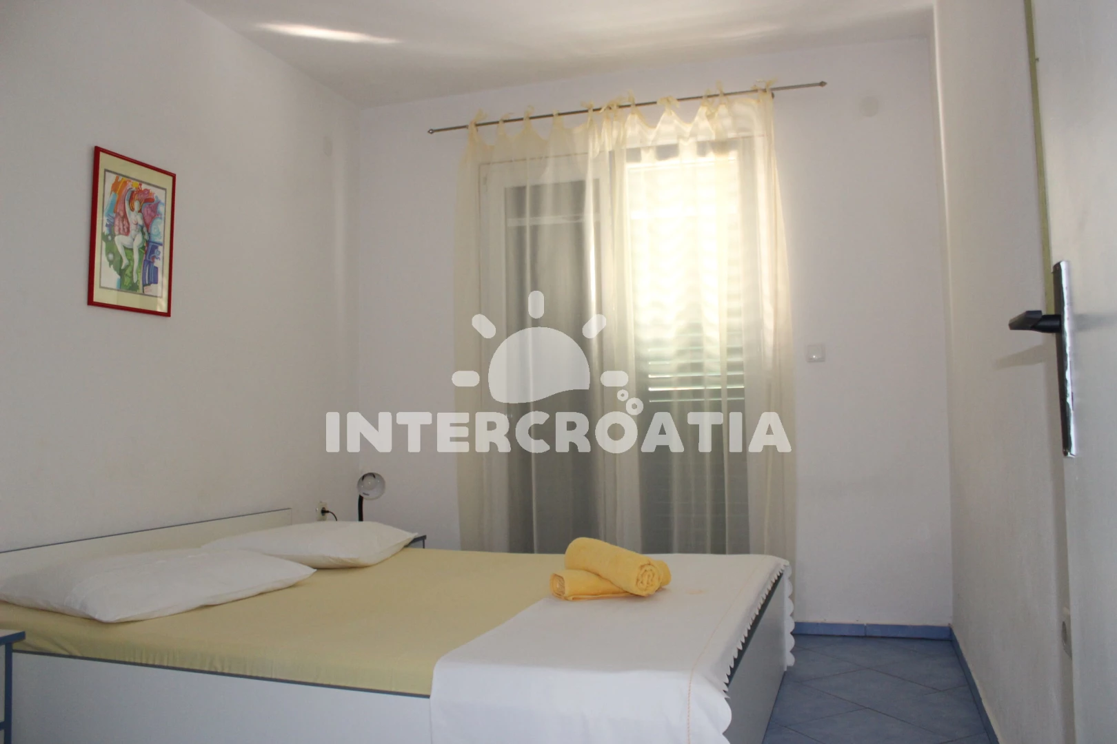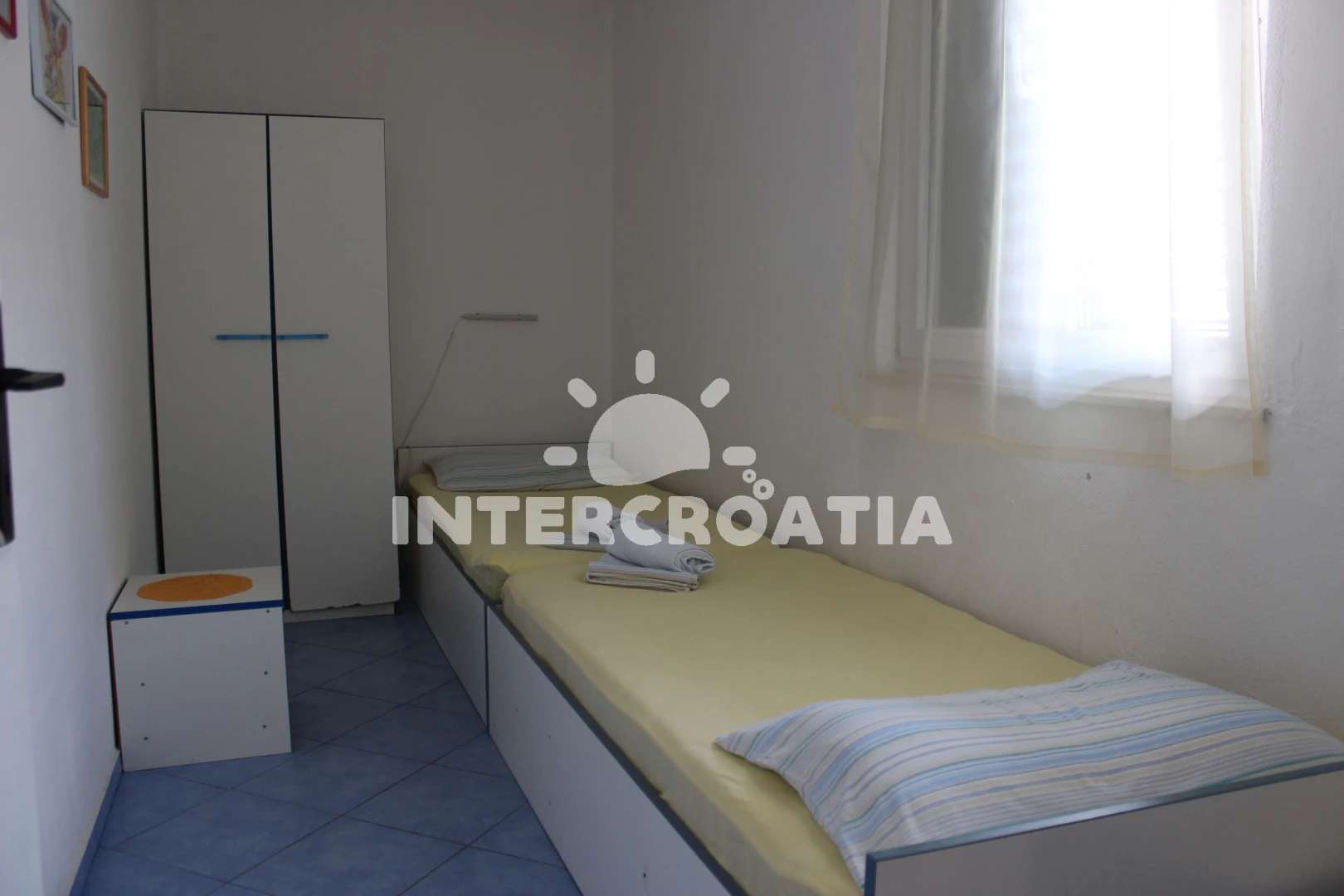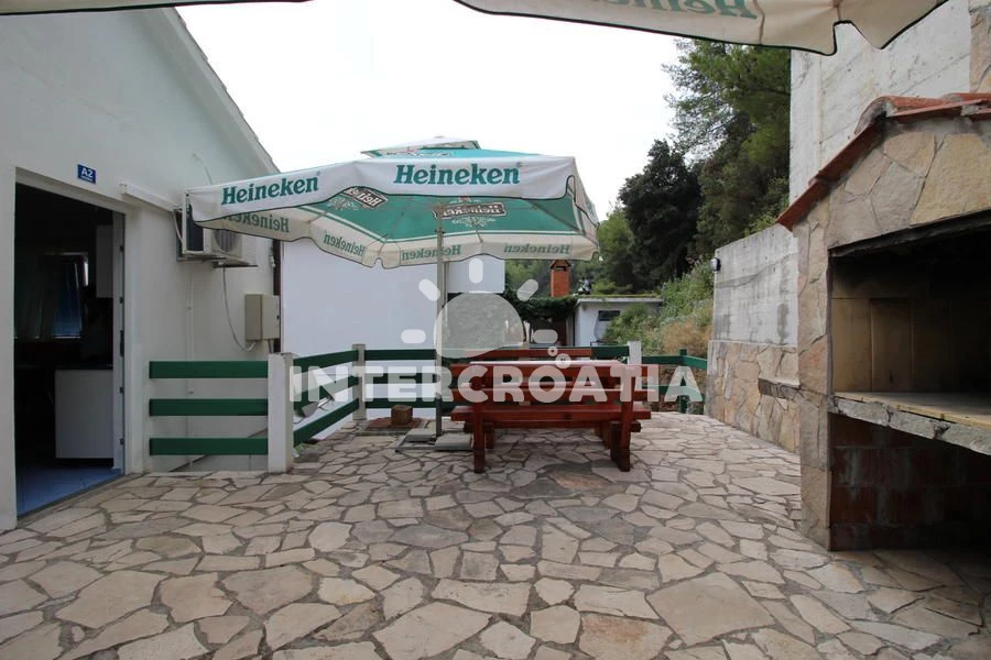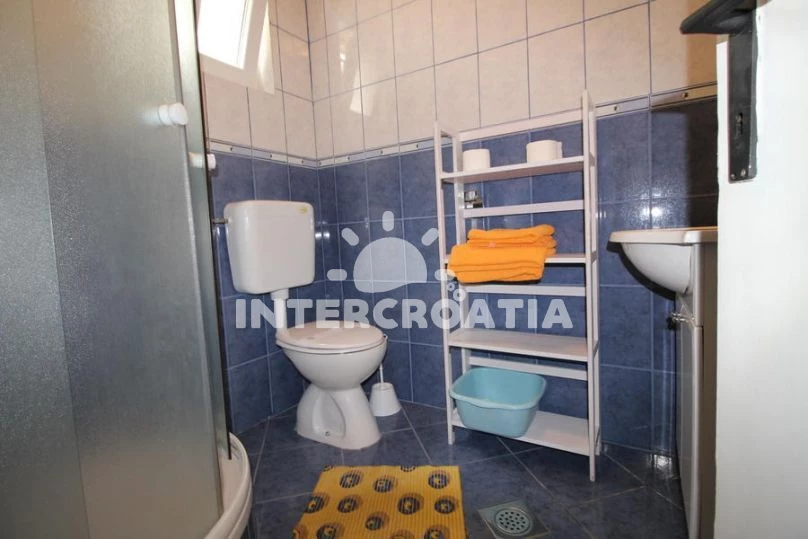 Apartmán se nachází 150 m od moře a pláže. Pláž je skalnatá, oblázková, větší kamení a betonové desky. U objektu je k dispozici společná zahrada s posezením a grilem. Parkování je před domem.