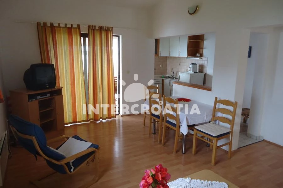 Apartmán se nachází 10 m od moře a pláže. Pláž je skalnatá, oblázková, větší kamení a betonové desky. U objektu je k dispozici společná zahrada s posezením a grilem. Parkování je před domem.