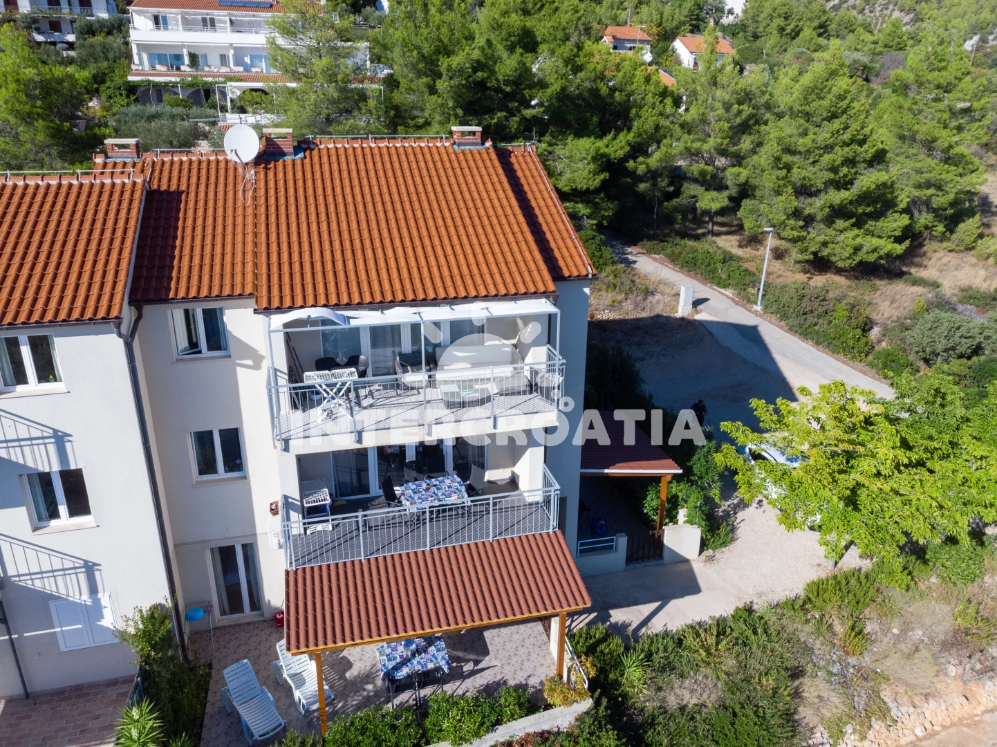 Vzdálenosti: Moře 70 m, pláž 70 m (oblázky), restaurace 40 m, centrum 200 m, bar 200 m, supermarket 300 m, marina 4 km, čerpací stanice 5 km, směnárna 5 km, banka 5 km, pošta 5 km, ambulance 5 km, lékárna 5 km, diskotéka 5 km, potápění 5 km, tenisové kurty 5 km, trajekt (Stari Grad) 12 km,