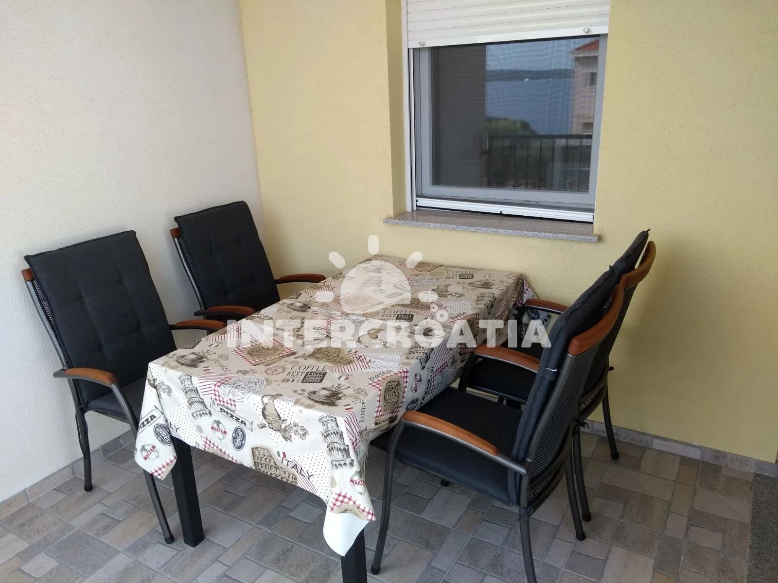 Apartmán se nachází 100 m od moře a pláže. Pláž je skalnatá, oblázková, větší kamení a betonové desky. U objektu je k dispozici společná zahrada s posezením a grilem. Parkování je před domem.