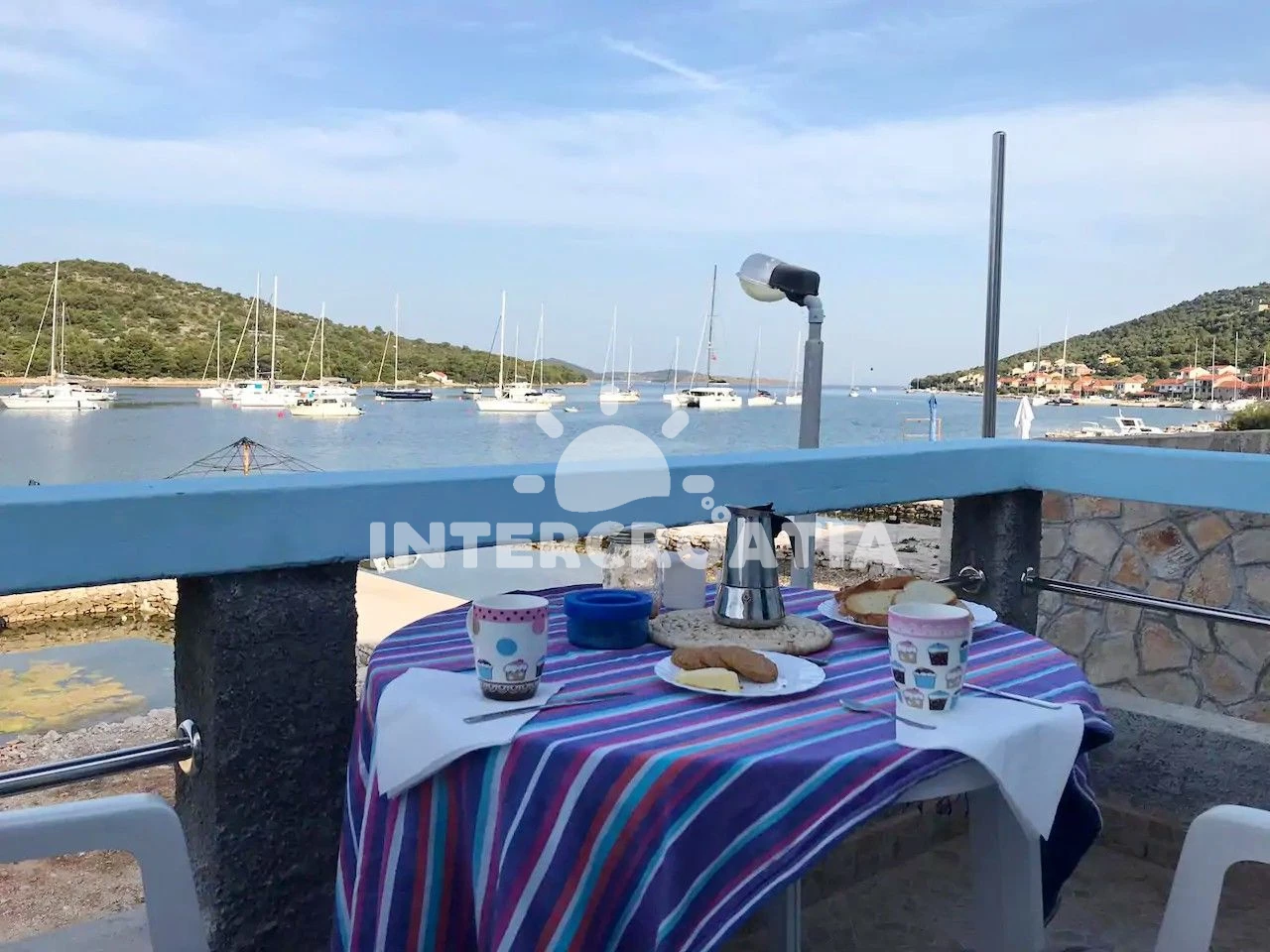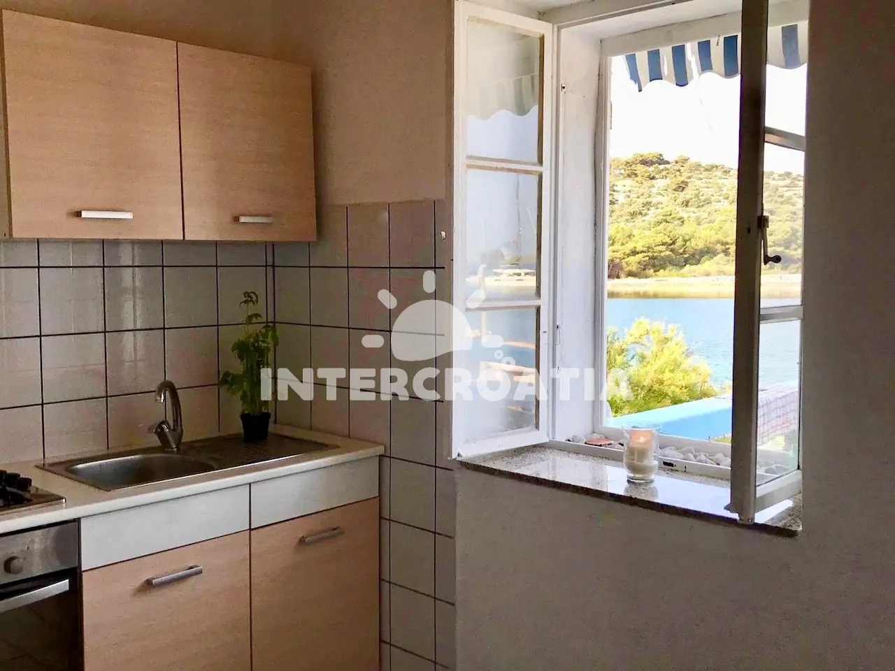 Vzdálenosti: Moře 5 m, pláž 5 m (větší kamení), restaurace 5 m, bar 5 m, supermarket 150 m, ambulance 150 m, centrum 150 m, pošta 150 m, trajekt (Split) 11,2 km, lékárna 34 km, letiště (Split) 80 km,