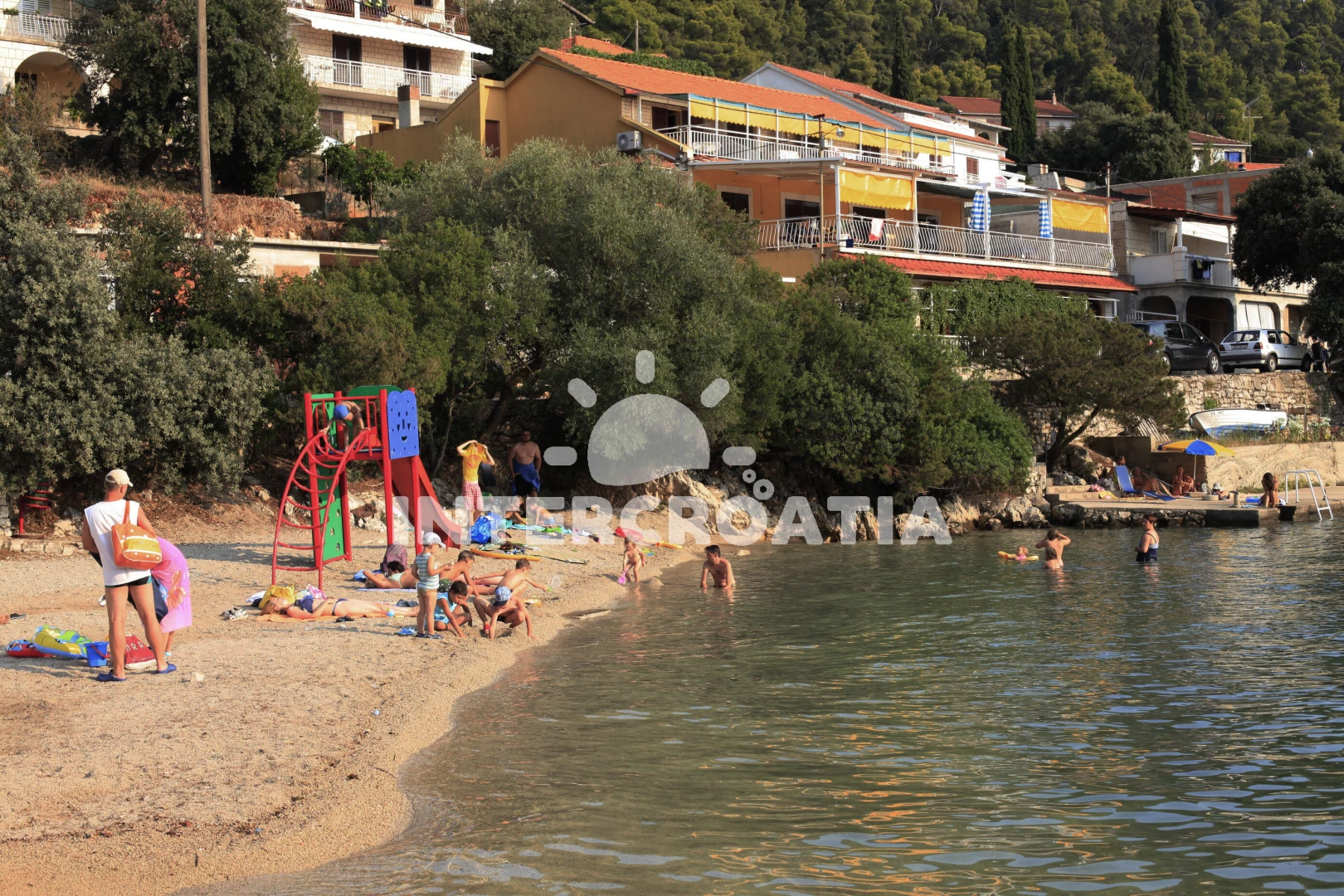 Vzdálenosti: Moře 200 m, pláž 350 m (betonové desky), centrum 400 m, bar 400 m, restaurace 400 m, supermarket 500 m, lékárna 4 km, veřejná doprava 4 km, ambulance 4 km, pošta 4 km,