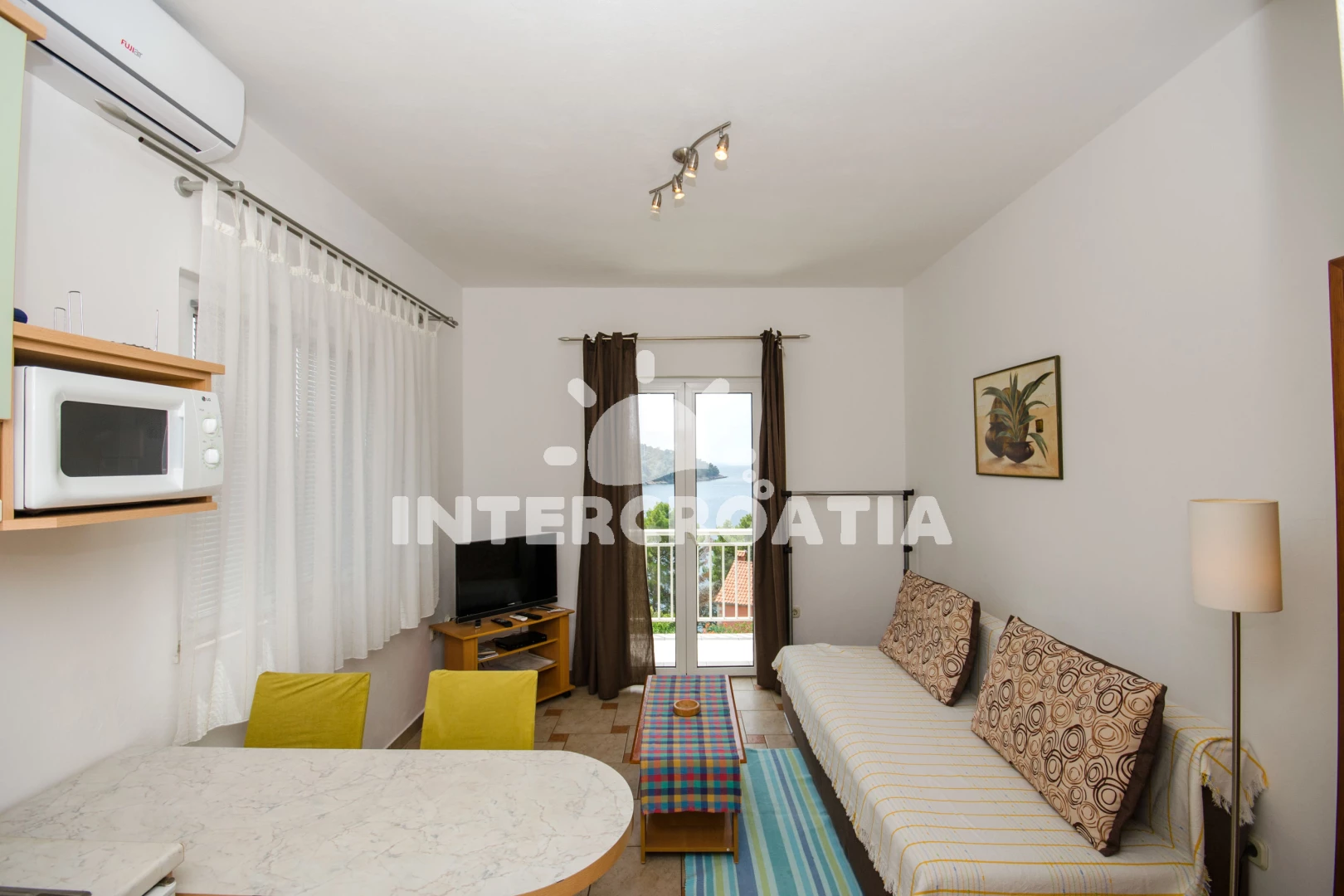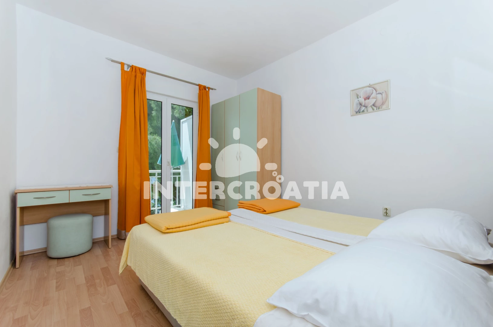 Vzdálenosti: Moře 50 m, pláž 50 m (kamenné a betonové desky), veřejná doprava 200 m, půjčovna motorových člunů 250 m, kotviště pro čluny 250 m, půjčovna kol 250 m, centrum 300 m, supermarket 300 m, směnárna 400 m, tenisové kurty 400 m, mini golf 400 m, restaurace 500 m, bar 500 m, potápění 1,5 km, čerpací stanice 2 km, ambulance 4 km, lékárna 4 km, pošta 4 km, banka 4 km, muzeum 20 km, diskotéka 20 km, marina 25 km, trajekt (Dominče (Korčula)) 30 km, letiště (Dubrovnik) 130 km,