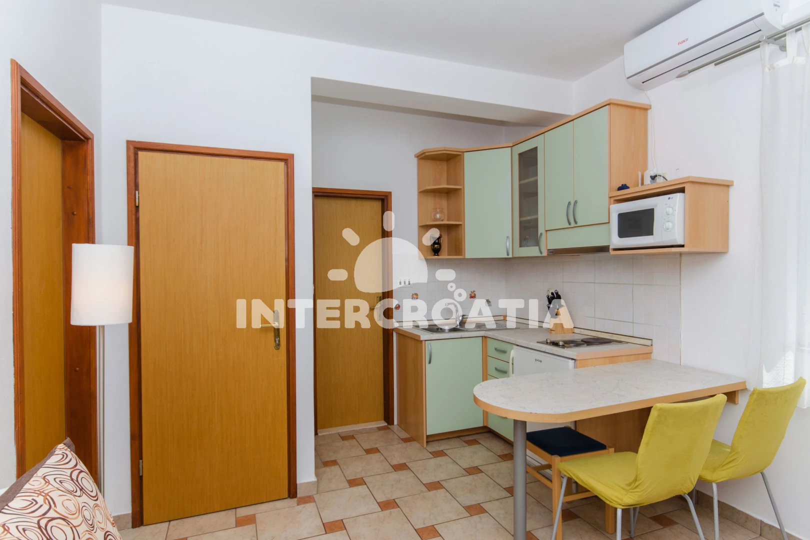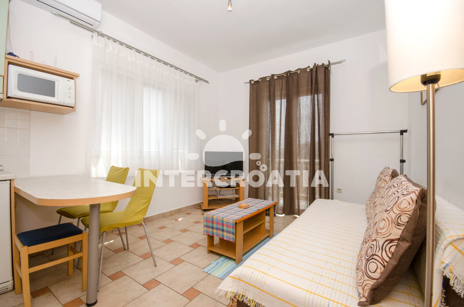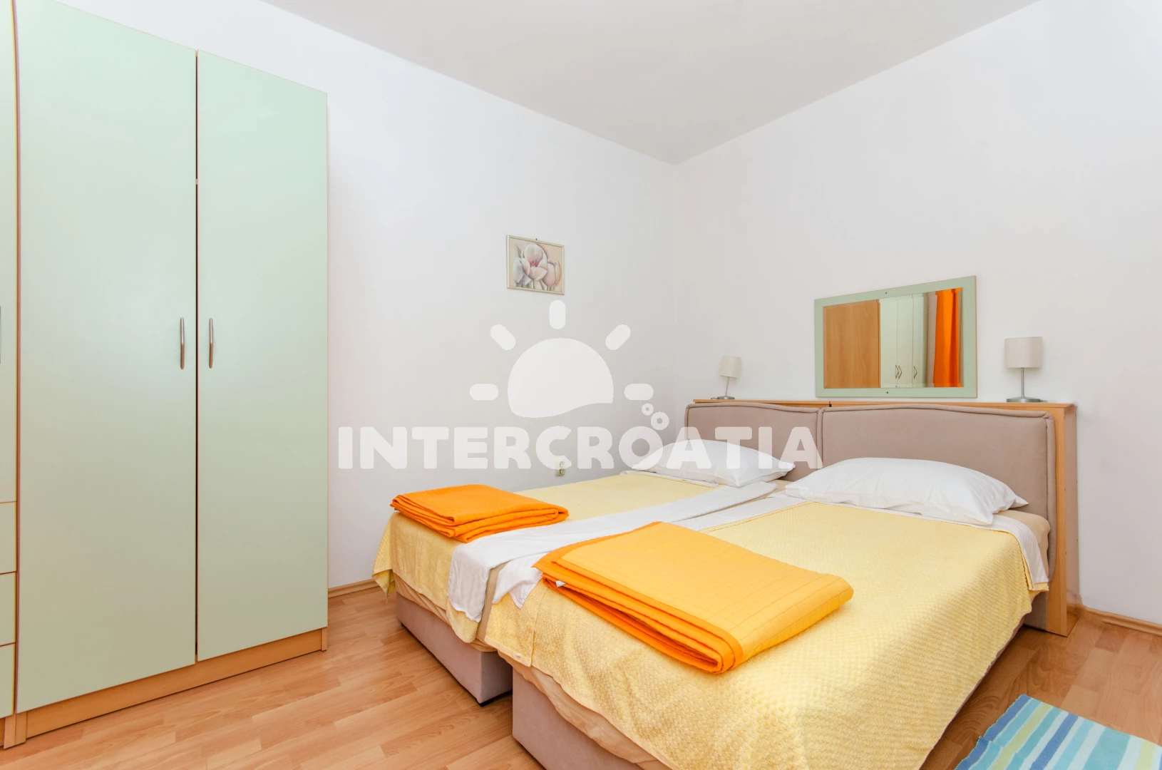 Apartmán se nachází 50 m od moře a pláže. Pláž je kamenné a betonové desky. U objektu je k dispozici společná zahrada s posezením a grilem.
