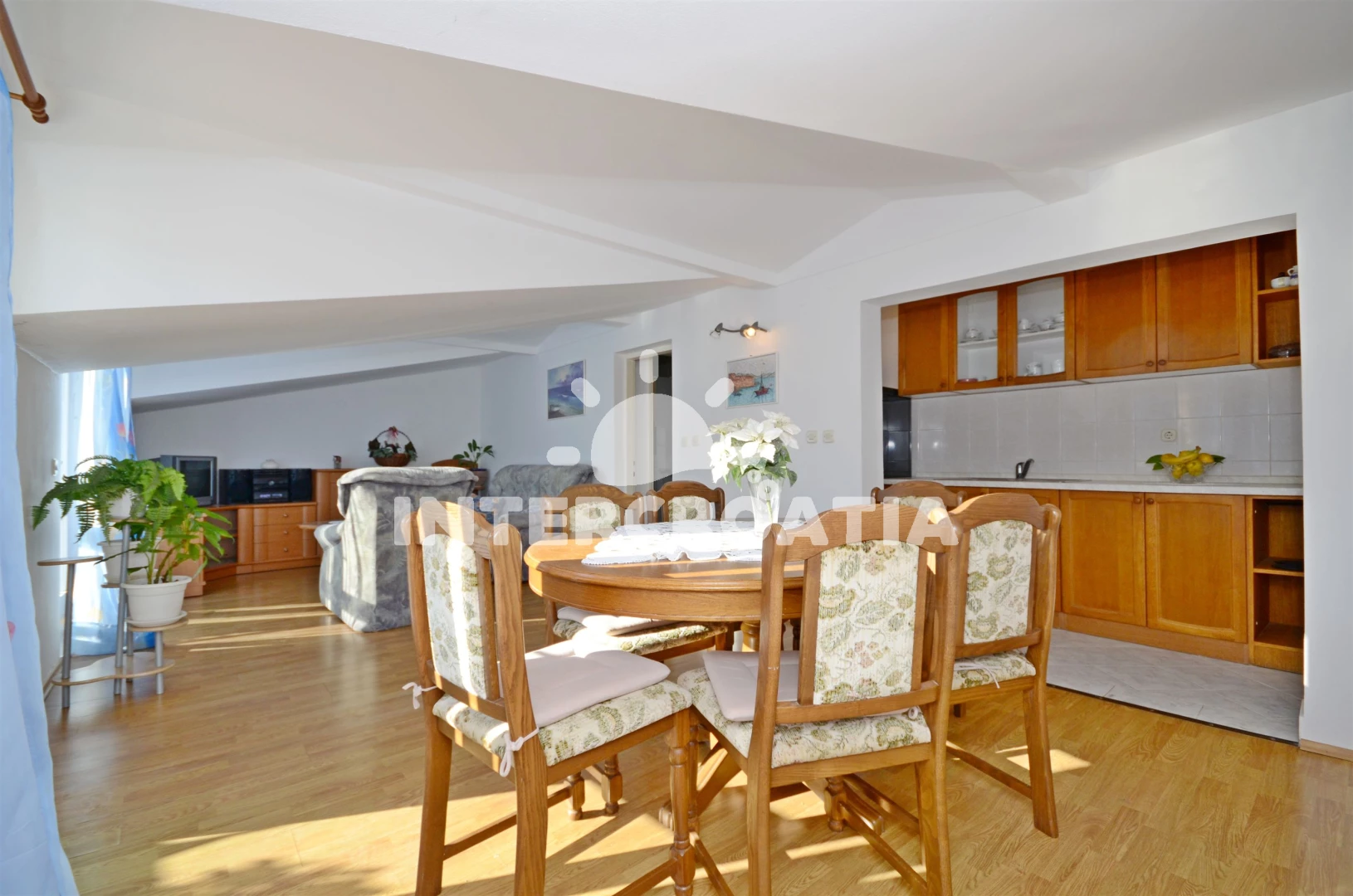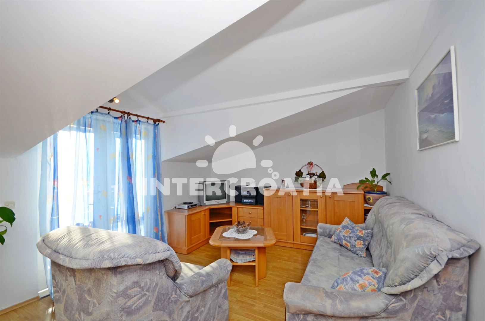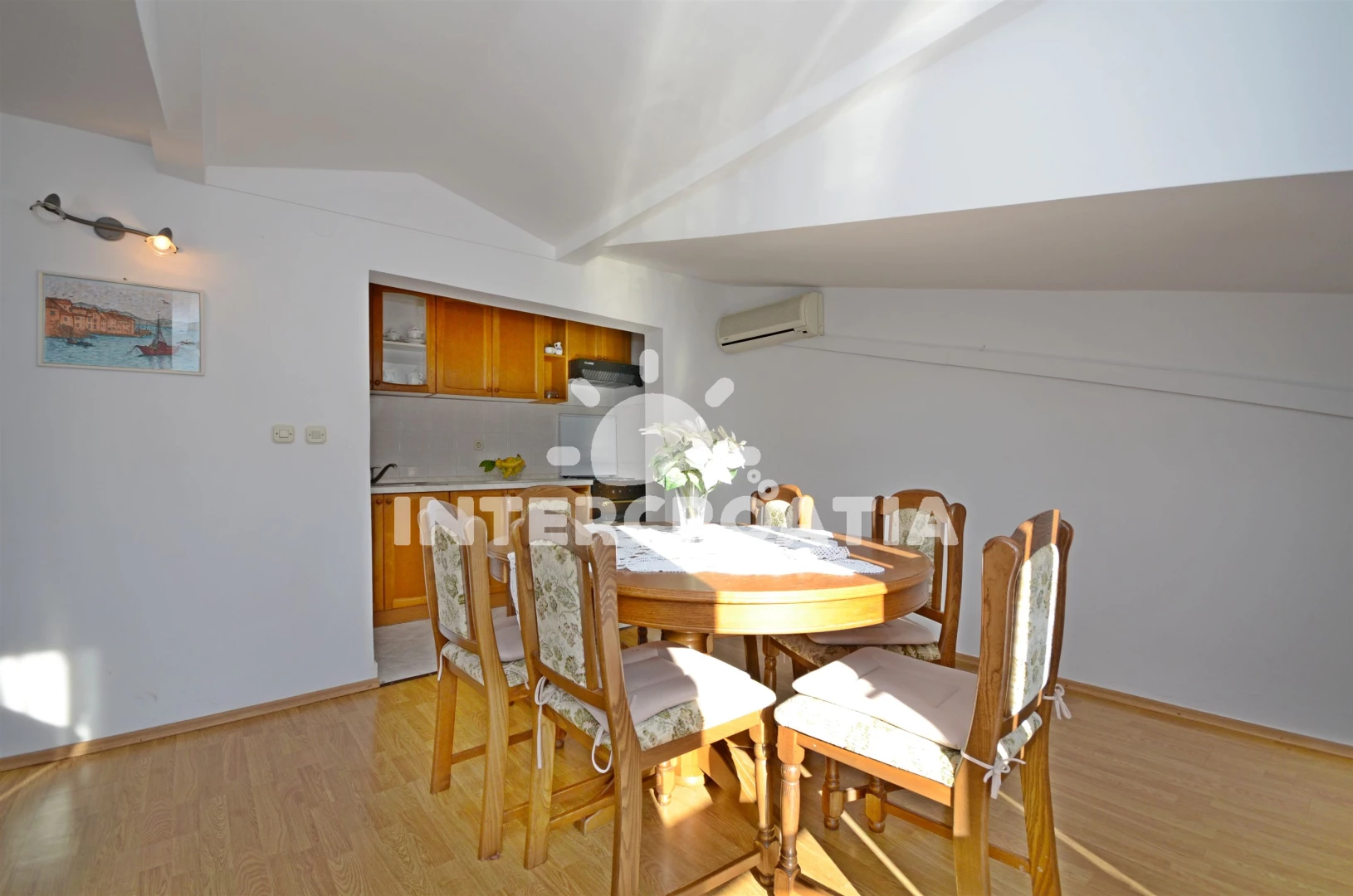 Apartmán (100 m2) s balkonem, a výhledem na moře. Nachází se ve 2. patře objektu. Apartmán má 3 ložnice a je vhodný pro až 7 osob. Kuchyňská linka je vybavena varnou deskou, troubou, nádobím, lednicí…