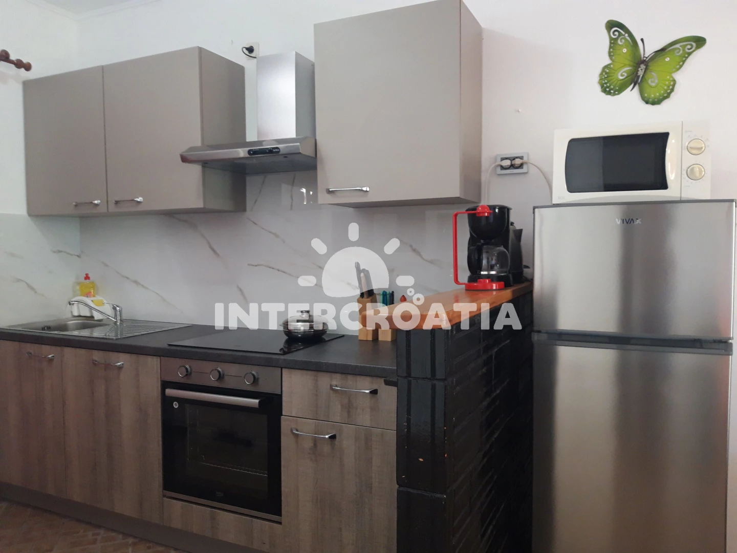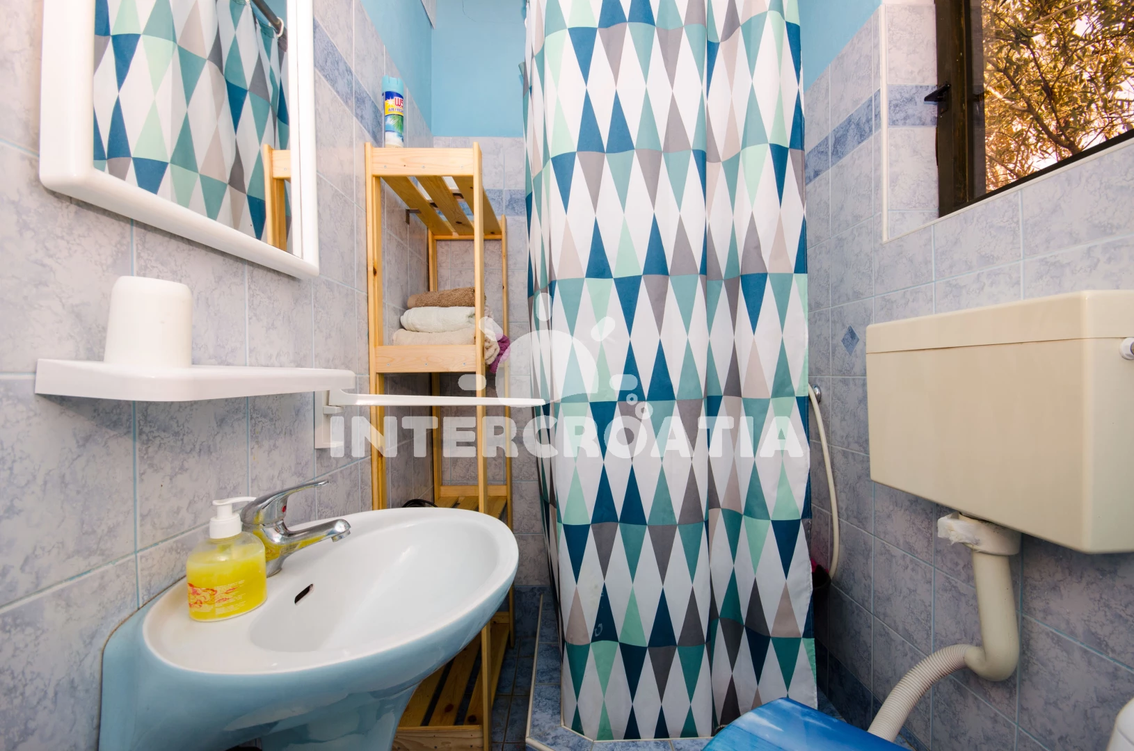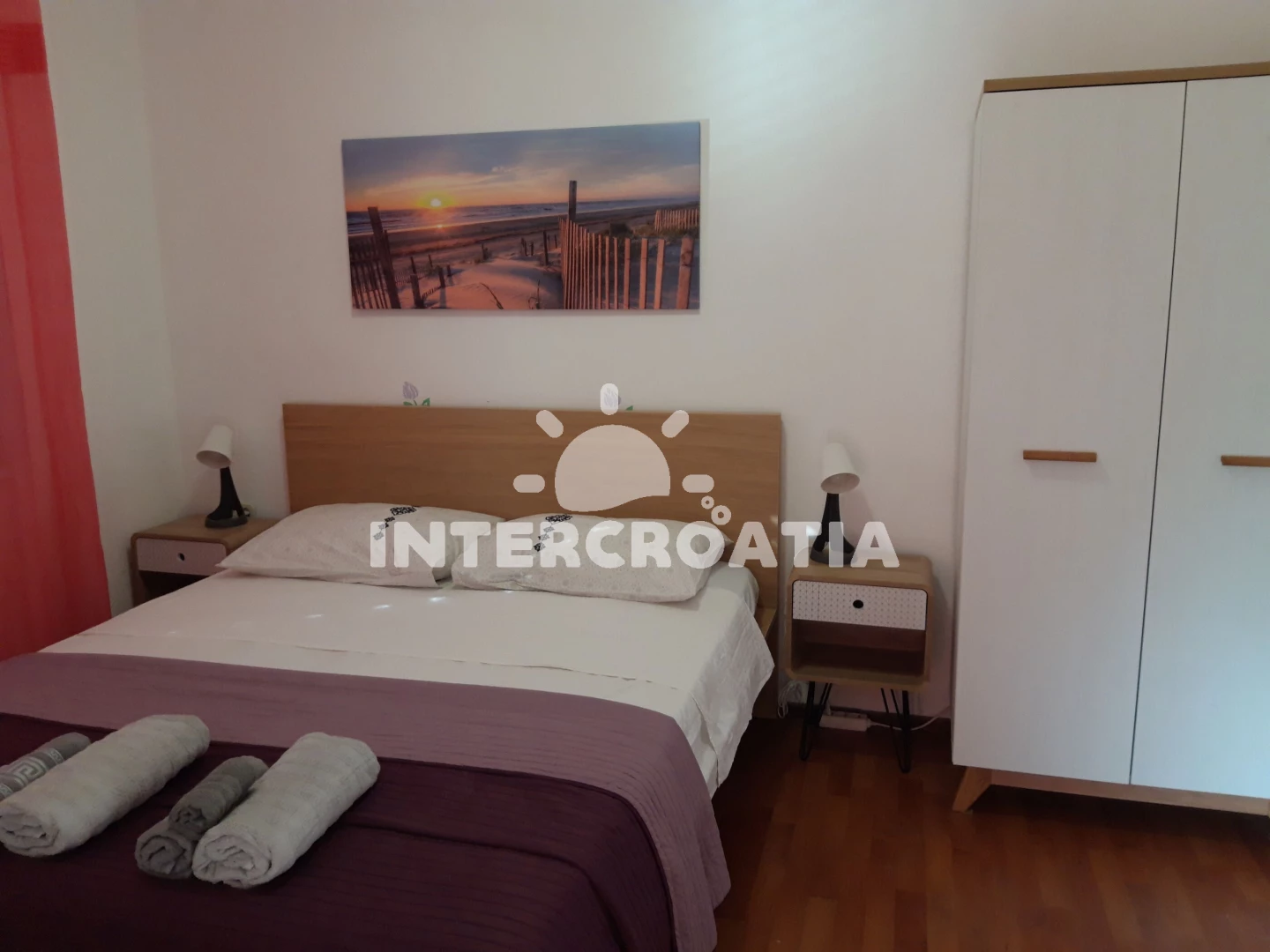 Apartmán se nachází 30 m od moře a pláže. Pláž je kamenné a betonové desky. U objektu je k dispozici společná zahrada s posezením a grilem.