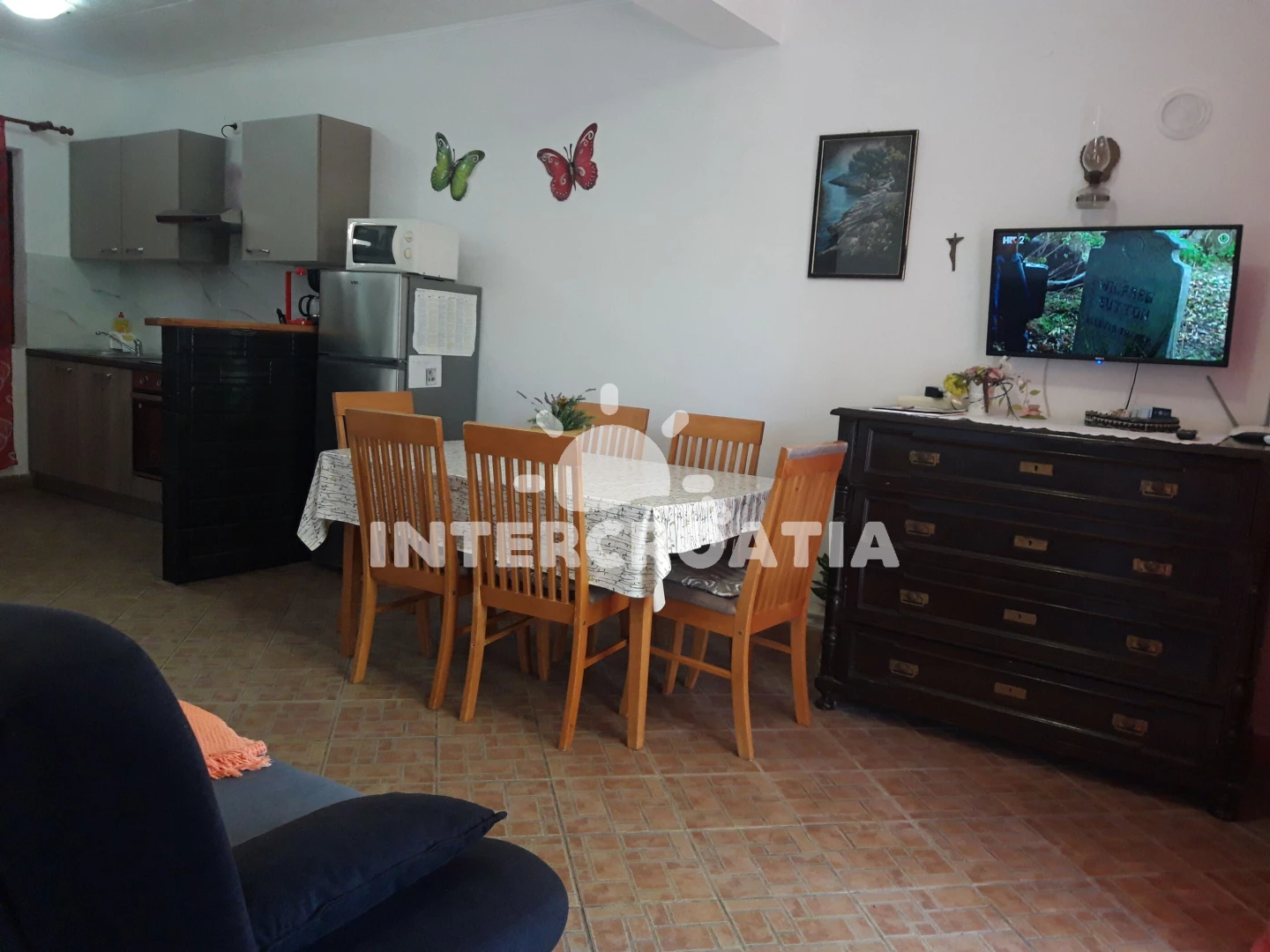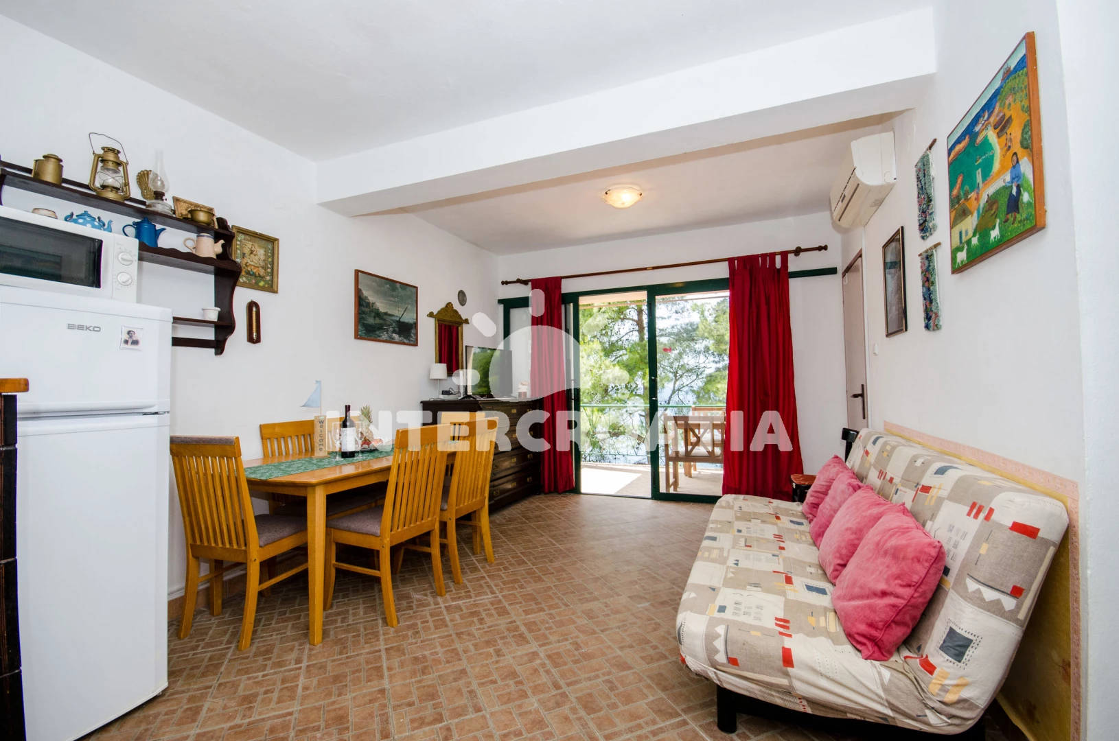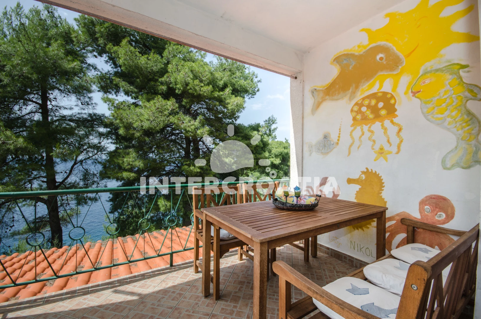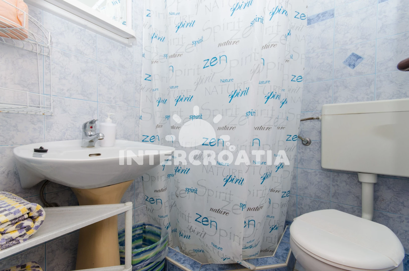 Apartmán se nachází 30 m od moře a pláže. Pláž je kamenné a betonové desky. U objektu je k dispozici společná zahrada s posezením a grilem.