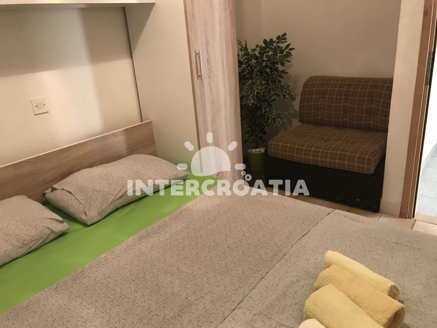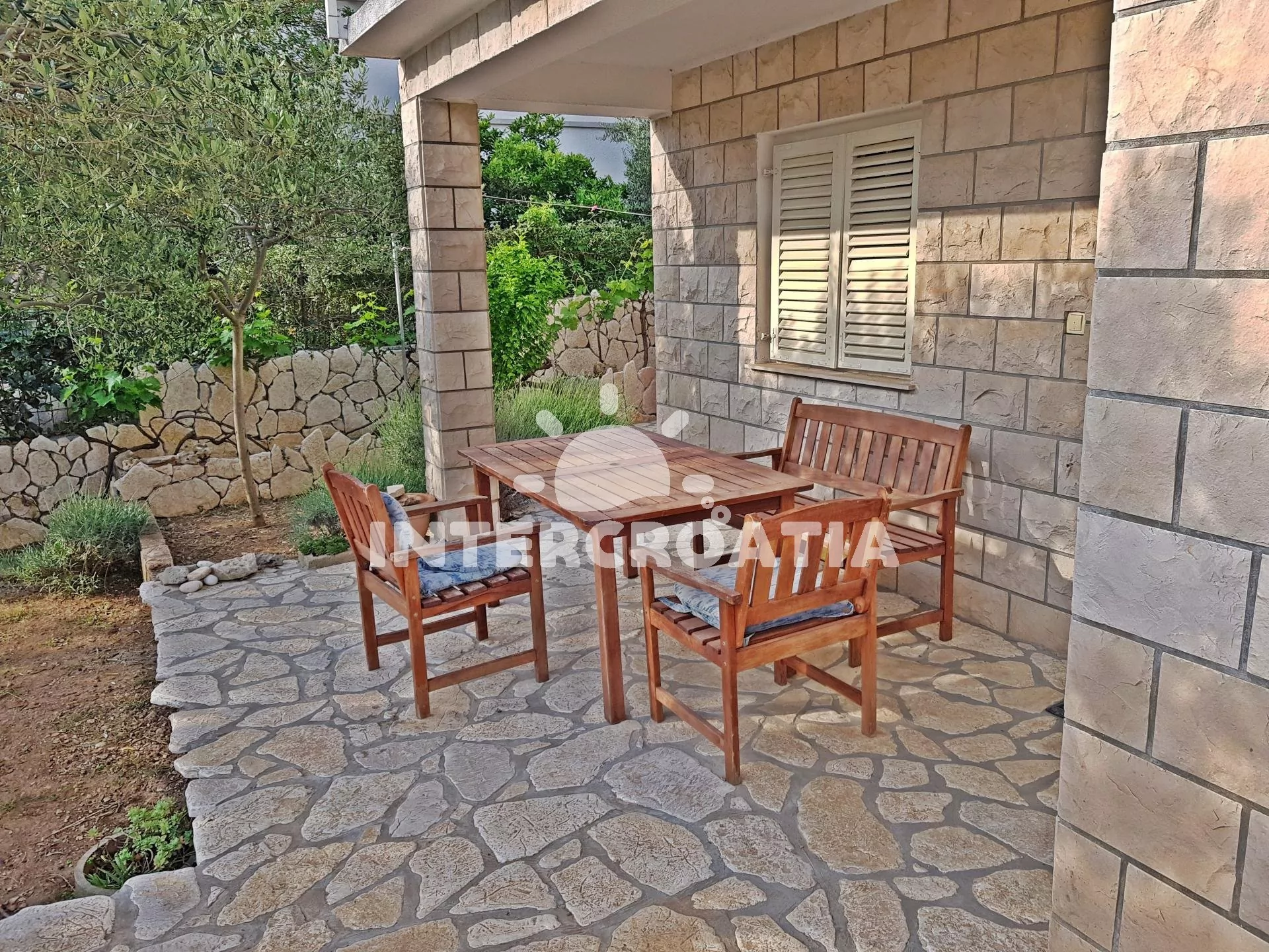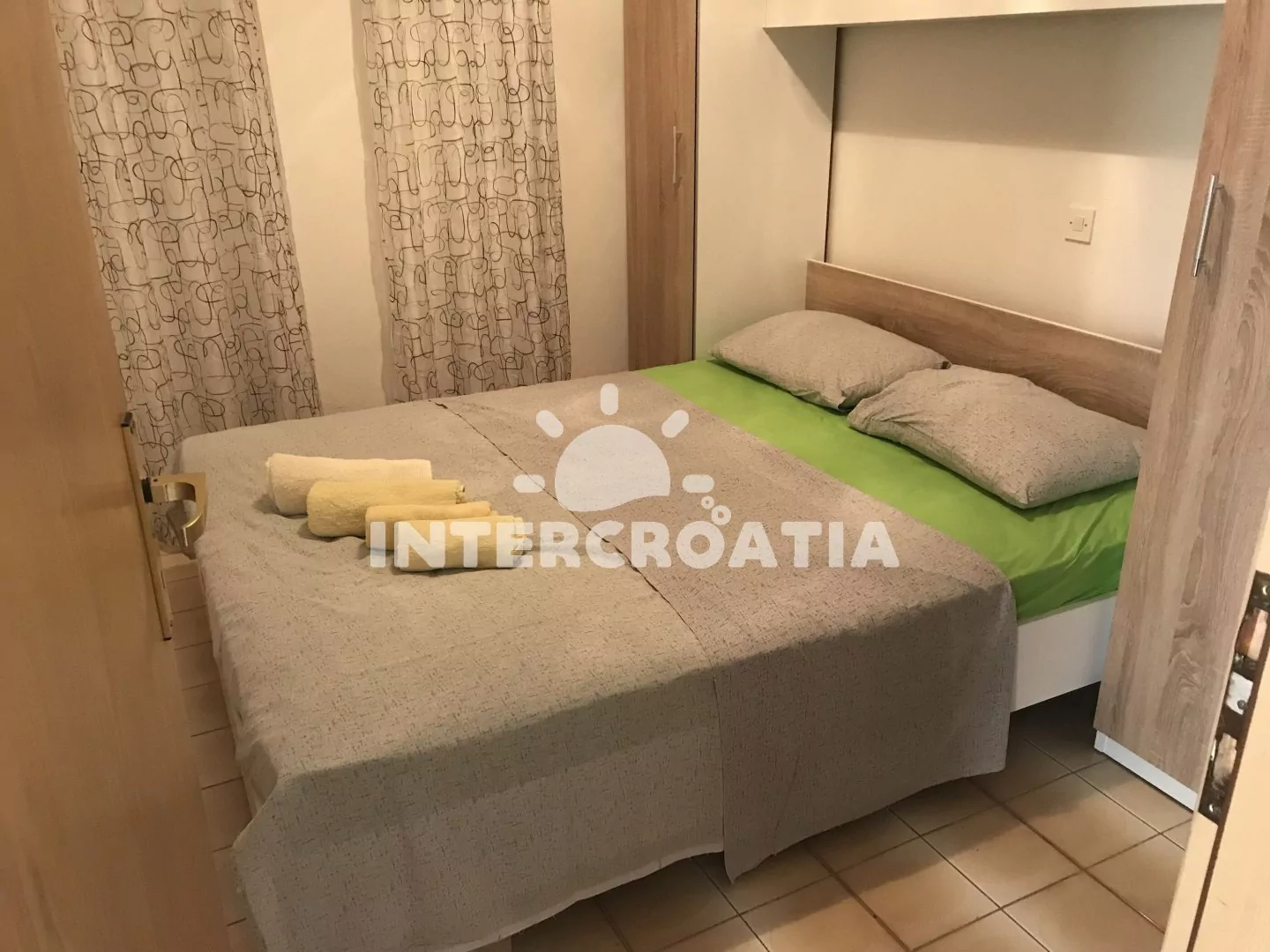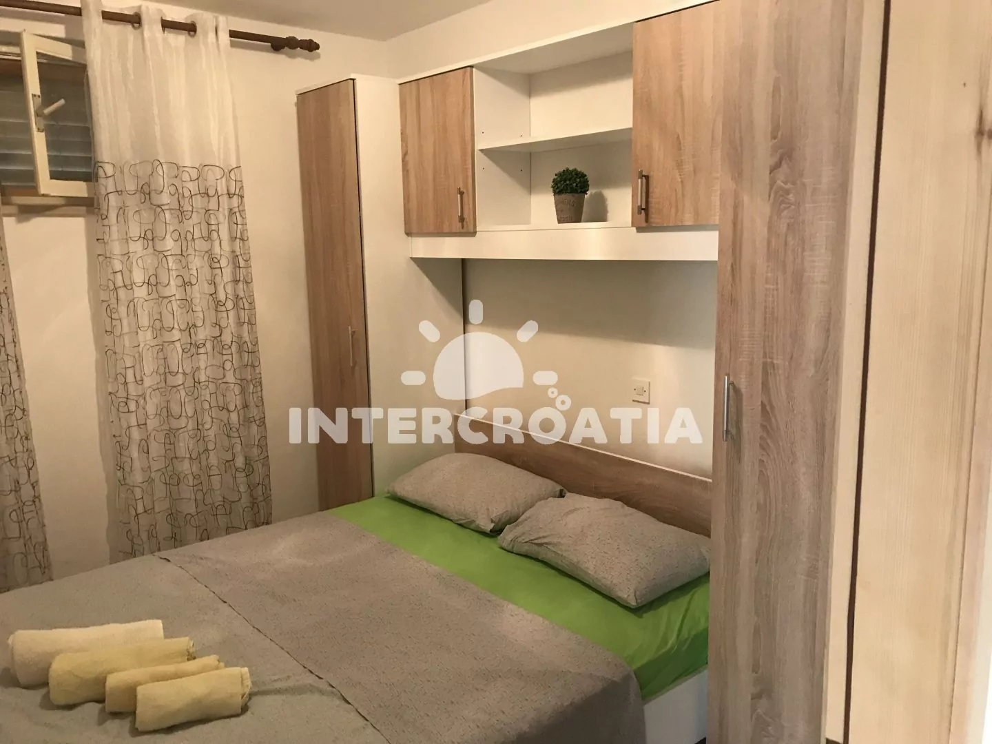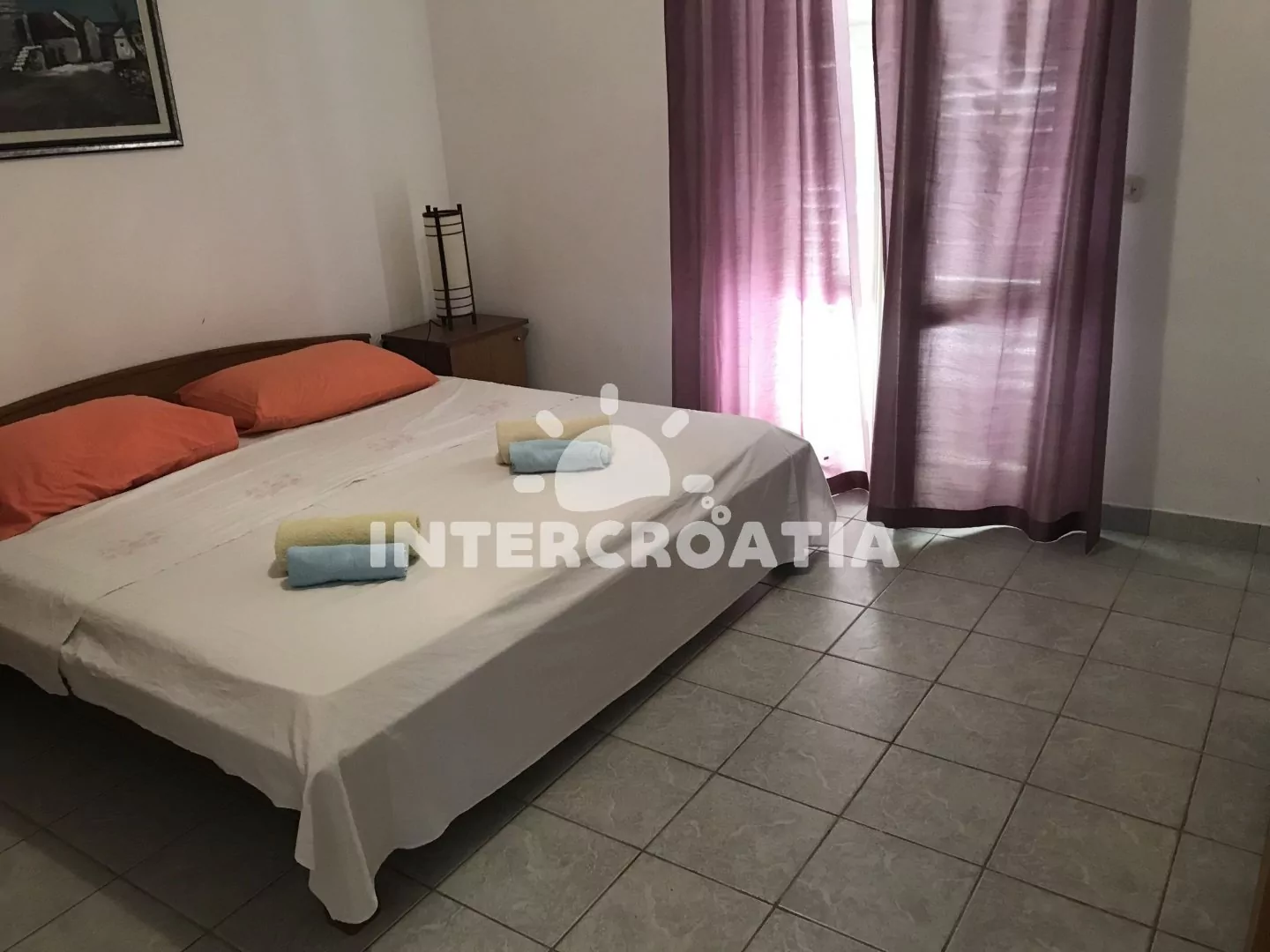 Apartmán v přízemí domu je vhodný pro 4 osoby, disponuje výhledem na moře a terasou s posezením. Kuchyň je vybavena jídelním stolem pro 4 osoby, kuchyňskou linkou se sporákem, troubou, rychlovarnou konvicí, kávovarem, nádobím a chladničkou s mrazákem. Obývací pokoj s rohovou pohovkou a televizí se satelitním programem. První i druhá ložnice je vybavena vždy s jedním dvoulůžkem. Dvě koupelny se sprchovým koutem, umyvadlem a wc. Hosté mají k dispozici klimatizaci, WiFi, sejf a žehličku. Fén a pračka u pronajímatele (služba na požádání).