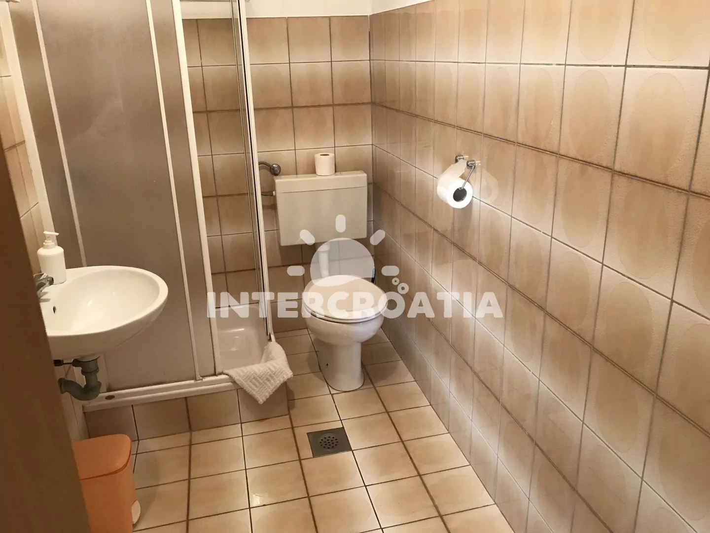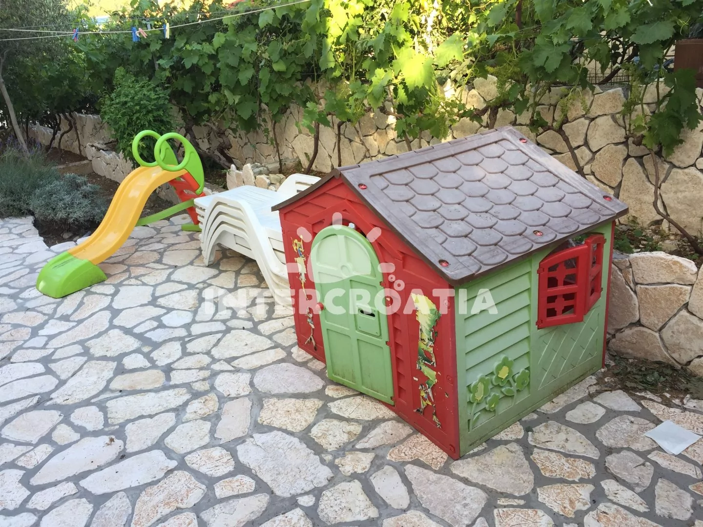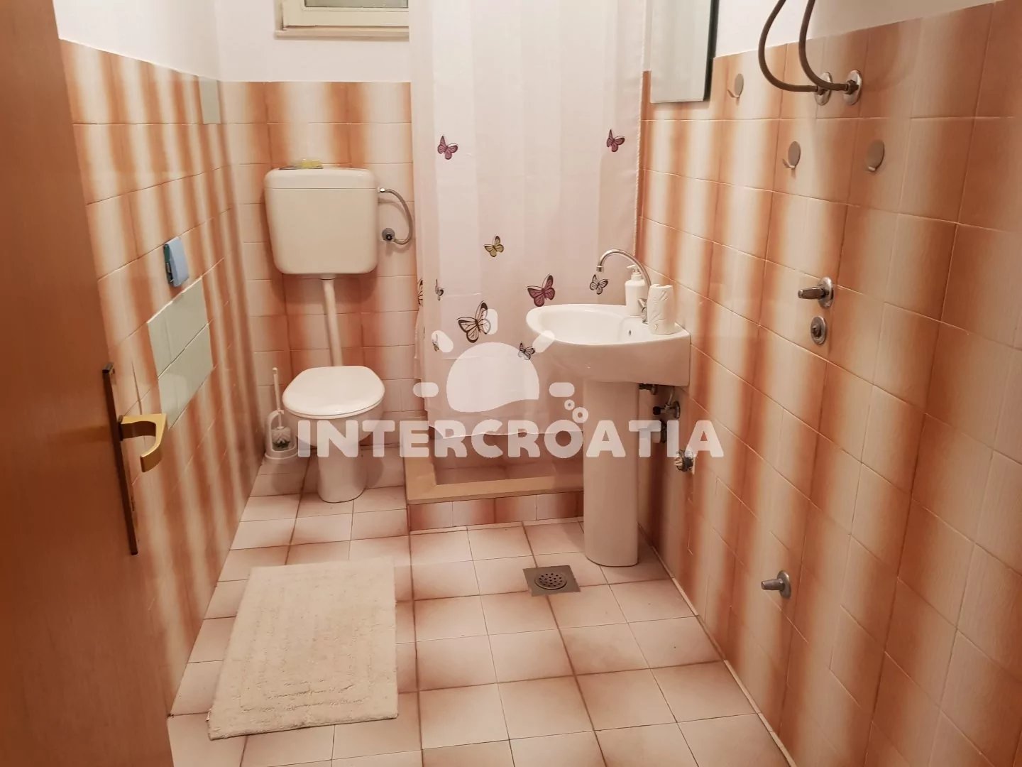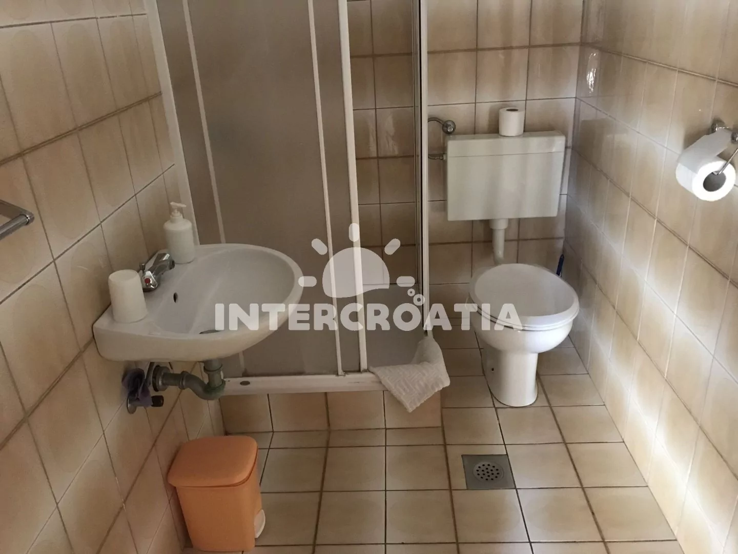 Apartmán v přízemí domu je vhodný pro 4 osoby, disponuje výhledem na moře a terasou s posezením. Kuchyň je vybavena jídelním stolem pro 4 osoby, kuchyňskou linkou se sporákem, troubou, rychlovarnou konvicí, kávovarem, nádobím a chladničkou s mrazákem. Obývací pokoj s rohovou pohovkou a televizí se satelitním programem. První i druhá ložnice je vybavena vždy s jedním dvoulůžkem. Dvě koupelny se sprchovým koutem, umyvadlem a wc. Hosté mají k dispozici klimatizaci, WiFi, sejf a žehličku. Fén a pračka u pronajímatele (služba na požádání).
