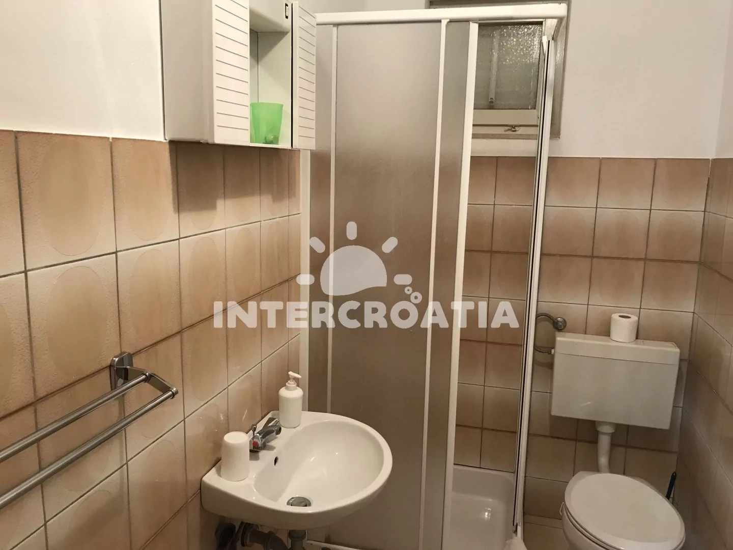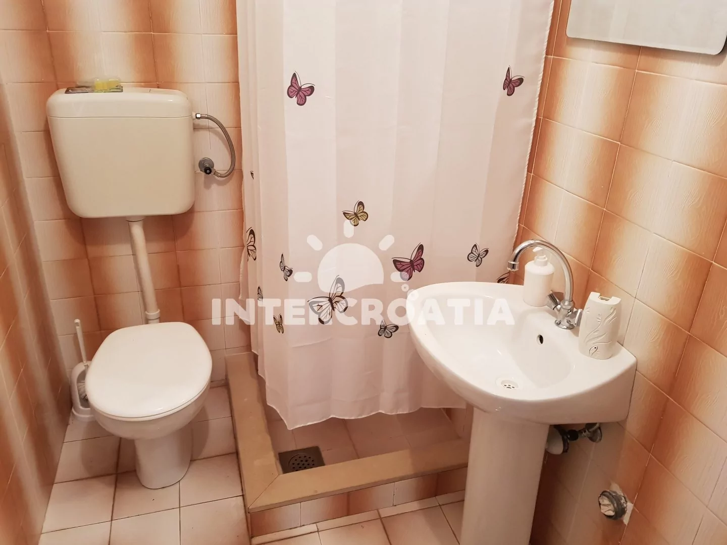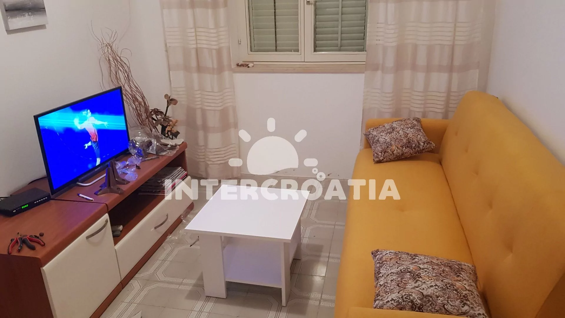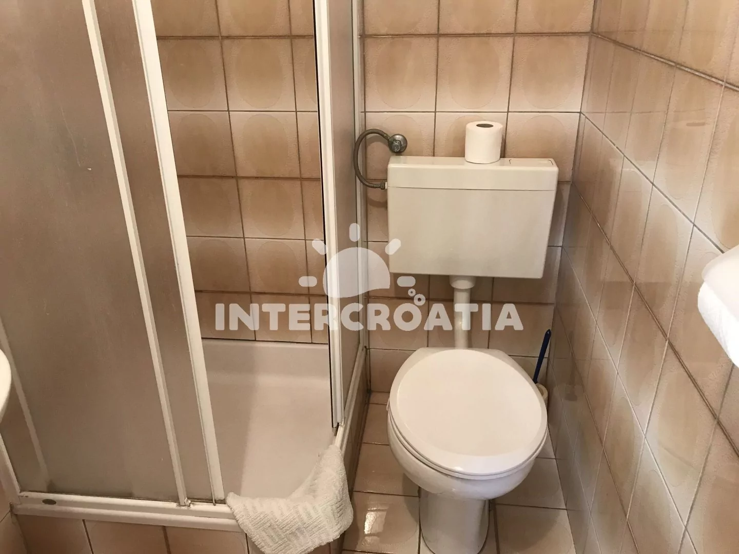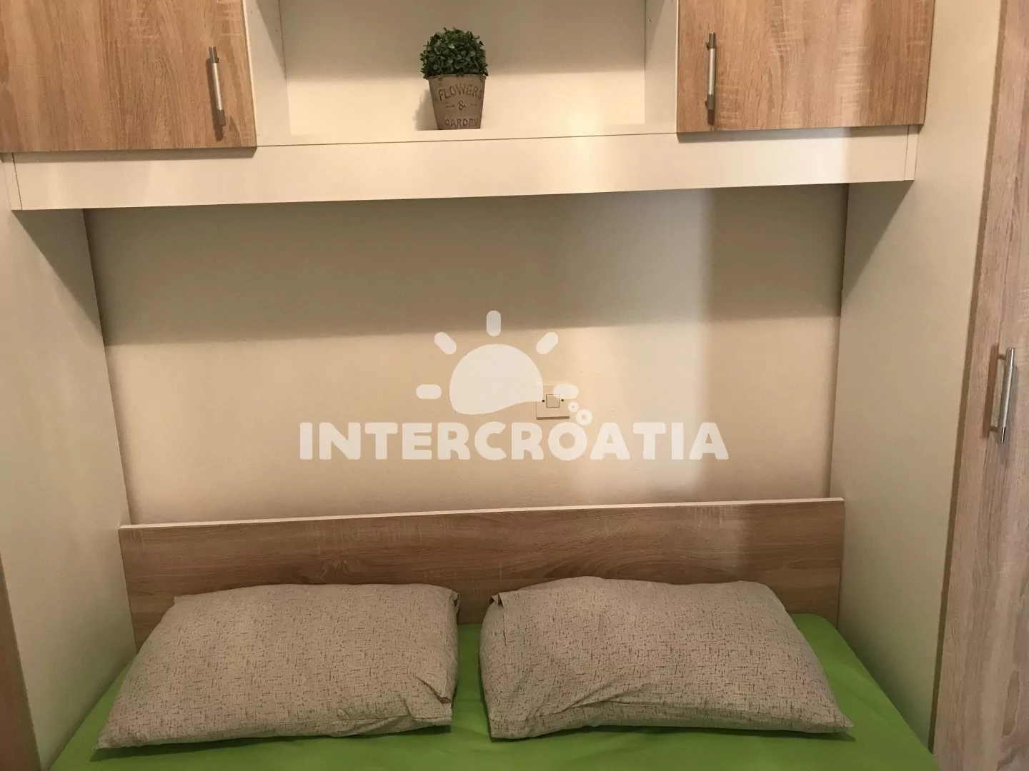 Apartmán v přízemí domu je vhodný pro 4 osoby, disponuje výhledem na moře a terasou s posezením. Kuchyň je vybavena jídelním stolem pro 4 osoby, kuchyňskou linkou se sporákem, troubou, rychlovarnou konvicí, kávovarem, nádobím a chladničkou s mrazákem. Obývací pokoj s rohovou pohovkou a televizí se satelitním programem. První i druhá ložnice je vybavena vždy s jedním dvoulůžkem. Dvě koupelny se sprchovým koutem, umyvadlem a wc. Hosté mají k dispozici klimatizaci, WiFi, sejf a žehličku. Fén a pračka u pronajímatele (služba na požádání).