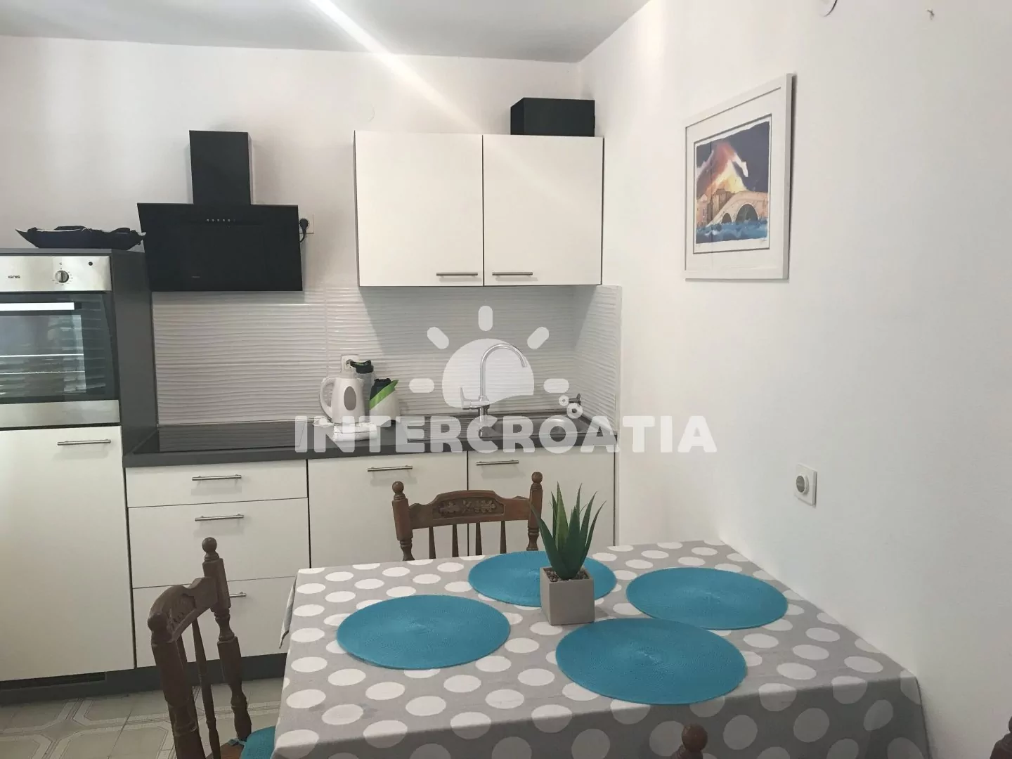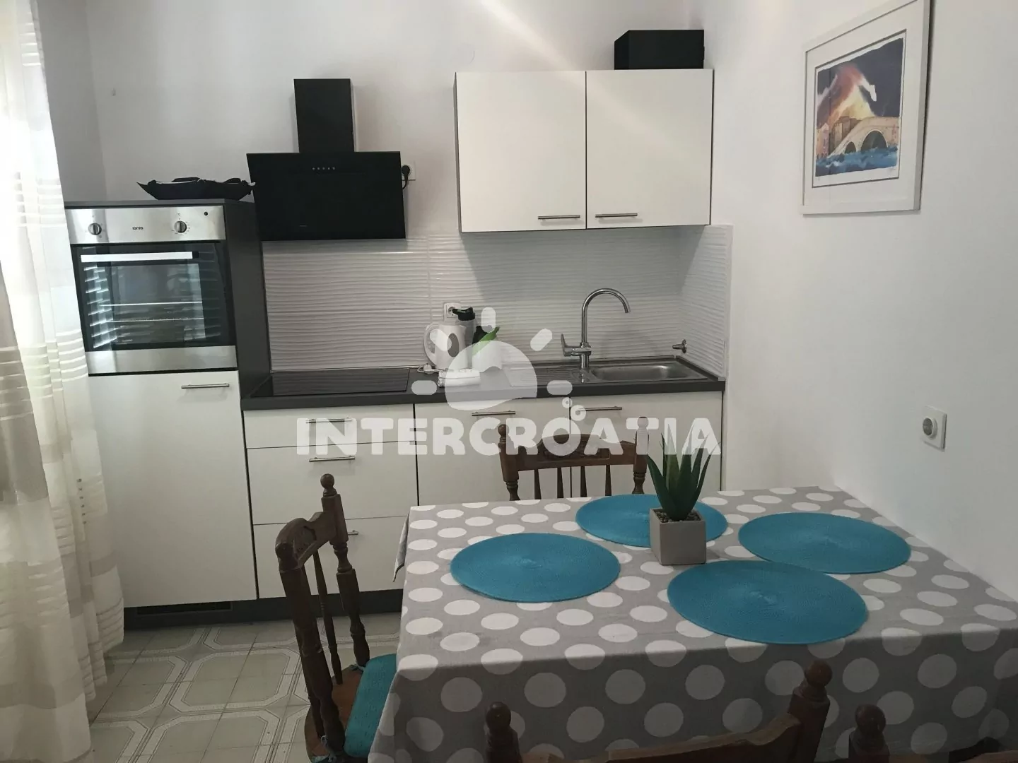 Apartmán v přízemí domu je vhodný pro 4 osoby, disponuje výhledem na moře a terasou s posezením. Kuchyň je vybavena jídelním stolem pro 4 osoby, kuchyňskou linkou se sporákem, troubou, rychlovarnou…