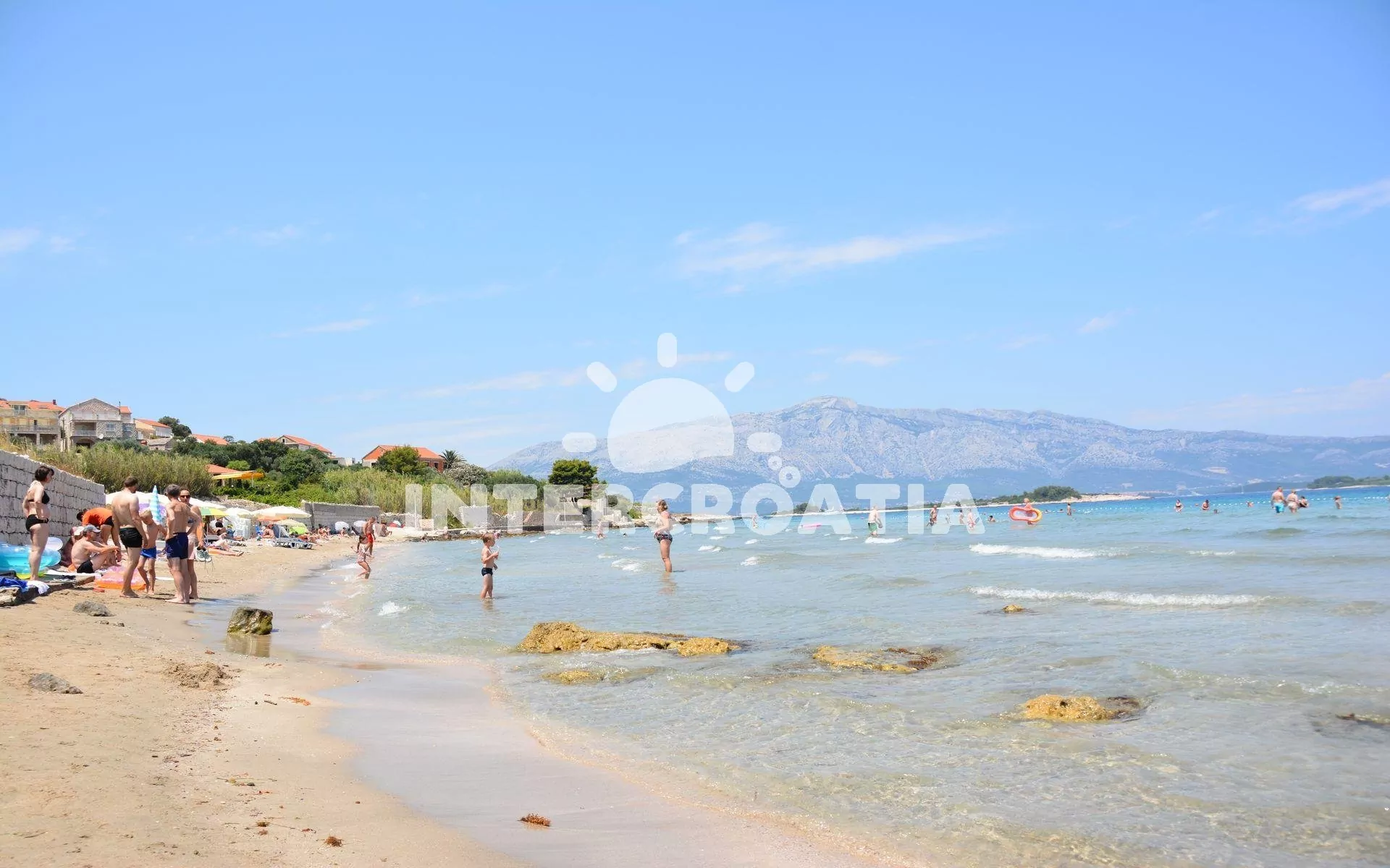 Zátoka Soline nedaleko historického centra Korčula na stejnojmenném ostrově. Průzračné moře a pláž se nachází 60 m od vašeho apartmánového domu.