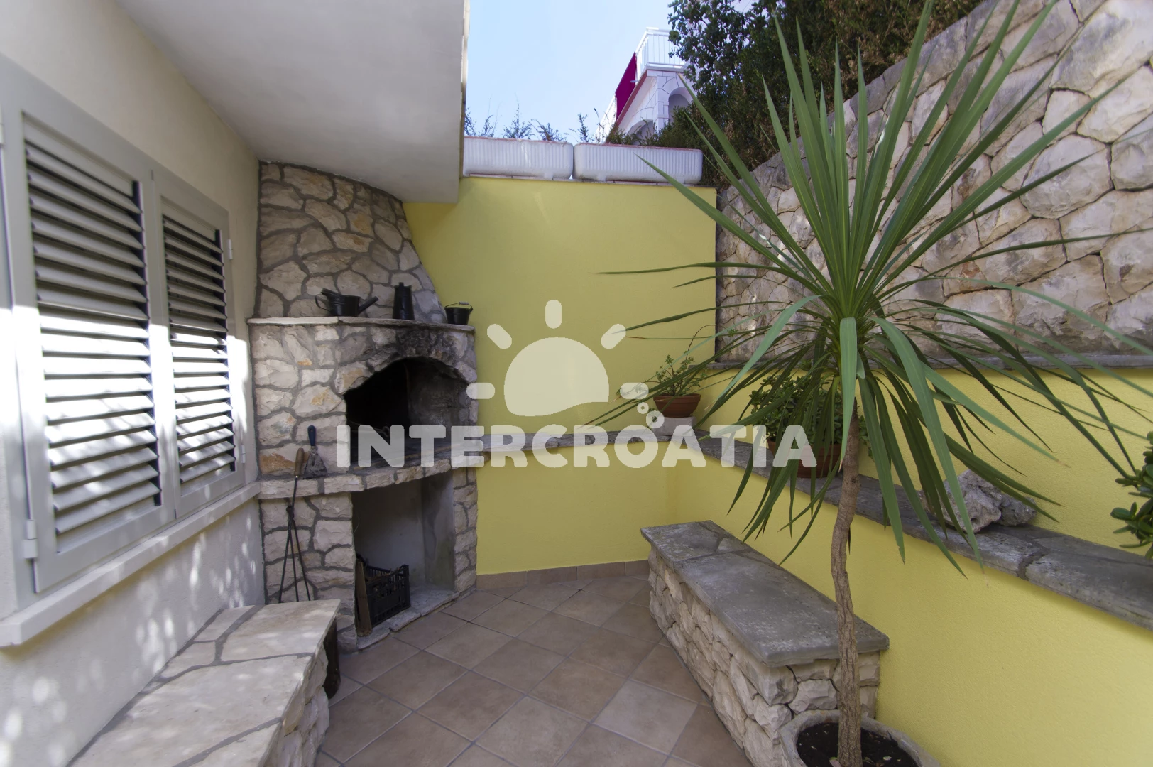 Apartmán se nachází 50 m od moře a pláže. Pláž je skály. U objektu je k dispozici společná zahrada s posezením a grilem. Parkování je před domem.
