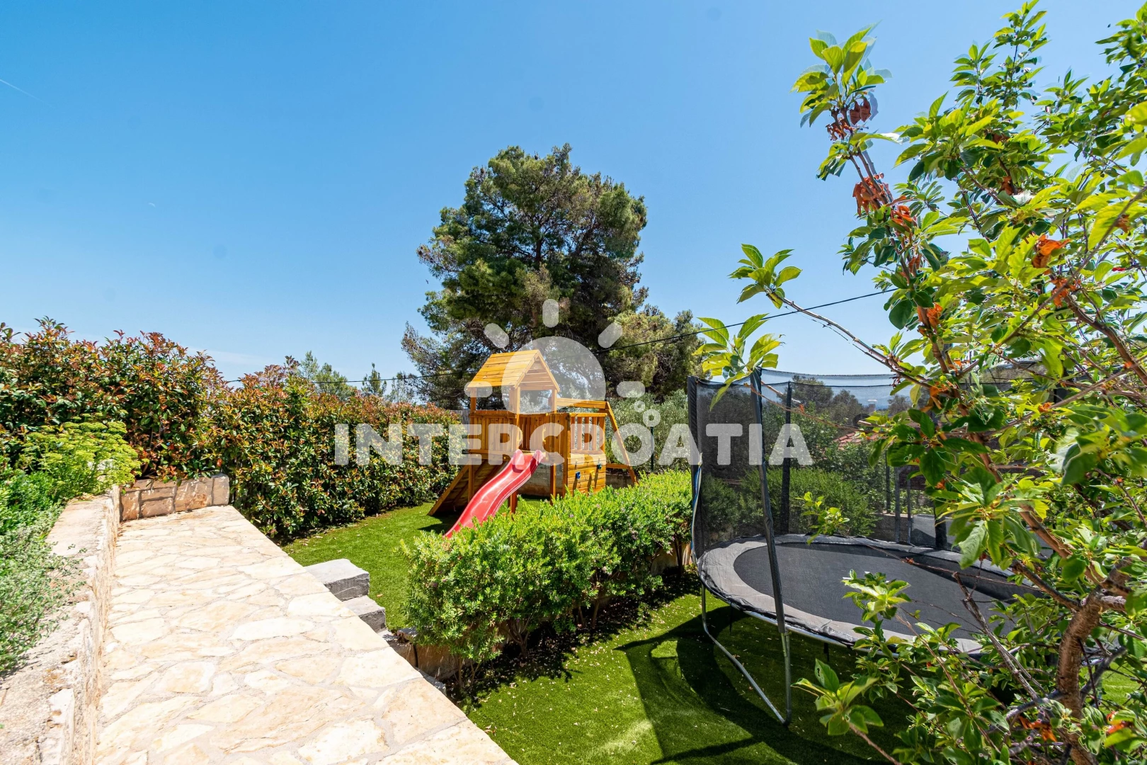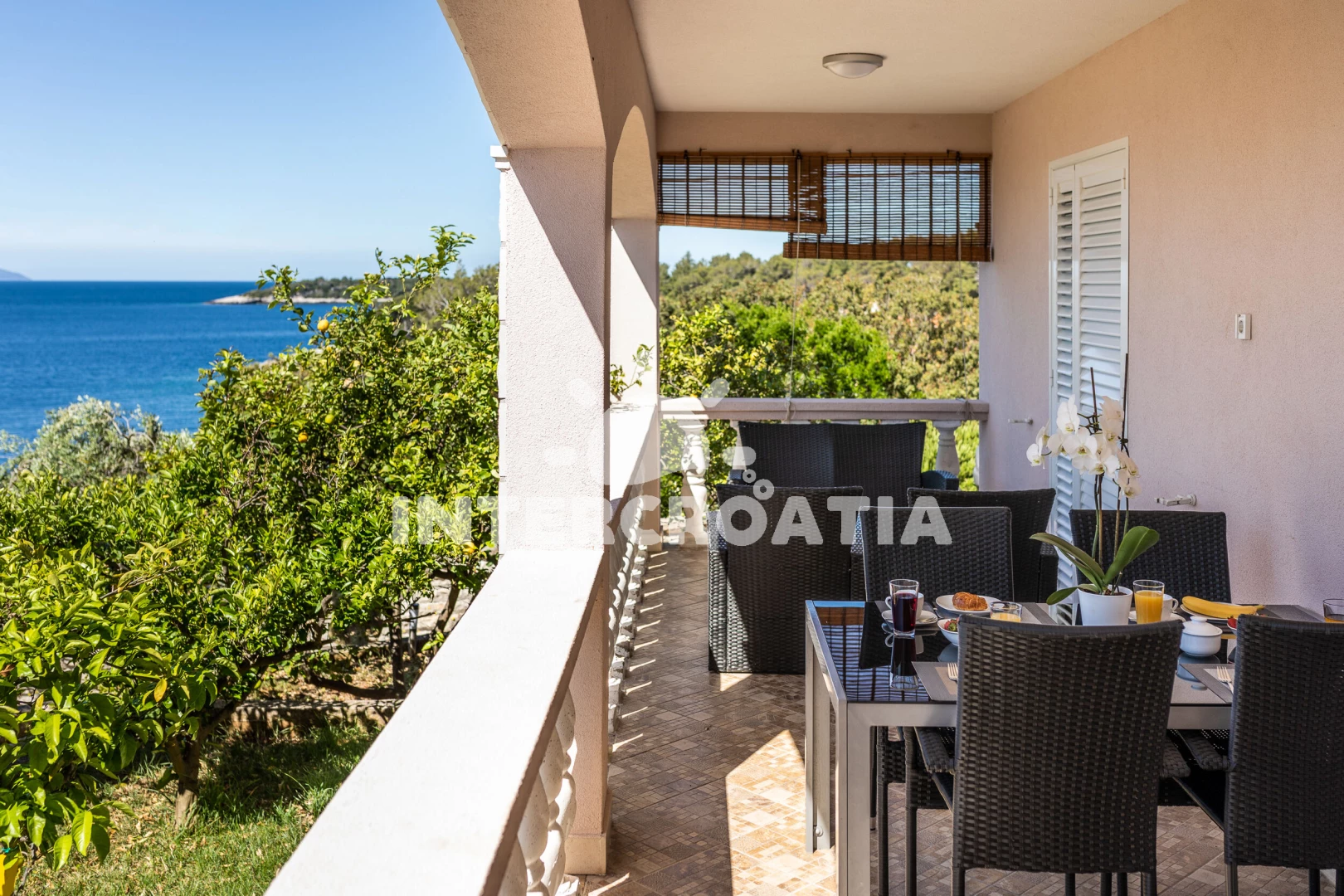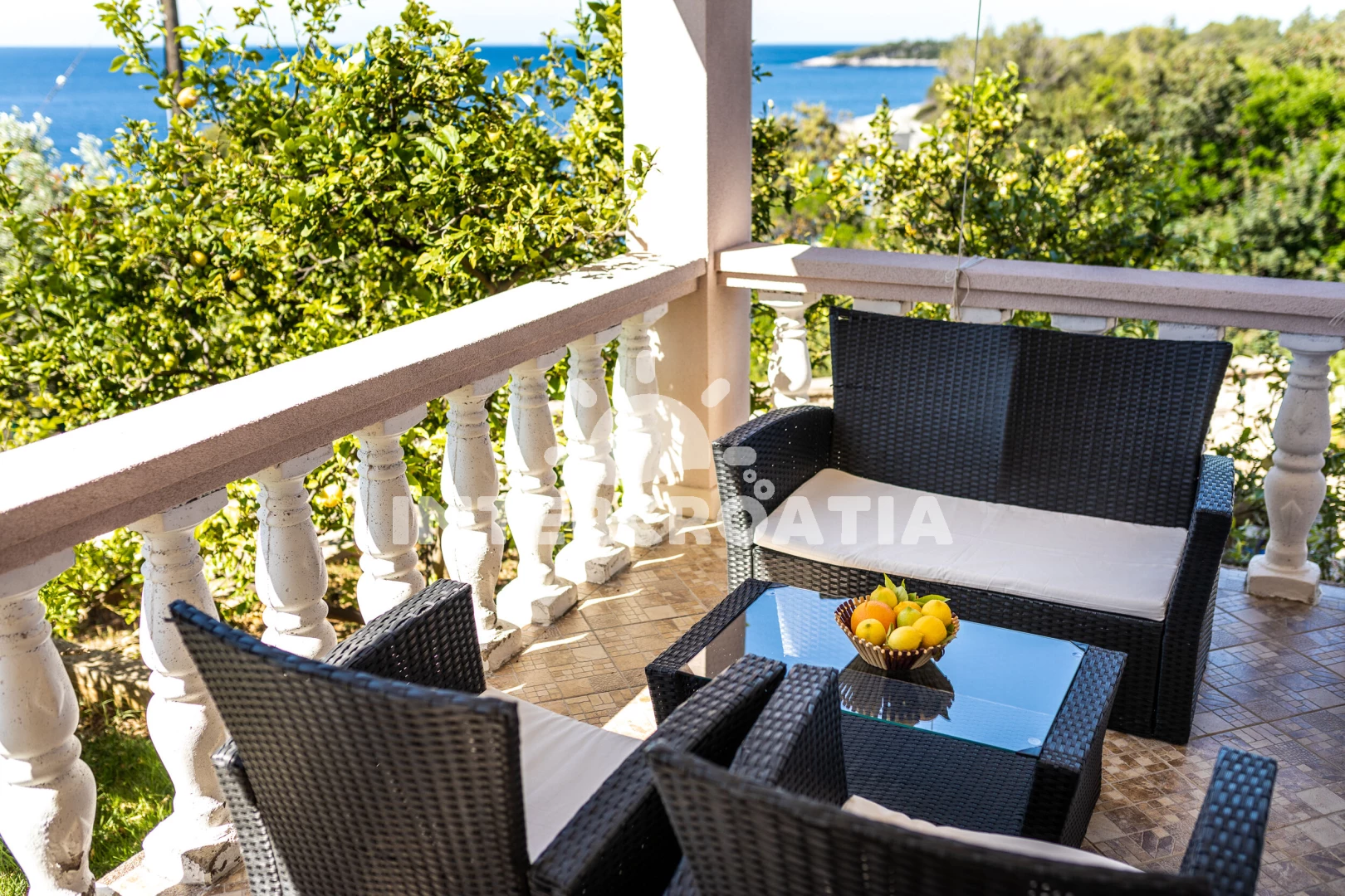 Vzdálenosti: Moře 50 m, pláž 50 m (betonové desky), bar 50 m, půjčovna motorových člunů 50 m, restaurace 50 m, veřejná doprava 50 m, potápění 50 m, centrum 1,8 km, supermarket 1,8 km, diskotéka 2 km, směnárna 2 km, pošta 2 km, tenisové kurty 5 km, ambulance 7 km, lékárna 7 km, banka 7 km, čerpací stanice 10 km, marina 45 km, trajekt (Vela Luka) 45 km,