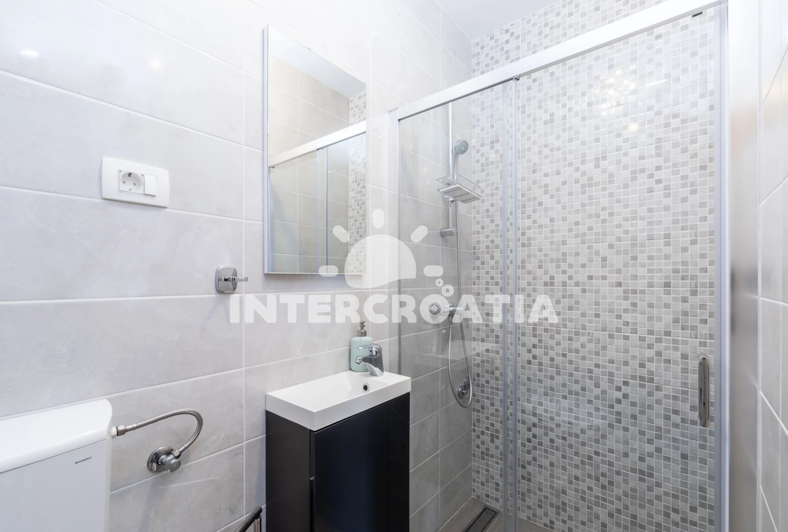 Apartmán se nachází 50 m od moře a pláže. Pláž je betonové desky. Apartmán disponuje bazénem s lehátky pro ubytované hosty. K dispozici posilovna. U objektu je k dispozici společná zahrada s posezením a grilem. Parkování je před domem.
