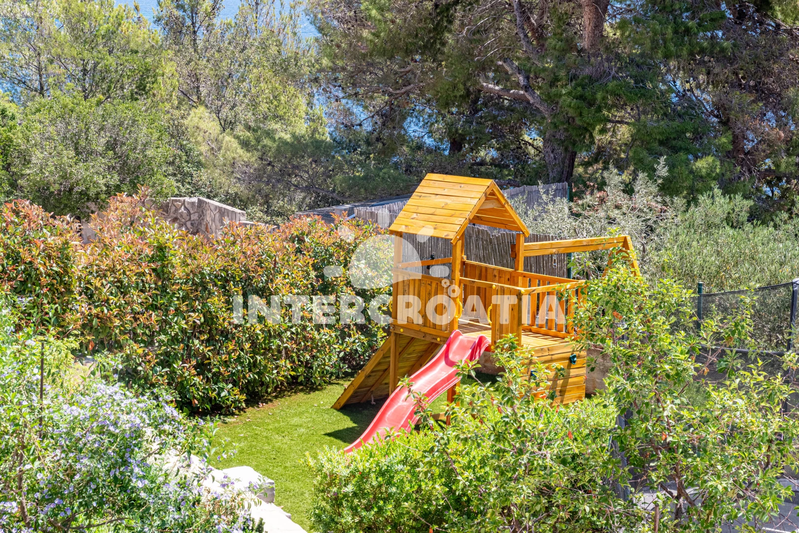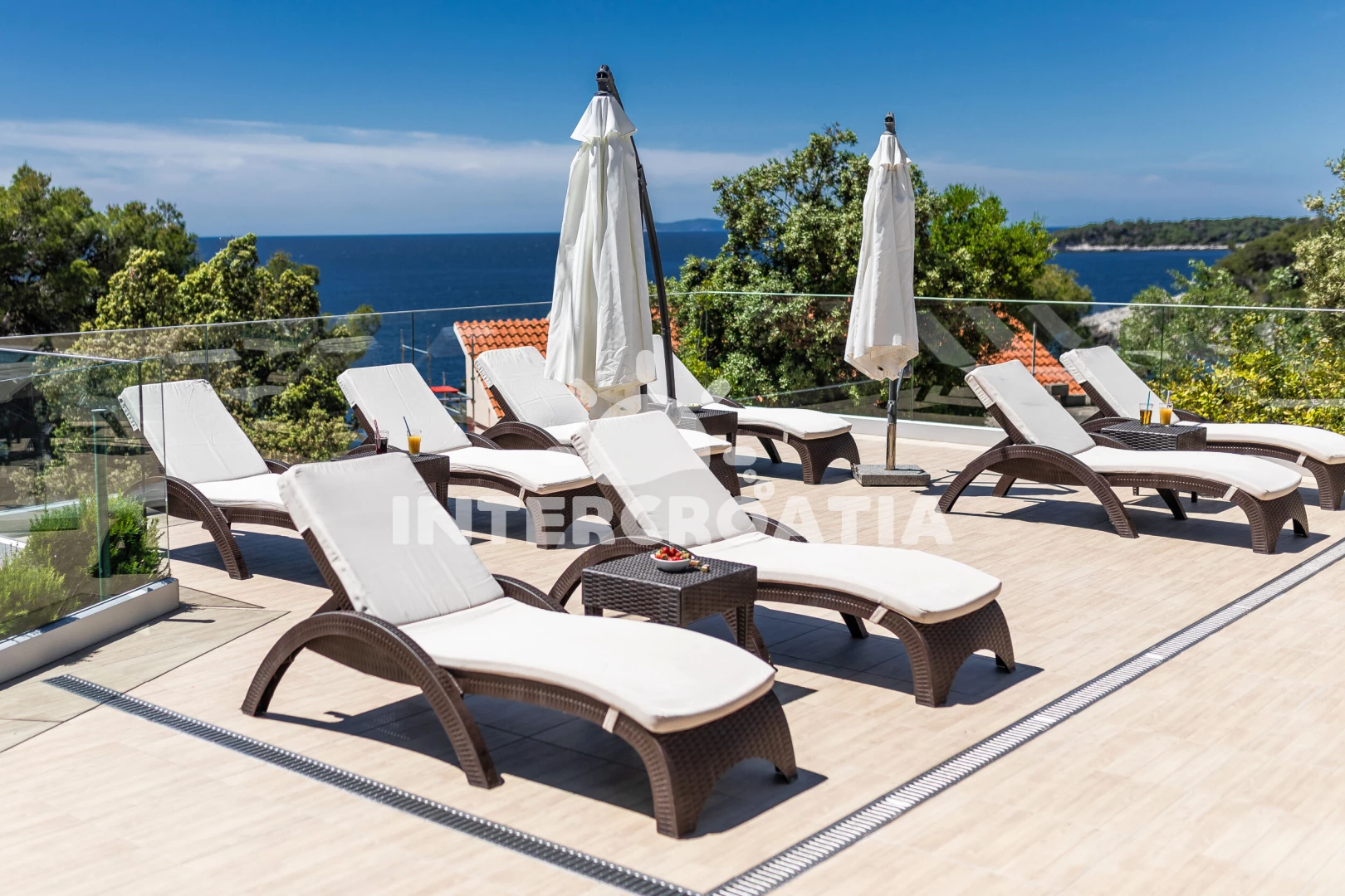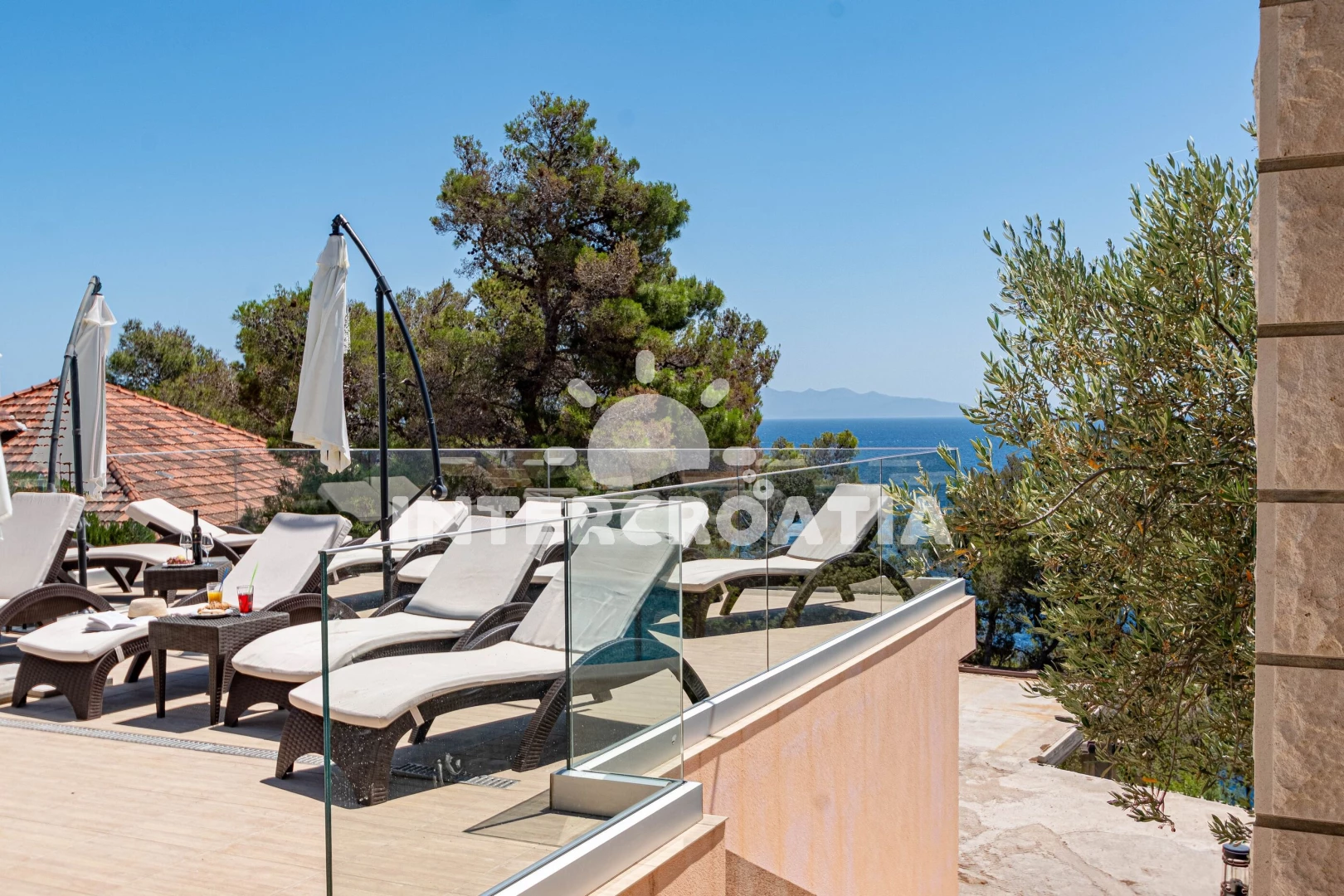 Vzdálenosti: Moře 50 m, pláž 50 m (betonové desky), bar 50 m, půjčovna motorových člunů 50 m, restaurace 50 m, veřejná doprava 50 m, potápění 50 m, centrum 1,8 km, supermarket 1,8 km, diskotéka 2 km, směnárna 2 km, pošta 2 km, tenisové kurty 5 km, ambulance 7 km, lékárna 7 km, banka 7 km, čerpací stanice 10 km, marina 45 km, trajekt (Vela Luka) 45 km,
