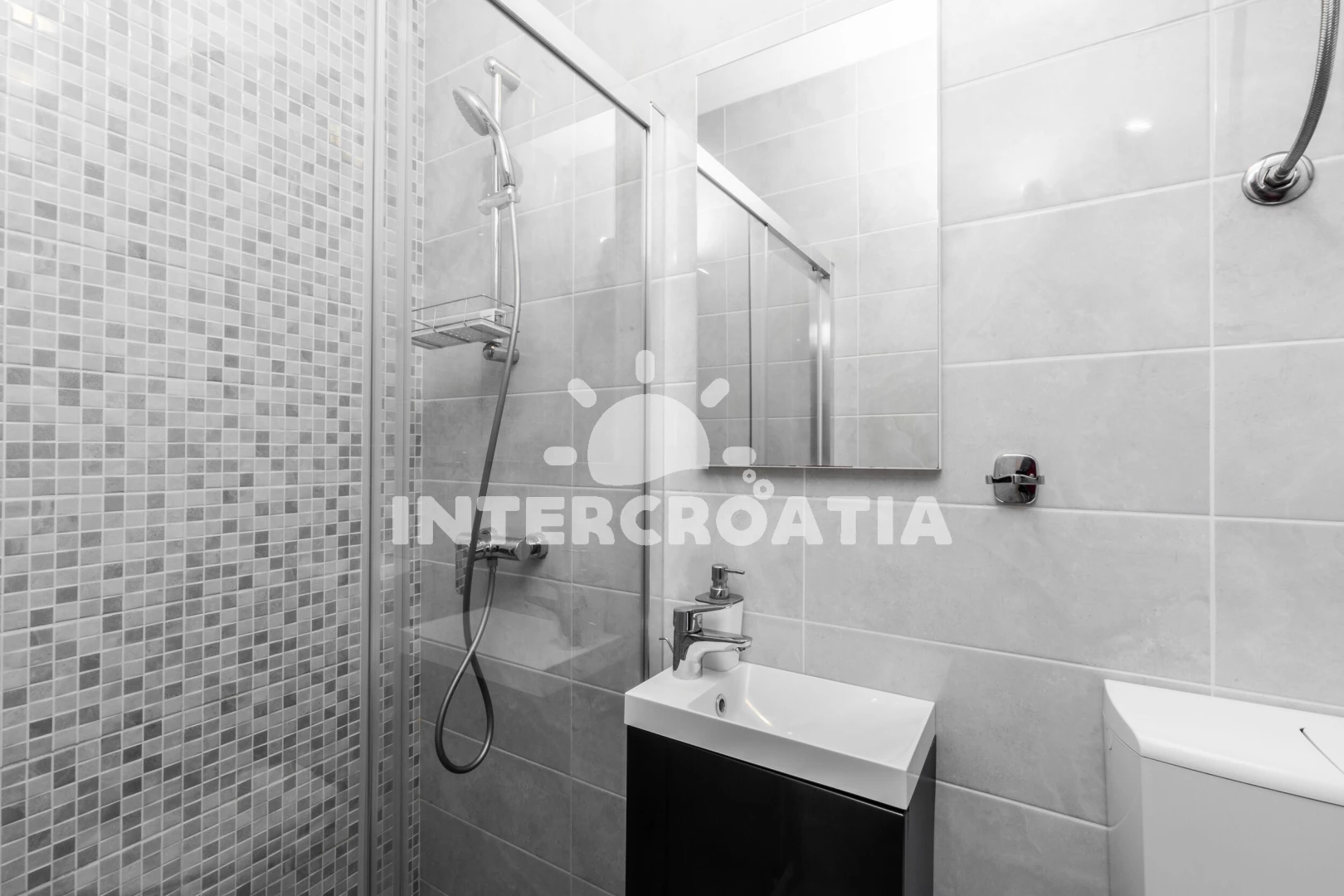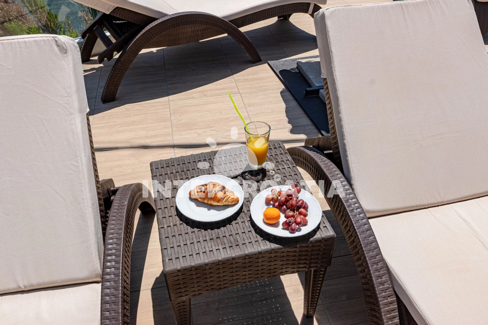 Apartmán se nachází 50 m od moře a pláže. Pláž je betonové desky. Apartmán disponuje bazénem s lehátky pro ubytované hosty. K dispozici posilovna. U objektu je k dispozici společná zahrada s posezením a grilem. Parkování je před domem.