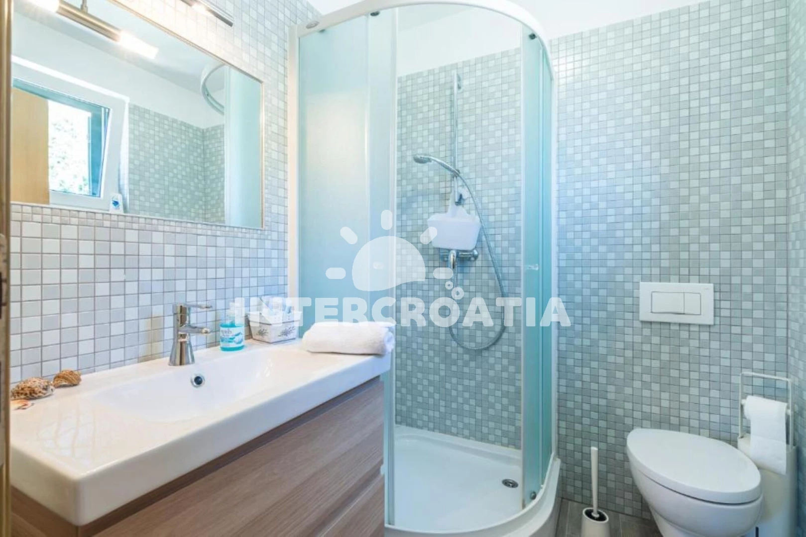 Vzdálenosti: Moře 1,5 km, pláž 1,5 km , restaurace 300 m, veřejná doprava 400 m, supermarket 800 m, čerpací stanice 900 m, centrum 1,5 km, lékárna 1,5 km, ambulance 1,5 km, banka 1,5 km, pošta 1,5 km, bar 1,5 km, půjčovna kol 1,5 km, potápění 2 km, půjčovna motorových člunů 2 km, letiště (Rijeka) 30 km,