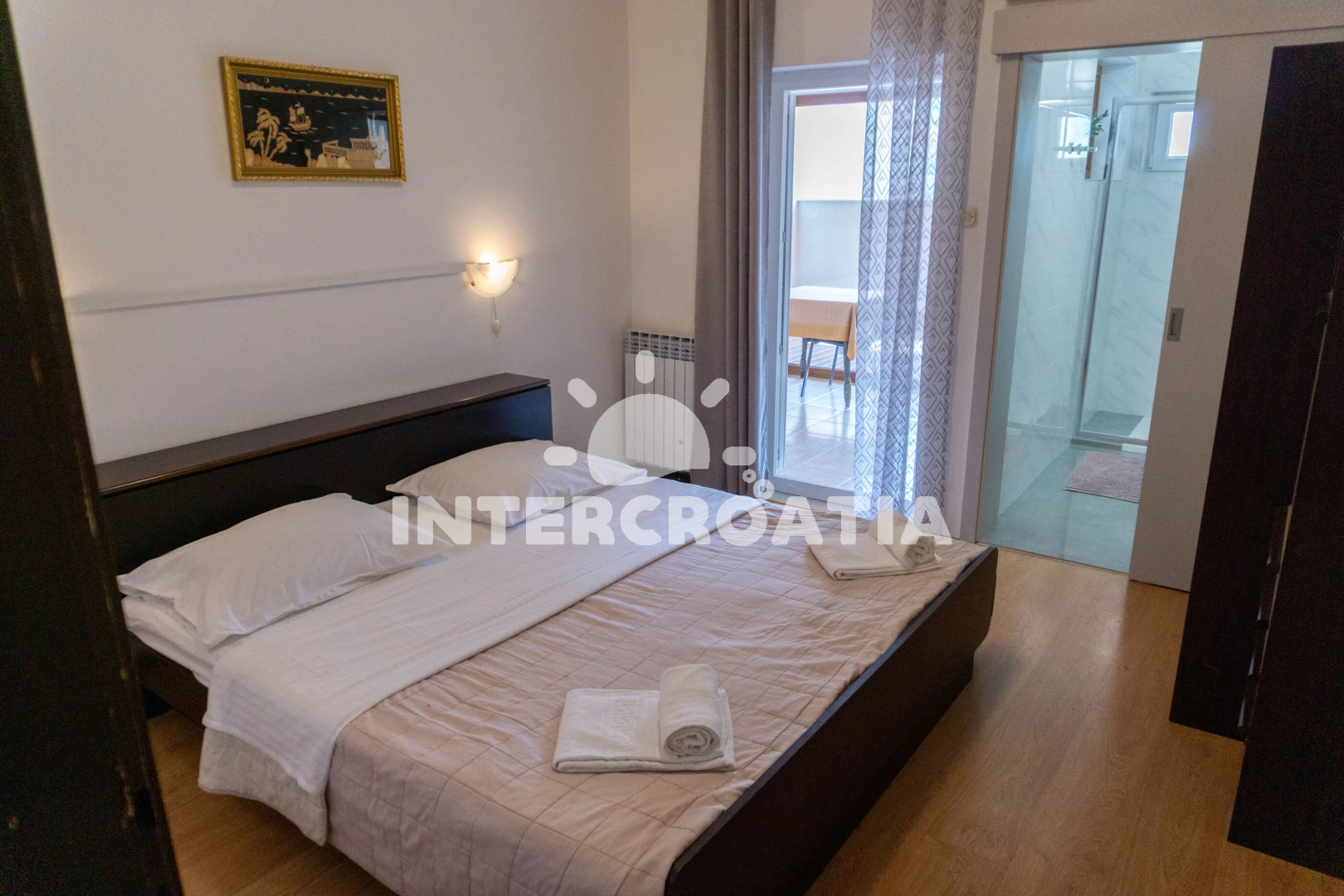 Apartmán (60 m2) s balkonem. Nachází se v 1. patře objektu. Apartmán má 2 ložnice a je vhodný pro až 4 osoby. Kuchyňská linka je vybavena varnou deskou, kávovarem, mikrovlnnou troubou, rychlovarnou konvicí, nádobím, lednicí. První ložnice s dvoulůžkem. Druhá ložnice s dvoulůžkem. První koupelna se sprchovým koutem, umyvadlem, fénem a WC. Druhá koupelna se sprchovým koutem, umyvadlem, fénem a WC. Hostům je k dispozici parkování u objektu zdarma.