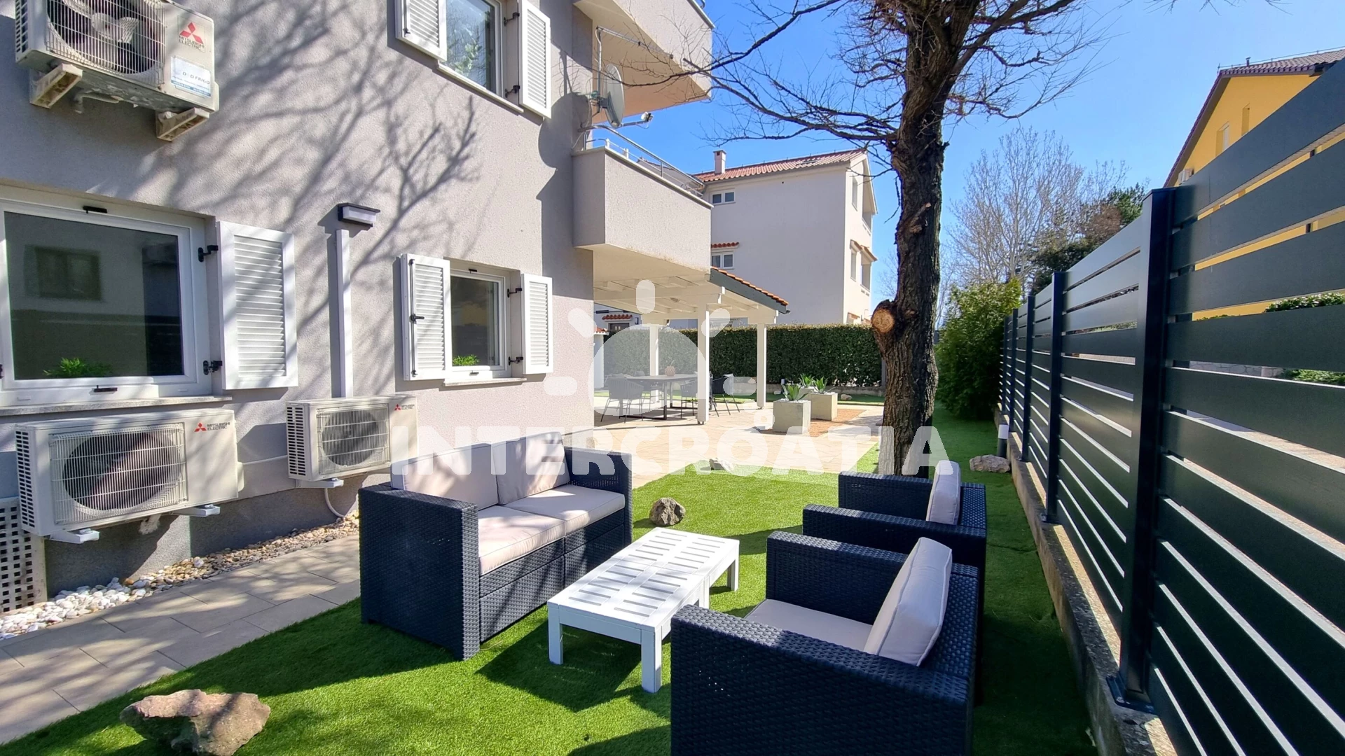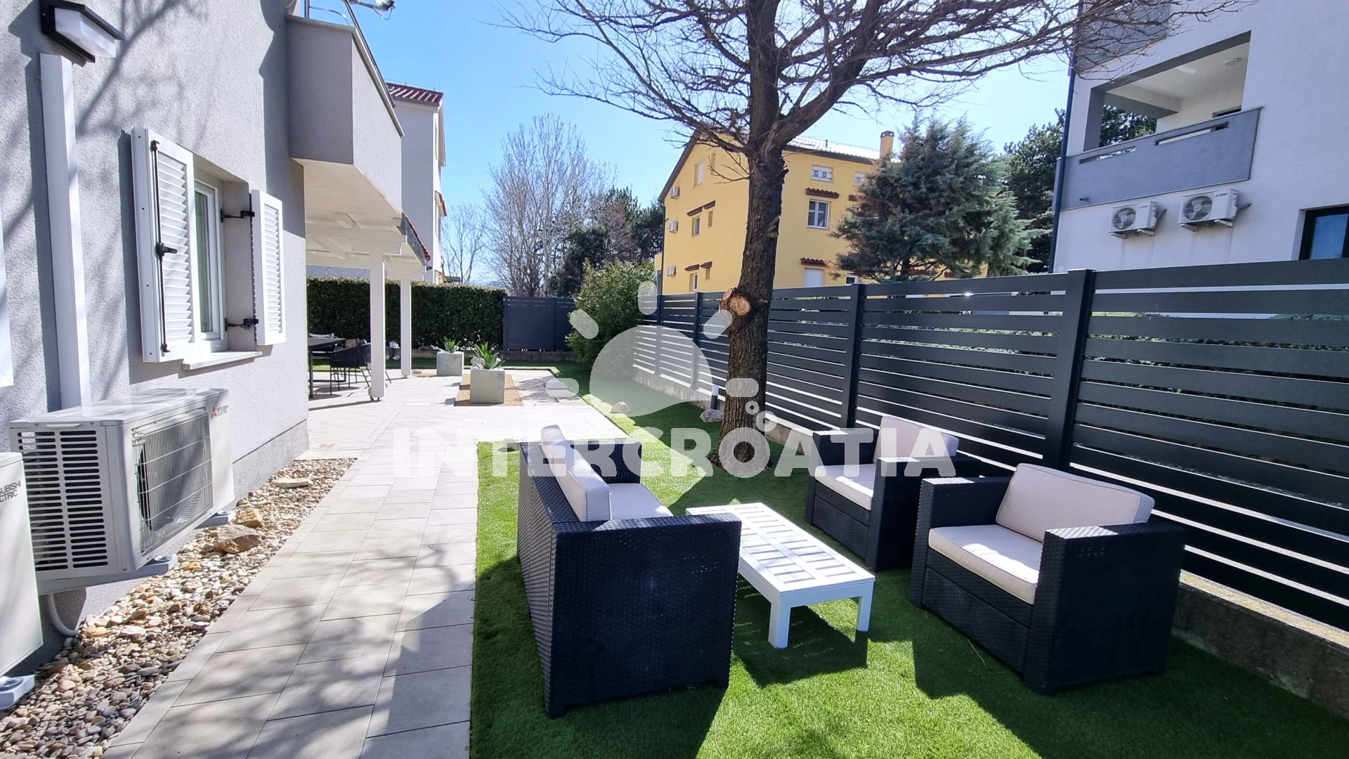 Vzdálenosti: Moře 500 m, pláž 500 m (oblázky), centrum 500 m, supermarket 500 m, veřejná doprava 500 m, směnárna 500 m, restaurace 500 m, lékárna 600 m, banka 600 m, pošta 650 m, ambulance 700 m, kotviště pro čluny 850 m, čerpací stanice 20 km, trajekt (Valbiska (Krk)) 30 km, letiště (Rijeka) 45 km,